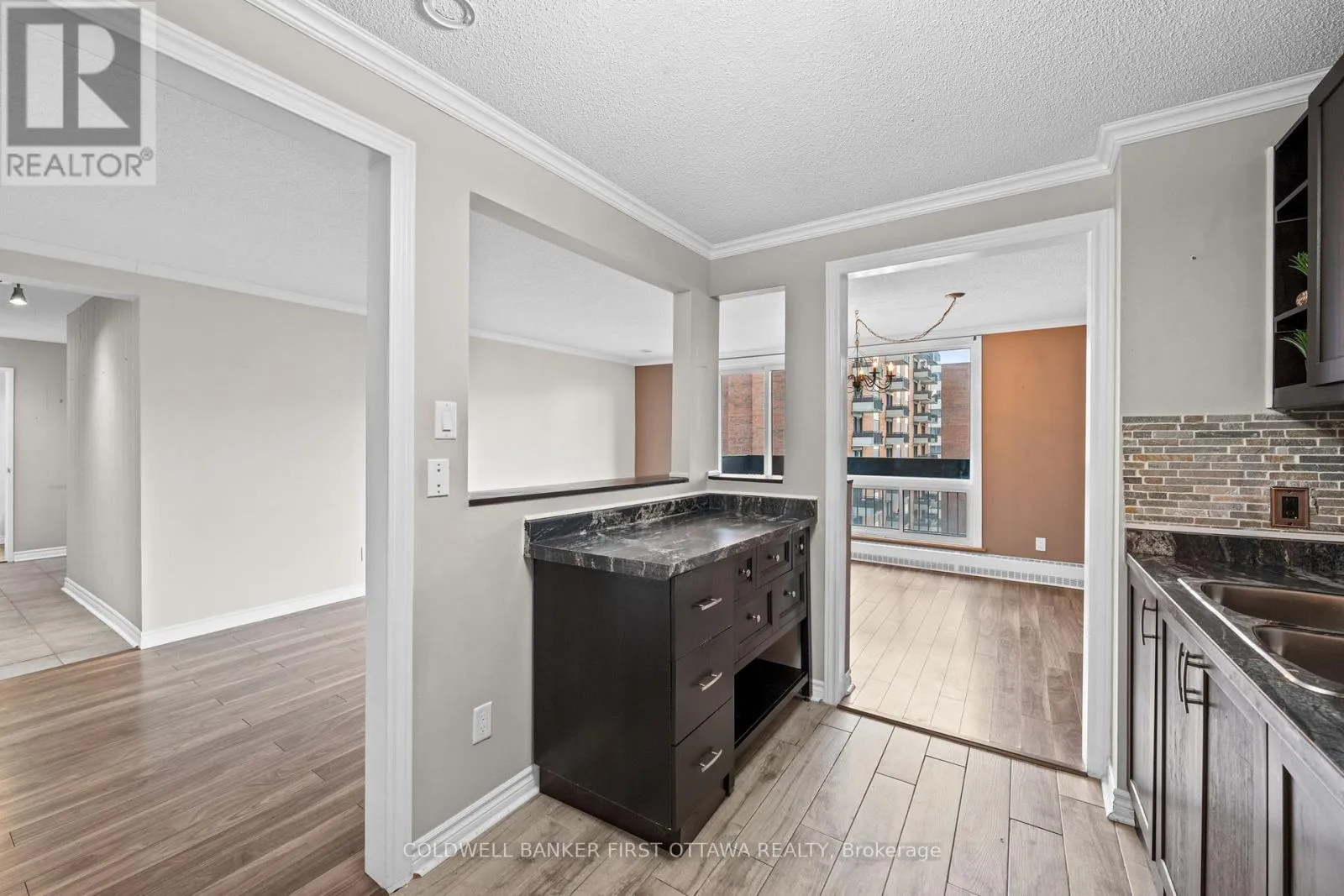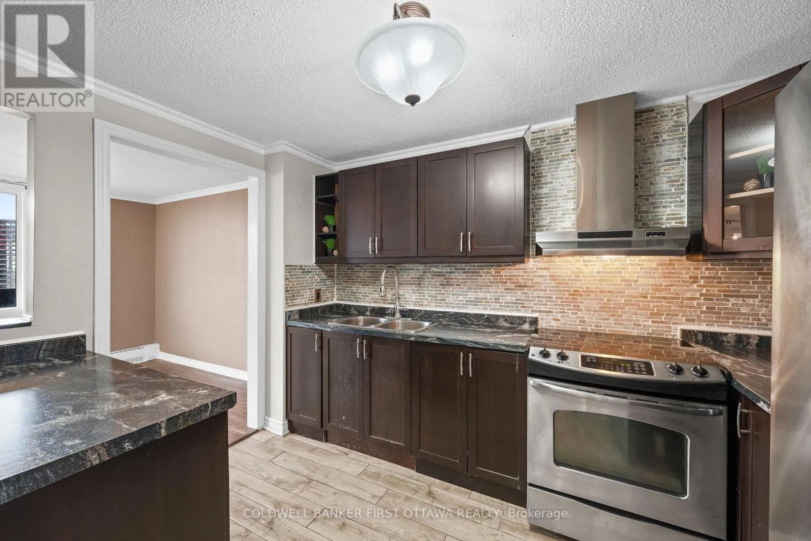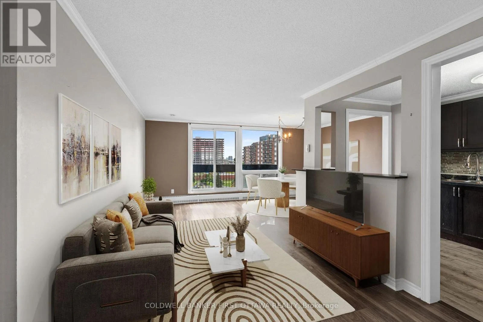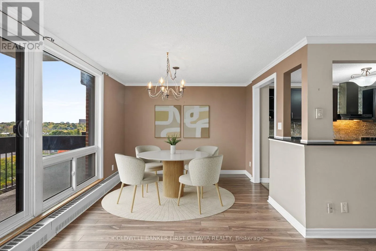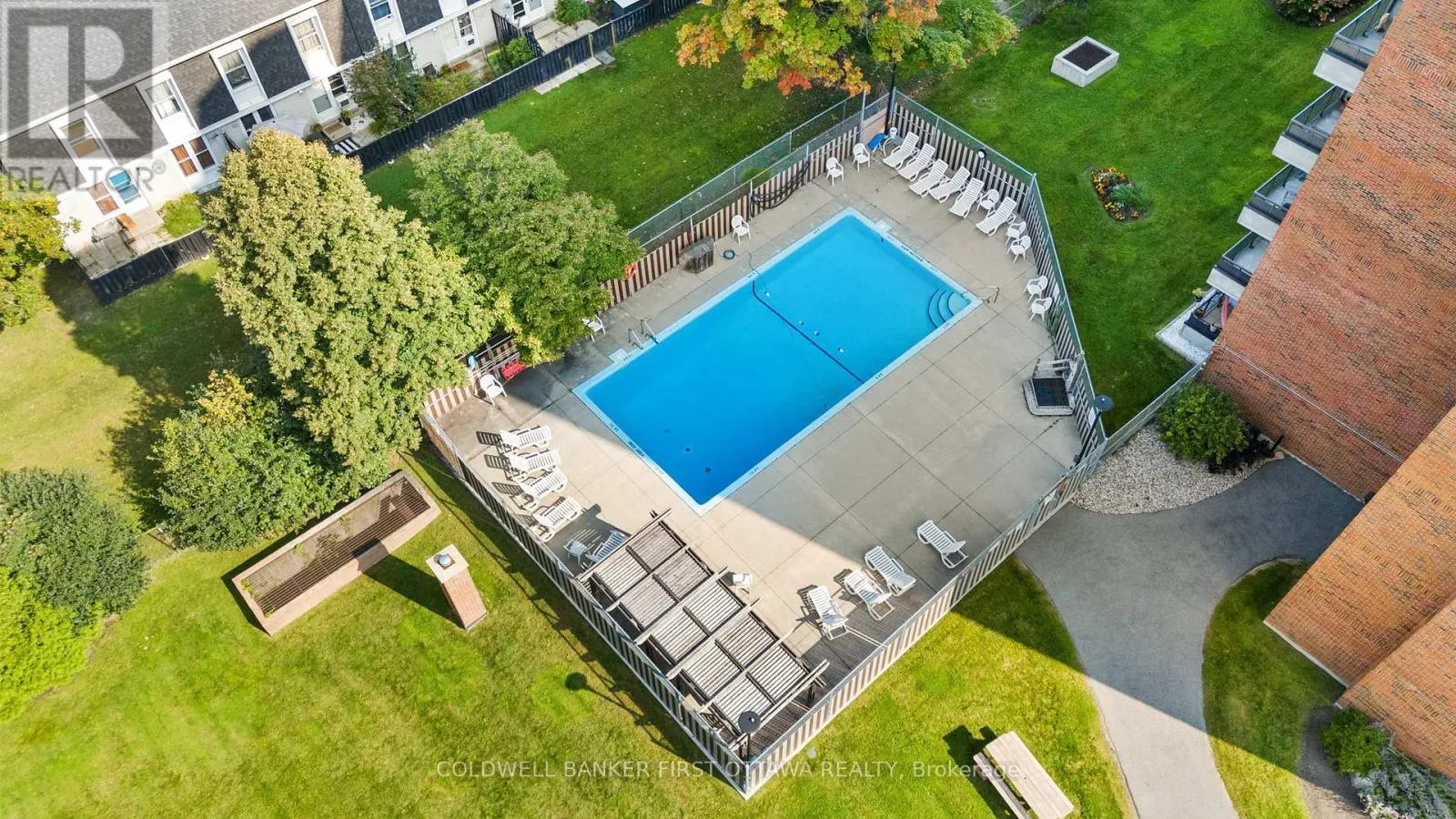 Cross Streets: Clyde Ave/Merivale Rd. ** Directions: Maitland exit on Hwy 417. Head south and continue on to Clyde ave. Turn right on Baseline Rd & 1505 will be on your right. Corner of Clyde & Baseline- Entrnce on Baseline Ave. Prking immediate left upon entering off Baseline Rd. Enter thru back door. Welcome to Manor Square, a well-managed building offering comfort & convenience in a central location. This bright & inviting 2 bed, 1 bath condo offers a functional layout designed for easy living. The open concept living & dining rms feat. laminate flooring, overhead lighting incl. chandelier & access to a private covered balcony w/ North, East & South-facing views, perfect for relaxing or entertaining. The kitchen is thoughtfully designed w/ tile flooring that mimics hardwood, stone backsplash, laminate counters, wine slots, two framed walls allow loads of light in & SS appliances incl. GE glass top stove, NuTone hood fan, Samsung fridge & portable GE dishwasher. Espresso cabinetry w/ glass display panels & open décor nooks add character. The main bath feat. a wide vanity w/ built-in sink, mirror, lighting, medicine cabinet, cabinetry below, tile-surround tub/shower combo & faux laminate tile flooring. Both beds are carpeted, the primary offers a wood sliding double closet & window overlooking the pool, while the secondary offers natural light & a double closet. Well-kept by 3rd owner. Portable A/C unit sold included in sale. Condo fees ($685.09/mth) incl. amenities, building insurance, garbage removal, maintenance, heat, hydro, management, reserve fund, snow removal, storage & water/sewer (all utilities covered by fee). Shared laundry, storage (#913 in B21) & parking (#35 located near back entrance for convenience) included. Located near Loblaws Plaza & Laurentian Place w/ nearby amenities incl. Walmart, Loblaws, Starbucks, Fit4Less, CIBC, Giant Tiger, FreshCo, Food Basics, Movati, Altea Fitness Centre, College Square restaurants, shops & retail. Mins to Riocan Merivale Place (Winners, Dollarstore), Costco & Viewmount Centre (Metro, HomeSense) w/ easy access to Baseline Rd., Maitland Ave. & Merivale Rd. for a quick commute downtown. Public transit steps away on Baseline, w/ future LRT station access at Algonquin College and Iris Stations. (id:27476)