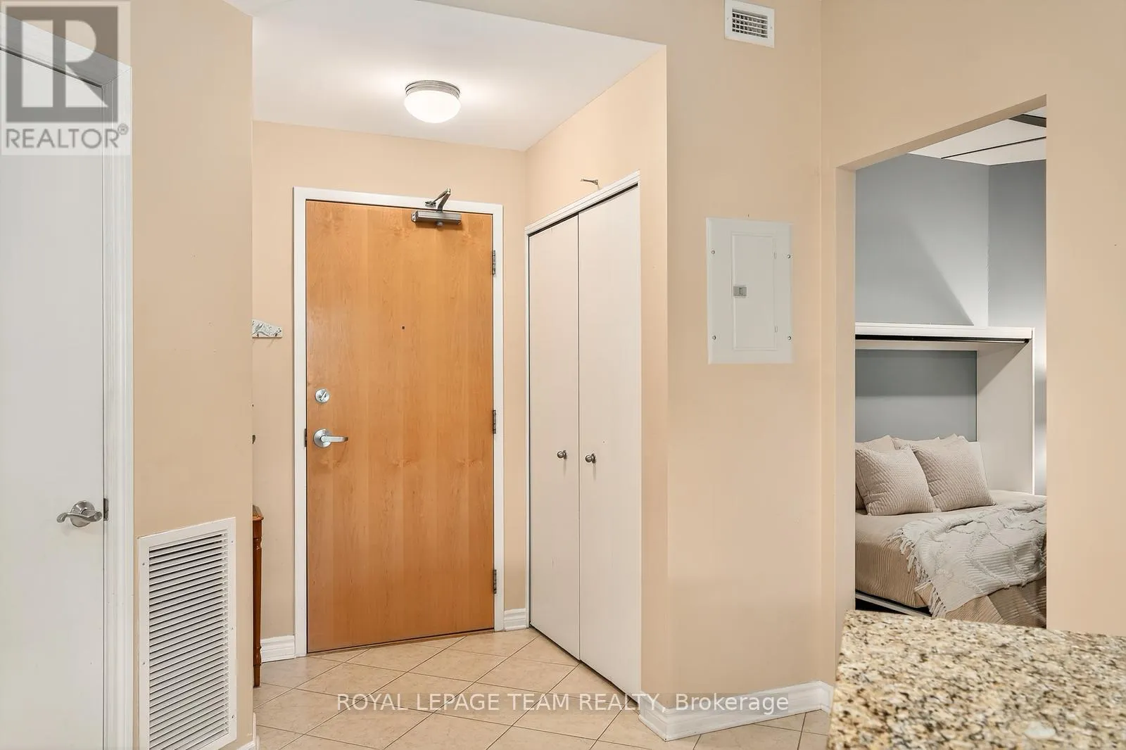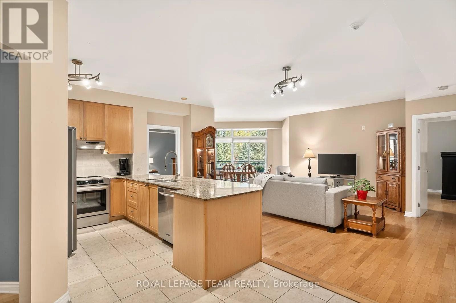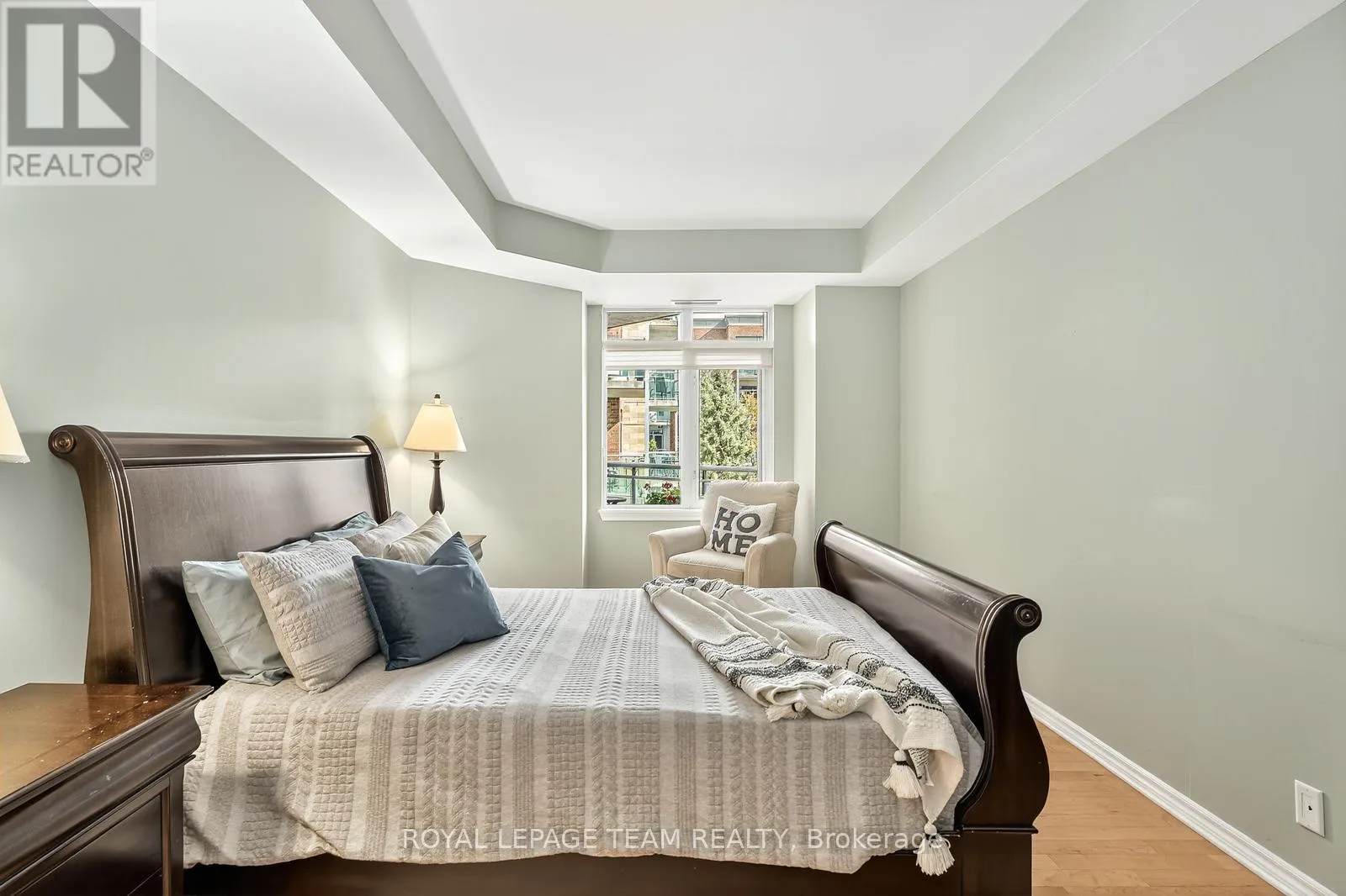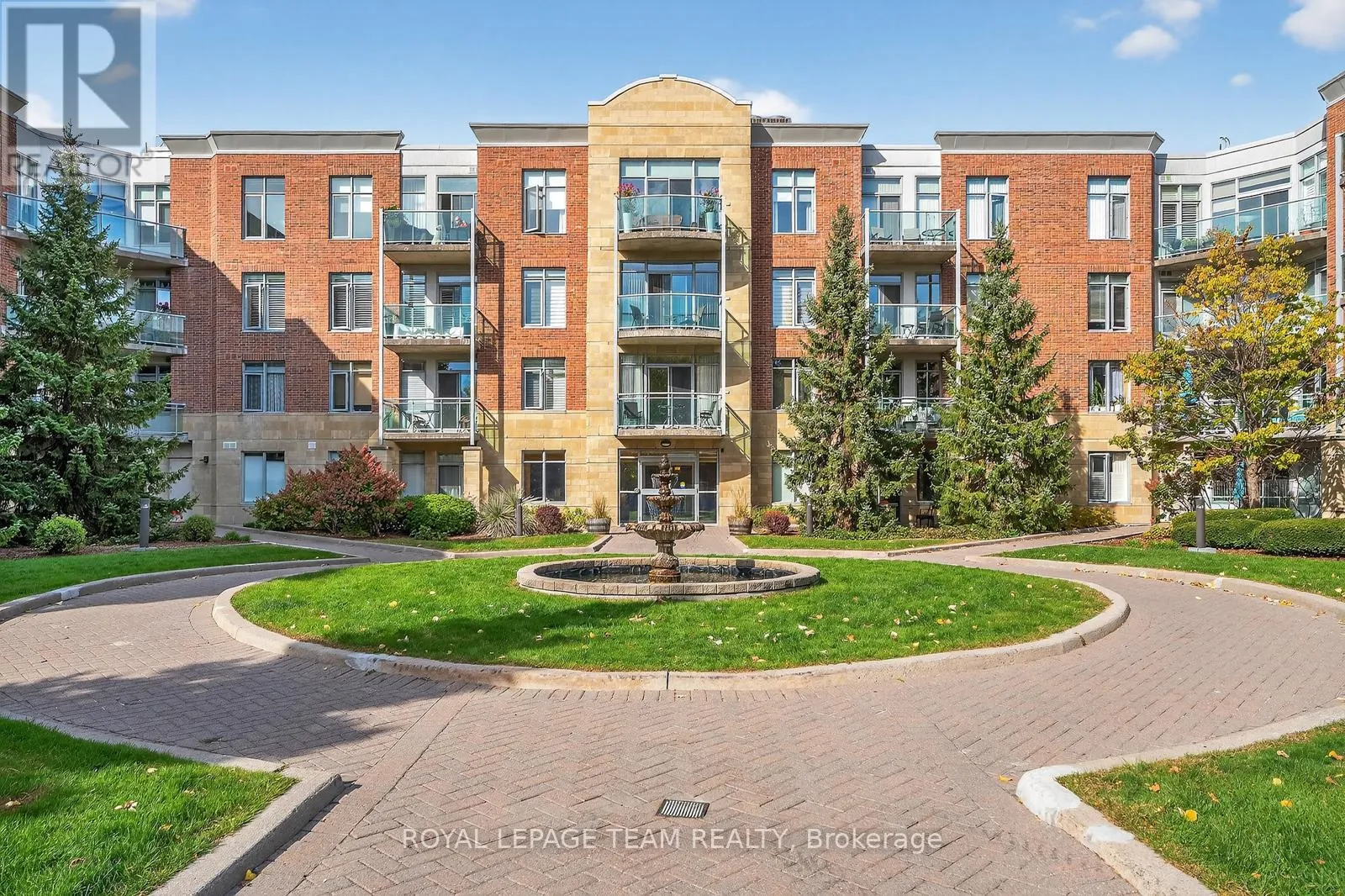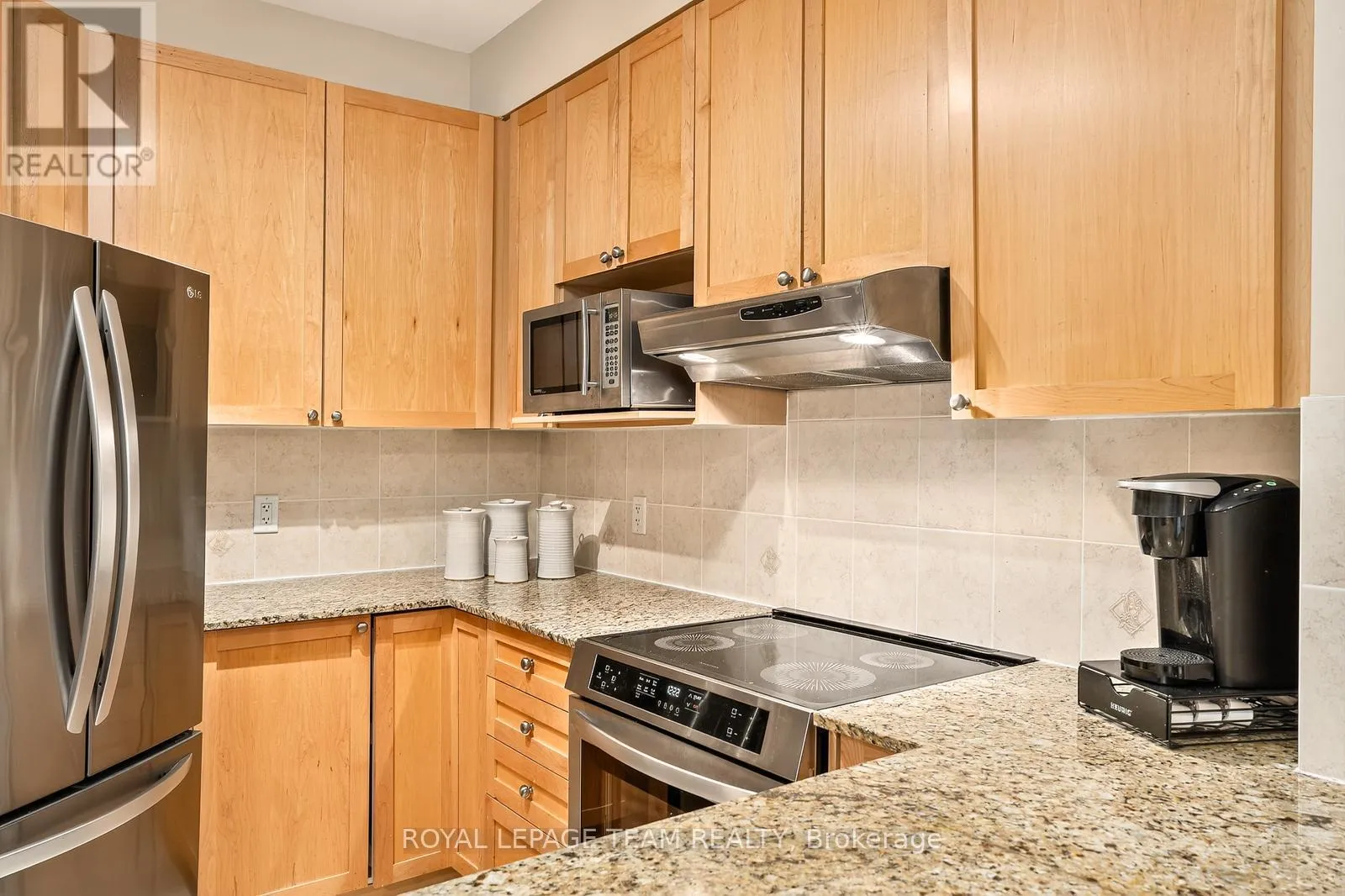 Dalhousie Street to Bolton Street The ideal location: blissful Lowertown energy, near the ByWard Market and Rideau River trails. Sussex Square blends downtown energy with quiet elegance. This two-bedroom, two bath plus den condo overlooks a landscaped courtyard with a central fountain, creating a private, European-style retreat. A tiled foyer leads to a versatile den and an open living/dining space with warm hardwood floors. The granite kitchen offers a large L-shaped island, roll-out cabinetry, and a new induction range. Sunlight pours into the dining nook and onto one of the buildings largest private terraces perfect for al-fresco meals or container gardening. The primary suite features an immense walk-in closet and a spa-inspired ensuite with slate-tiled accessible shower, while the immense second bedroom sits beside a full bath. In-unit laundry adds convenience. Residents enjoy a fully equipped gym, spacious party room, a common rooftop patio with BBQ area with stunning panoramic views of the city and Gatineau. Includes a storage locker, and secure underground parking. Truly, urban living with comfort and style. (id:27476)