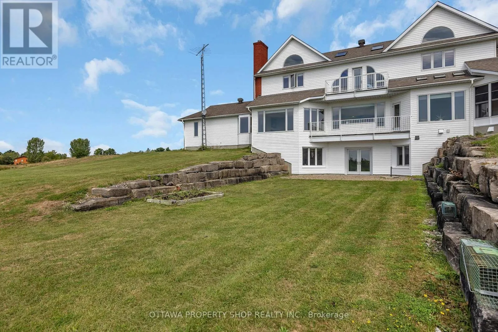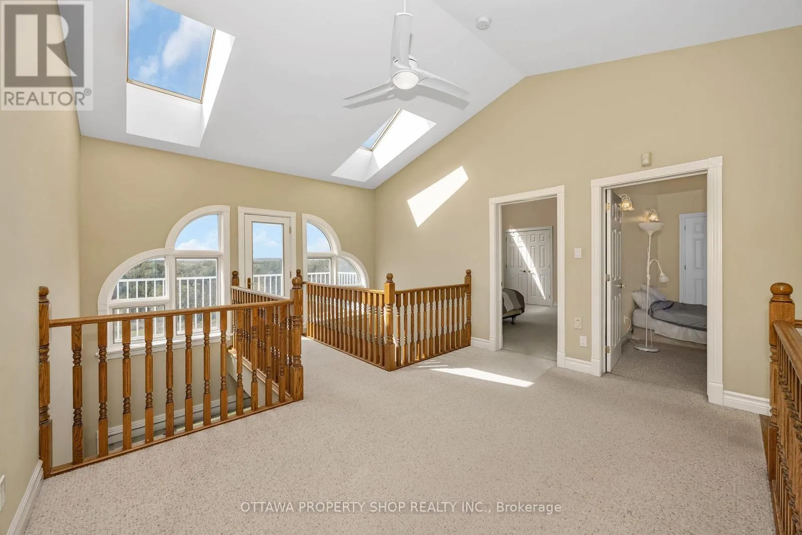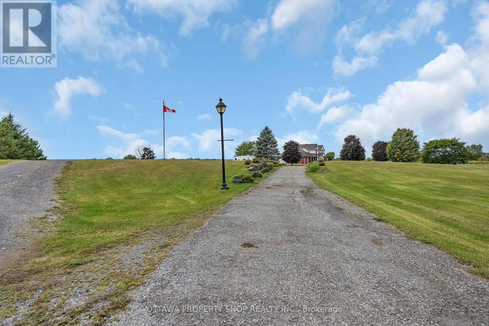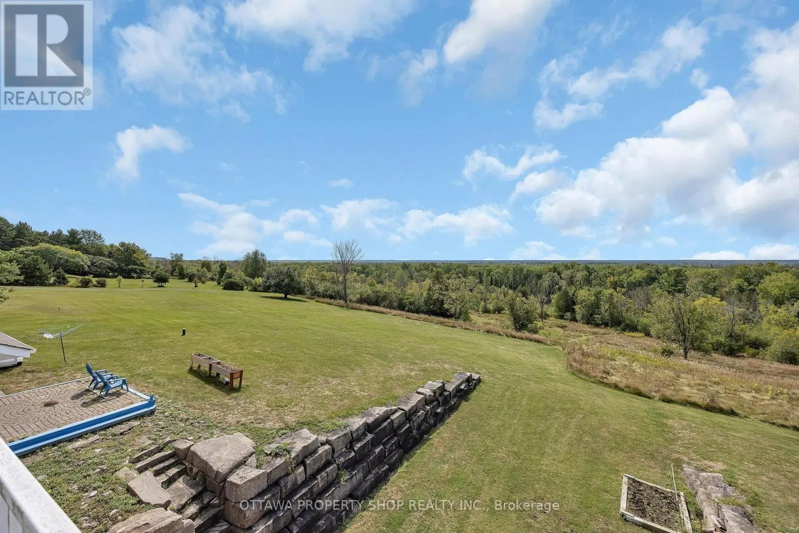 Cross Streets: Dolan Parkway and Greenland. ** Directions: FROM HWY 417, to EAGLESON onto MARCH ROAD, left onto DUNROBIN ROAD, RIGHT onto THOMAS A DOLAN PARKWAY, LEFT onto GREENLAND ROAD. Property is on the left-hand side. Offering breathtaking views, spectacular sunsets, mature trees, a winding approach, and extensive landscaping, this attractive residence captures the best of both worlds: the seclusion of the country, yet just minutes to the conveniences of Kanata and Ottawa all with the luxury of fiber-optic internet in the countryside. Set on 25.55 acres, this extraordinary estate blends privacy, elegance, and modern comfort. The impressive approximately 4,700 sq. ft. home showcases timeless architectural details, abundant natural light, and a thoughtful layout. At the heart of the home is a gourmet kitchen, thoughtfully designed with maple cabinetry accented by crown molding, sleek Corian countertops, glass-front cabinets, and a center island with breakfast bar. Smart features such as a microwave sling, lazy Susan, desk nook, bread pantry box, and extensive storage solutions enhance both function and style. The main level also features elegant double French doors, expansive principal rooms, and a cathedral-ceiling primary suite with extensive closets and a spa-inspired ensuite with double vanity, oversized shower, and tiled floors. Upstairs, two staircases lead to three generously sized bedrooms, each enhanced by vaulted ceilings, Palladian windows, and balcony access with sweeping views of the property. The walk-out lower level extends living space with a recreation room, games area, hobby room, office/den a full bath with oversized shower, and ample storage. Patio doors open to a 20 x 30 interlock stone terrace, seamlessly connecting indoor and outdoor living. (id:27476)