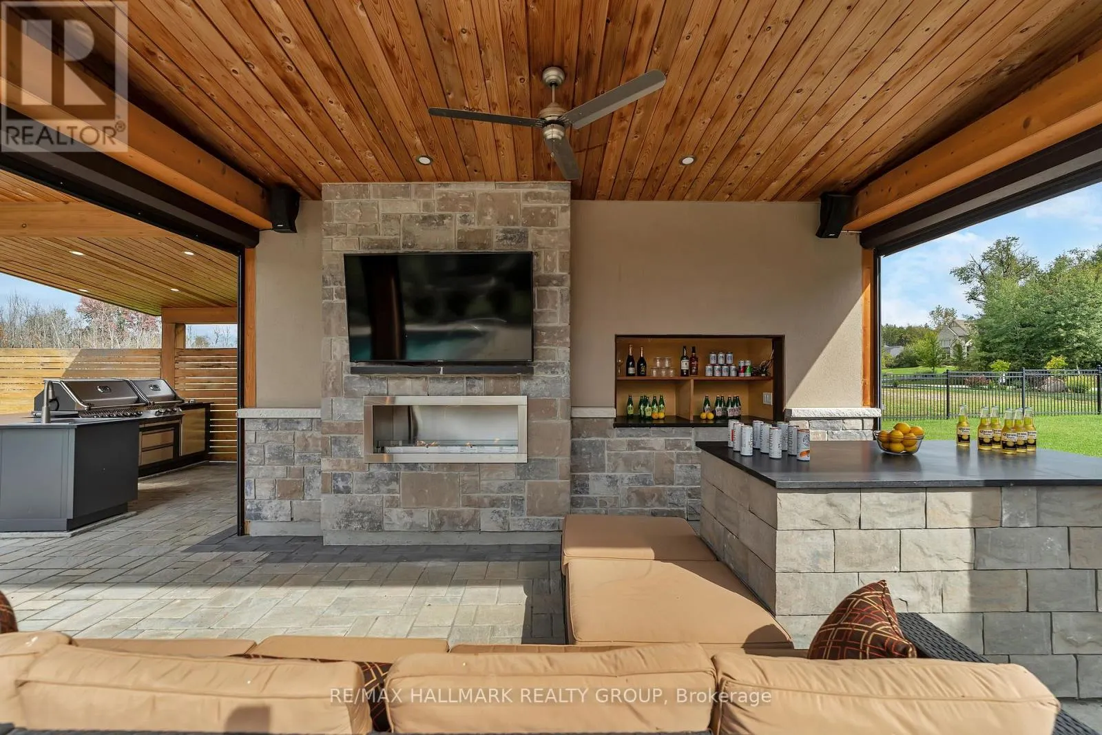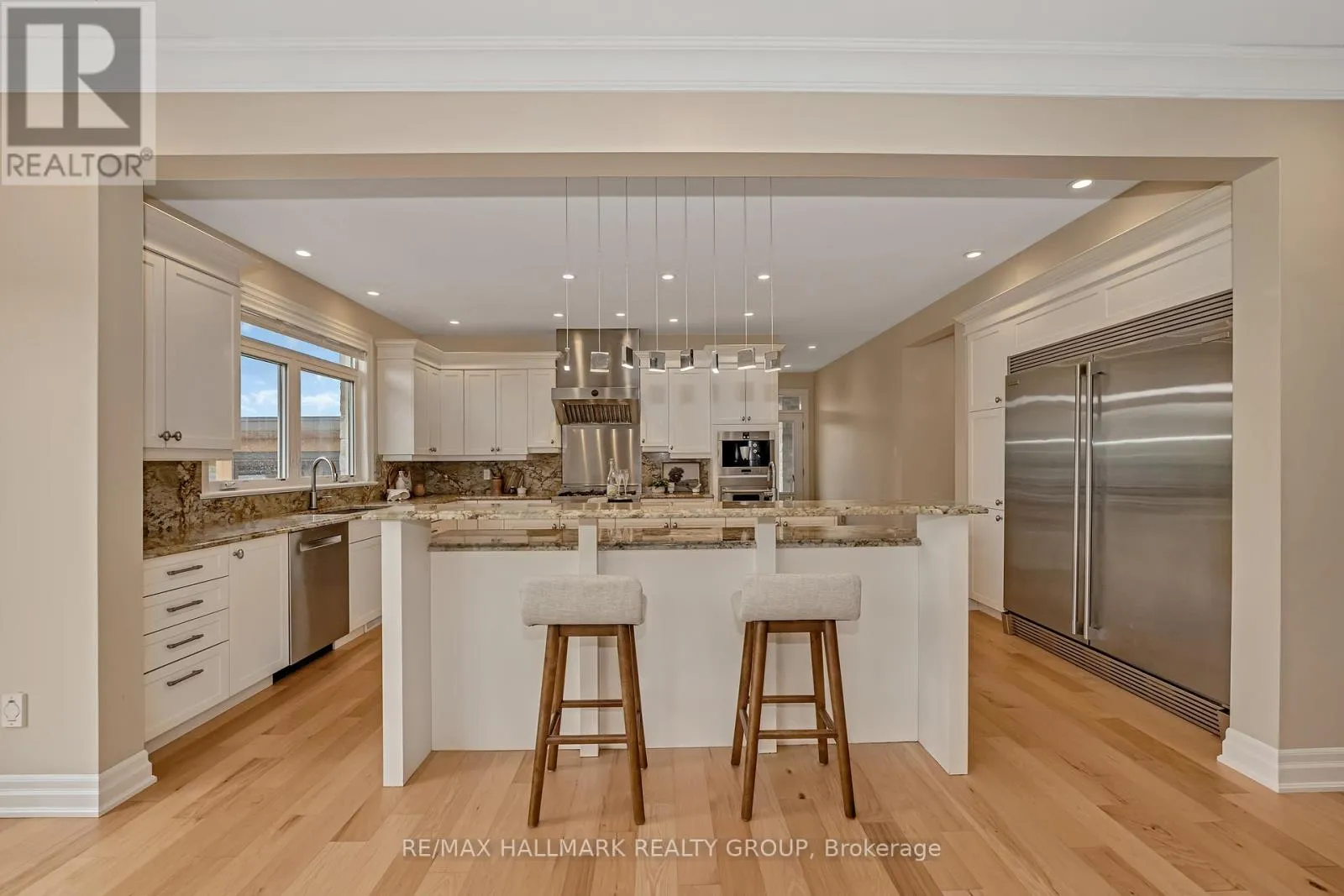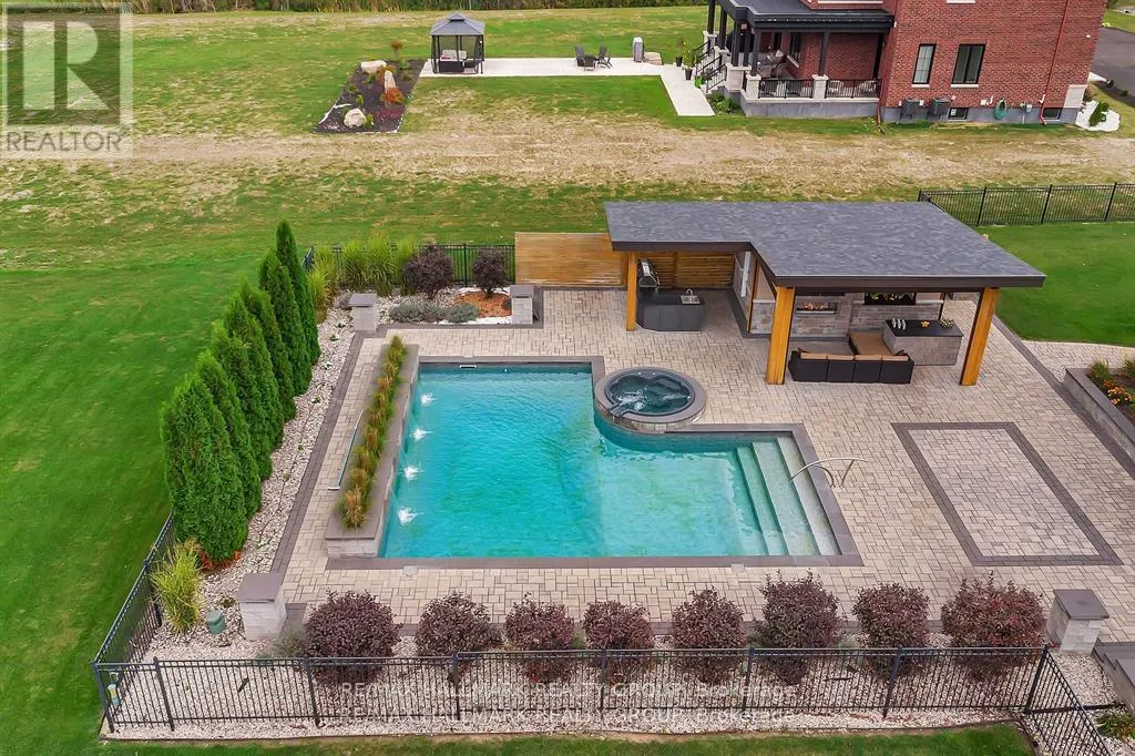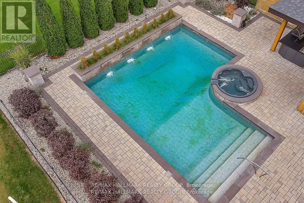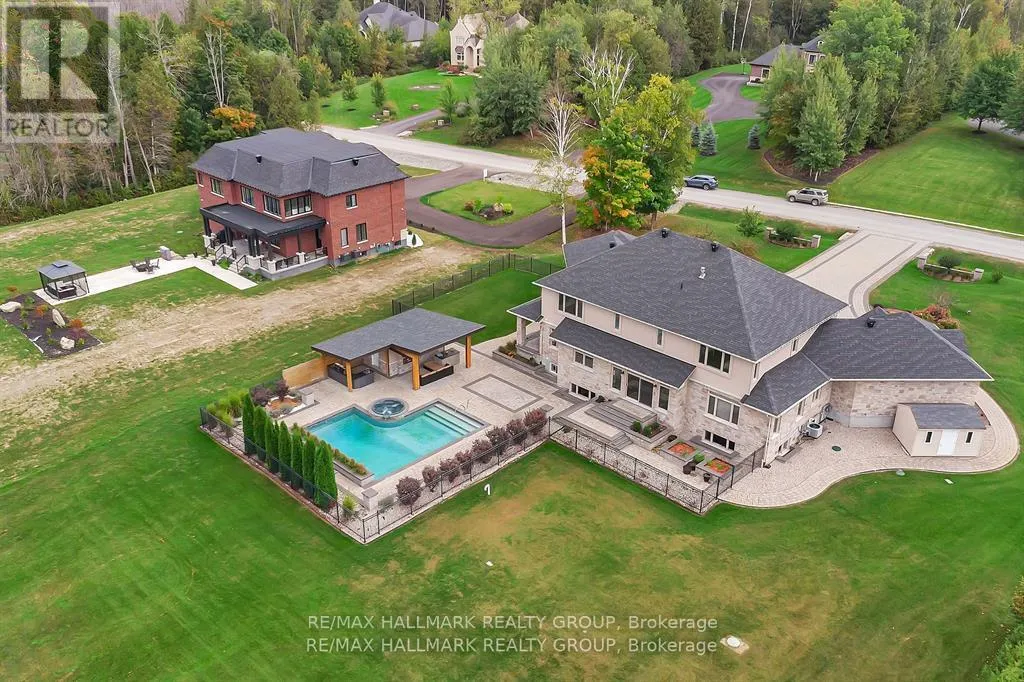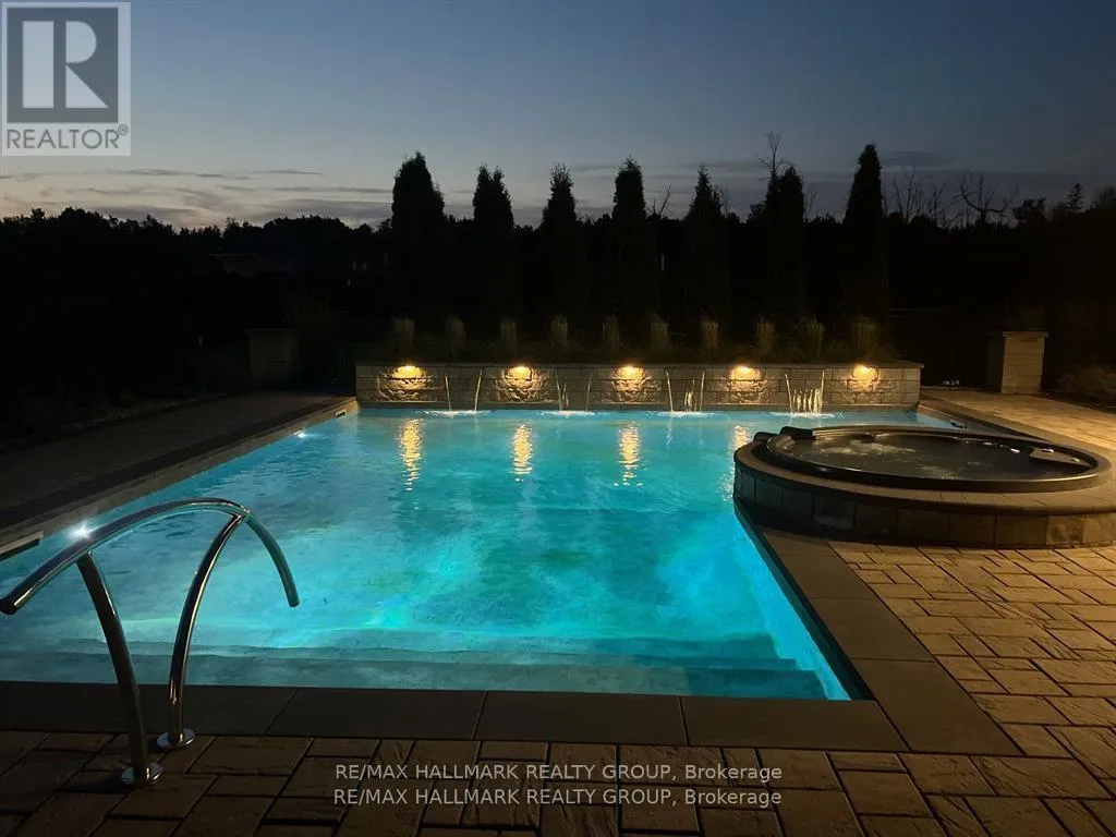 Cross Streets: Mitch Owens Rd and Dozois Rd. ** Directions: Mitch Owens to Dozois, left on Knights Dr, Left on Red Castle Ridge. House on Left. Welcome to this extraordinary estate in the prestigious Rideau Forest community of Manotick. Set on a beautifully landscaped lot, this custom-built residence offers over 7,000 sq. ft. of impeccably designed living space, tailored for both family comfort and grand-scale entertaining. Step inside to a light-filled main floor where elegance meets functionality. The luxurious primary suite is conveniently located on the main level, complete with a spa-inspired ensuite with heated floors and spacious walk-in closet. Each of the four additional bedrooms upstairs feature their own private ensuite and walk-in closet, offering unparalleled privacy and comfort. The heart of the home is the show-stopping chefs kitchen, boasting dual islands, a massive walk-in pantry, and premium appliances, perfect for both casual family meals and gourmet entertaining. A dedicated main floor office provides a quiet retreat for work or study. Unique to this home are two separate garages , two car on each side each leading into well-appointed mudrooms, offering ample storage and family-friendly convenience. Upstairs, a versatile loft area and a large laundry room add to the home's thoughtful layout. The finished lower level is an entertainers dream, featuring a kitchen and bar area, private movie theater that seats 7 in world class recliners, a fitness studio, lounge space, and a luxurious bathroom with a steam shower. Step outside to your private oasis, a resort-style pool with waterfall Hot Tub, complete with a fully equipped pool house and an outdoor kitchen, and lounge area with TV and surround sound, gas fireplace, bar and remote controlled screens, perfect for summer gatherings. Every detail of this home reflects quality, style, and timeless sophistication. An exceptional opportunity to own one of Manoticks finest estates. (id:27476)