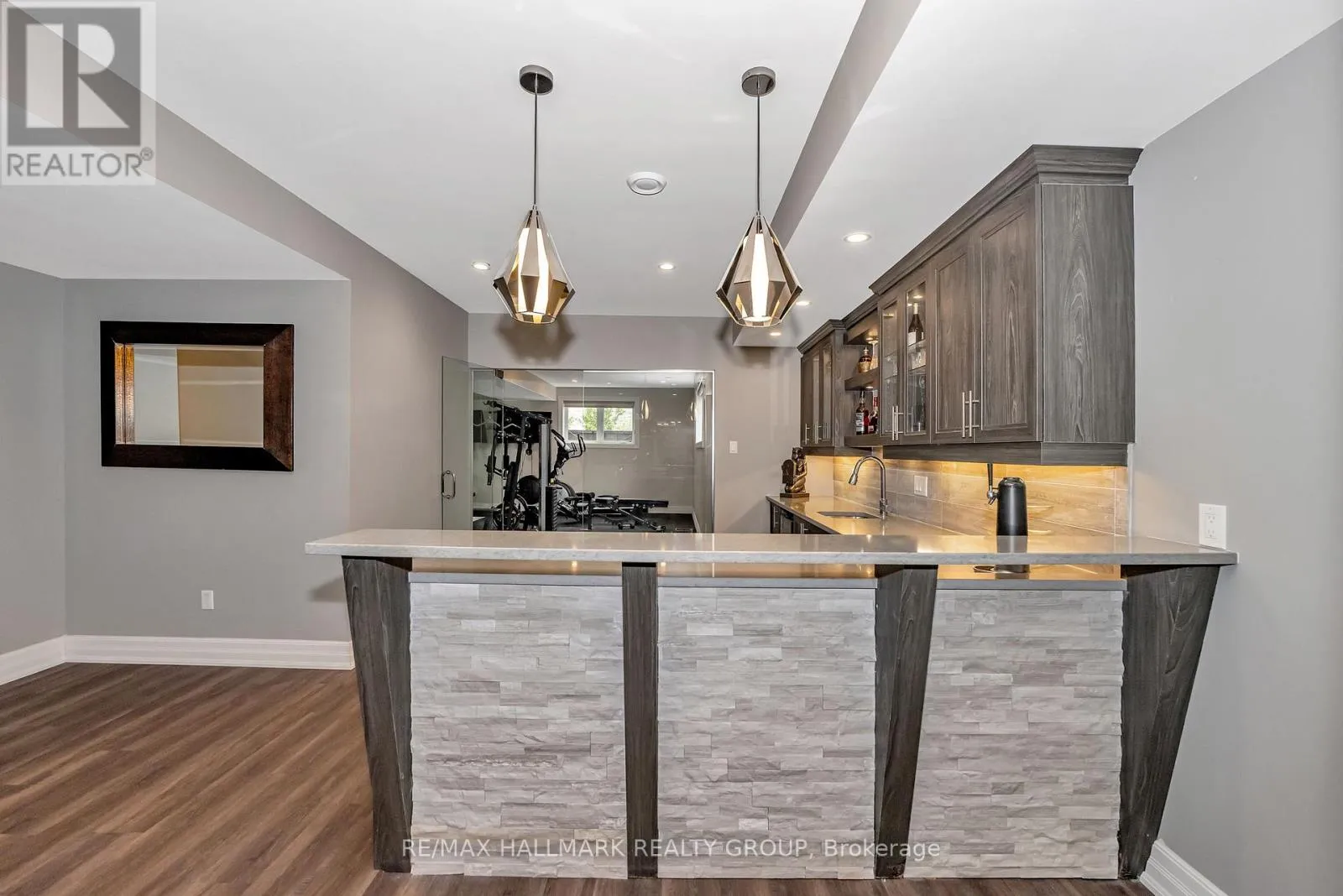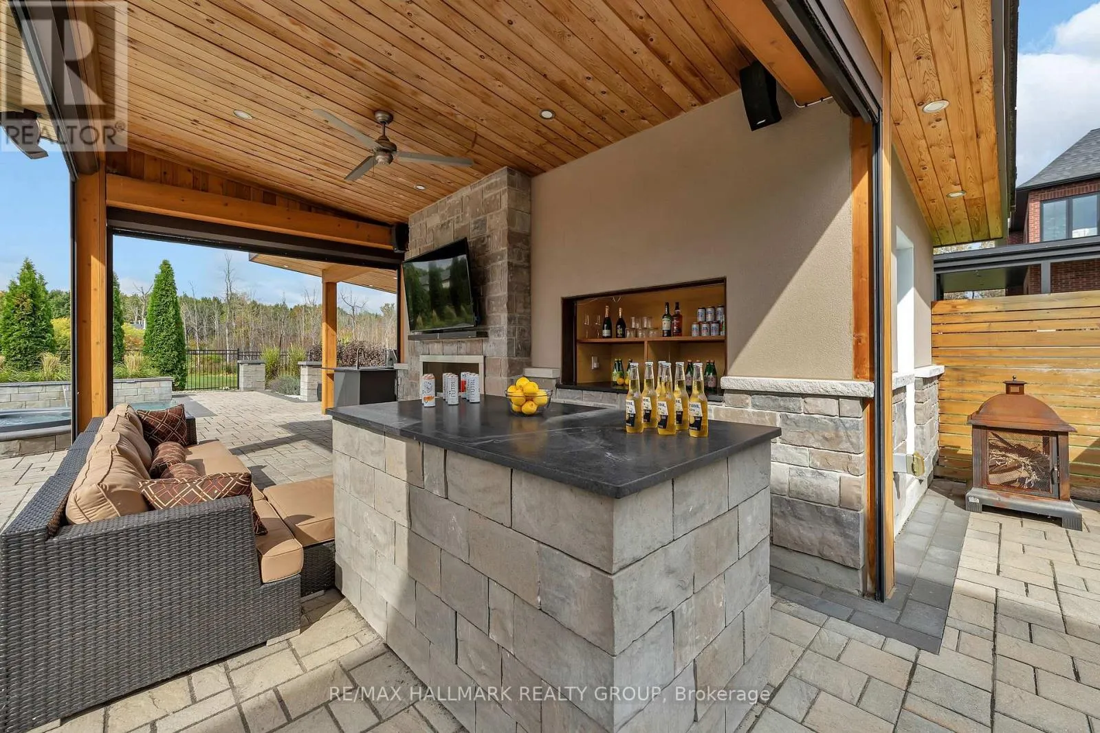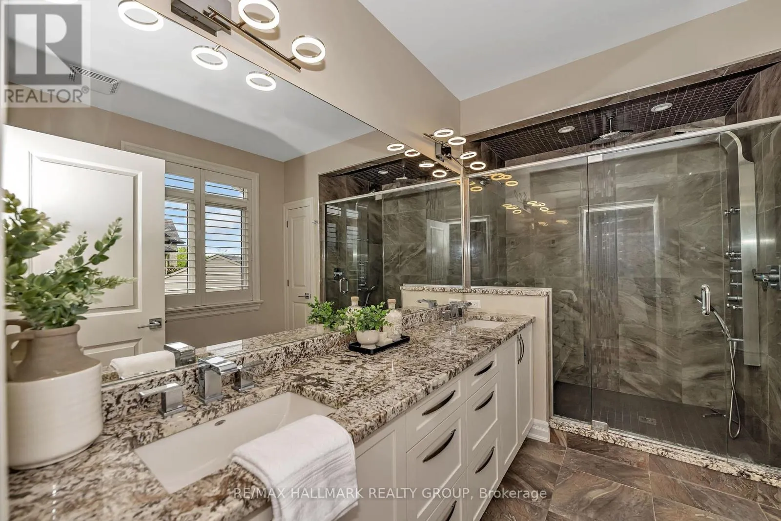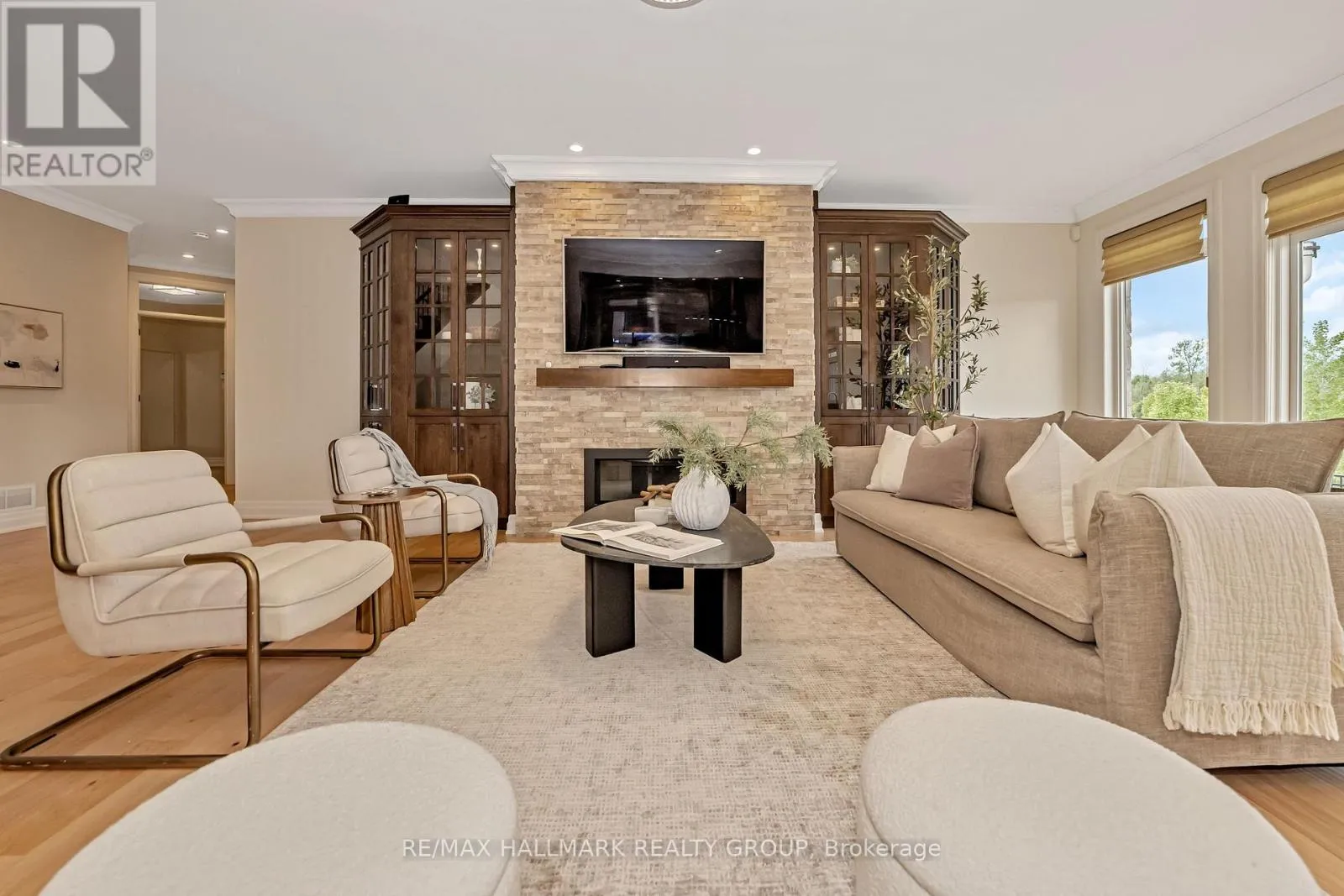 Cross Streets: Mitch Owens Rd and Dozois Rd. ** Directions: Mitch Owens to Dozois, left on Knights Dr, Left on Red Castle Ridge. House on Left. Welcome to this extraordinary estate in the prestigious Rideau Forest community of Manotick. Set on a beautifully landscaped lot, this custom-built residence offers over 7,000 sq. ft. of impeccably designed living space, tailored for both family comfort and grand-scale entertaining. Step inside to a light-filled main floor where elegance meets functionality. The luxurious primary suite is conveniently located on the main level, complete with a spa-inspired ensuite with heated floors and spacious walk-in closet. Each of the four additional bedrooms upstairs feature their own private ensuite and walk-in closet, offering unparalleled privacy and comfort. The heart of the home is the show-stopping chefs kitchen, boasting dual islands, a massive walk-in pantry, and premium appliances, perfect for both casual family meals and gourmet entertaining. A dedicated main floor office provides a quiet retreat for work or study. Unique to this home are two separate garages , two car on each side each leading into well-appointed mudrooms, offering ample storage and family-friendly convenience. Upstairs, a versatile loft area and a large laundry room add to the home's thoughtful layout. The finished lower level is an entertainers dream, featuring a kitchen and bar area, private movie theater that seats 7 in world class recliners, a fitness studio, lounge space, and a luxurious bathroom with a steam shower. Step outside to your private oasis, a resort-style pool with waterfall Hot Tub, complete with a fully equipped pool house and an outdoor kitchen, and lounge area with TV and surround sound, gas fireplace, bar and remote controlled screens, perfect for summer gatherings. Every detail of this home reflects quality, style, and timeless sophistication. An exceptional opportunity to own one of Manoticks finest estates. (id:27476)