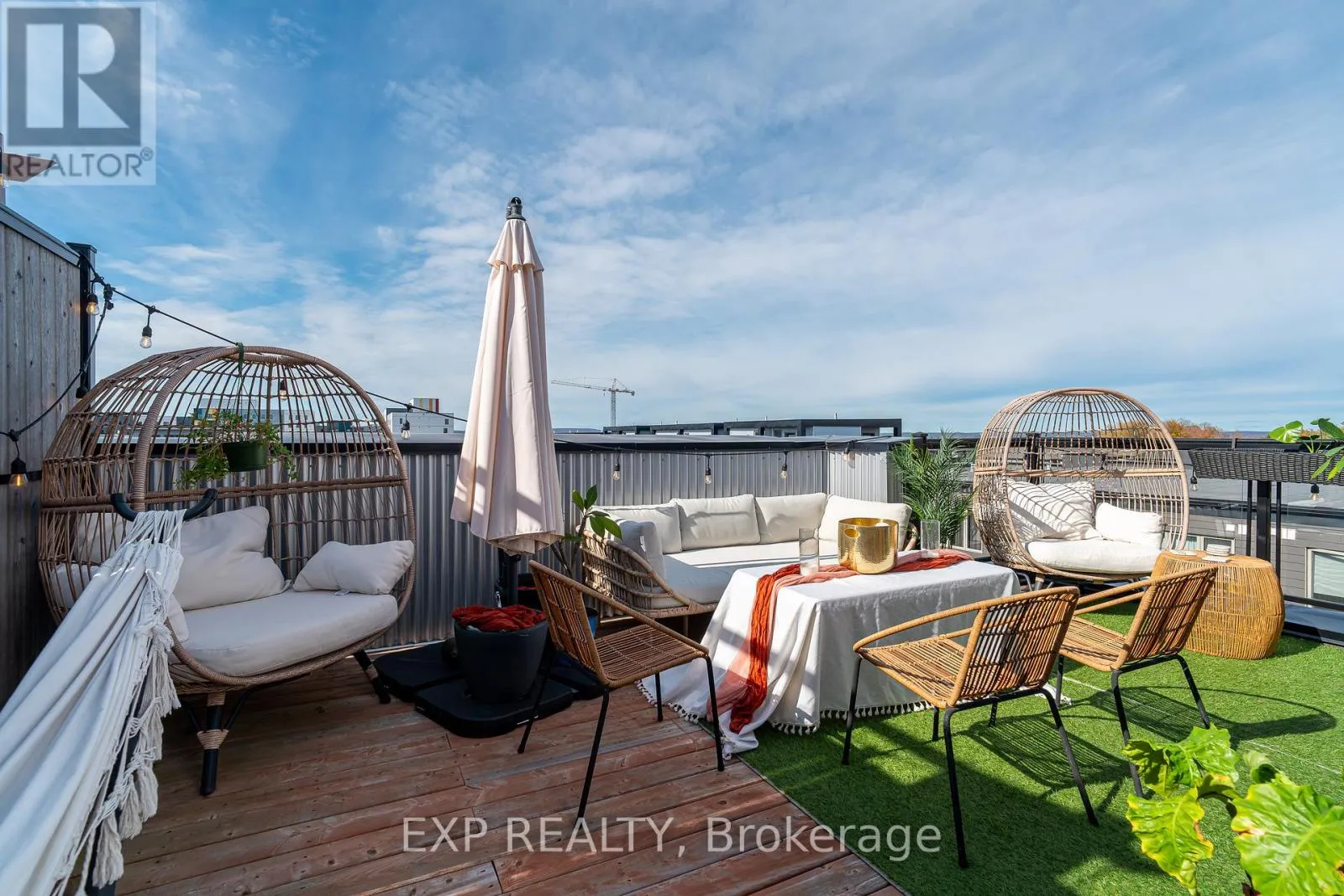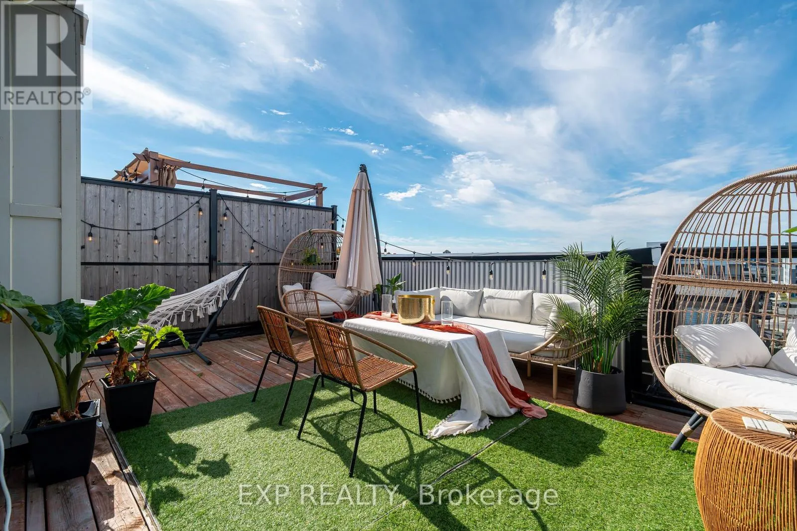 Cross Streets: Montreal Road/Codd's Road. ** Directions: Montreal Road, South on Codd's, Right on Mikinak, Right on Squadron, Left on Takamoase, Right on Makwa. Welcome to your new happy place, a bright, modern 2019 2 bed, 2 bath upper-level corner unit in one of Ottawa's most vibrant communities. Steps from Parks, Nature Trails & Paths on Ottawa River, Montfort, CSE, CSIS, CMHC, LRT, Costco, plus just minutes to prestigious private schools: Ashbury College and Elmwood School. With over $60K in upgrades, this home features smooth ceilings, custom lighting, upgraded luxury vinyl plank flooring, and a sun-filled open layout. The kitchen shines with quartz counters, pristine white cabinetry, upgraded charcoal matching appliances, and a spacious eat-at island. Upstairs, enjoy a private balcony off the primary bedroom, a versatile second bedroom with TONS of light (perfect as gym, studio, office or warm bedroom), and a sleek full bath with his and hers sinks set in a quartz counter and complimentary gleaming tile work. Top it all off with your own private rooftop terrace that once you step into, the views of the skyline will make you fall in love. The terrace is ideal for BBQ socials (equipped with gas bbq hookup) , sun-soaked peaceful afternoons, or starry evenings. If you haven't been to Water Ridge Village, this will be your perfect intro. Common Element fees include: Building Insurance, Garbage Removal, General Maintenance and Repair, Landscape, Management Fee, Reserve Fund Allocation, Snow Removal (id:27476)