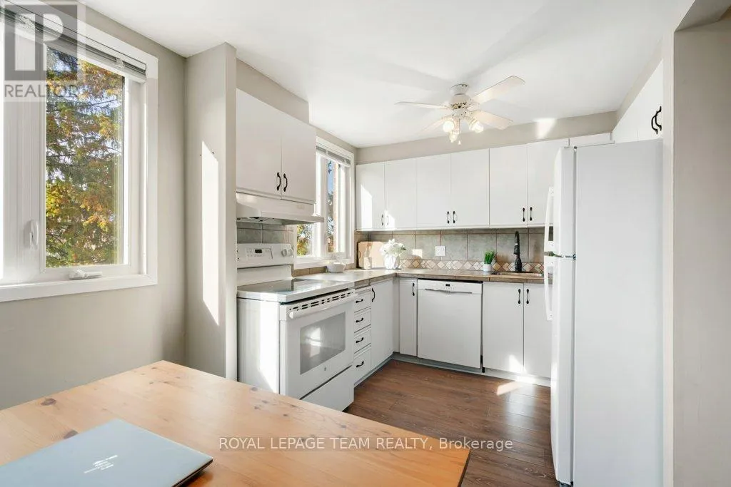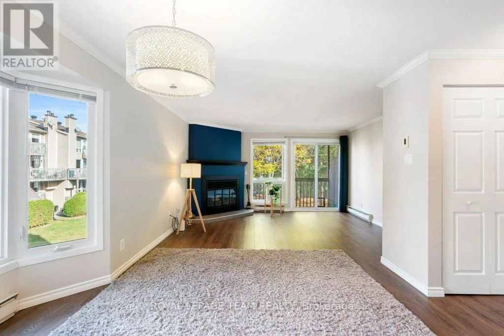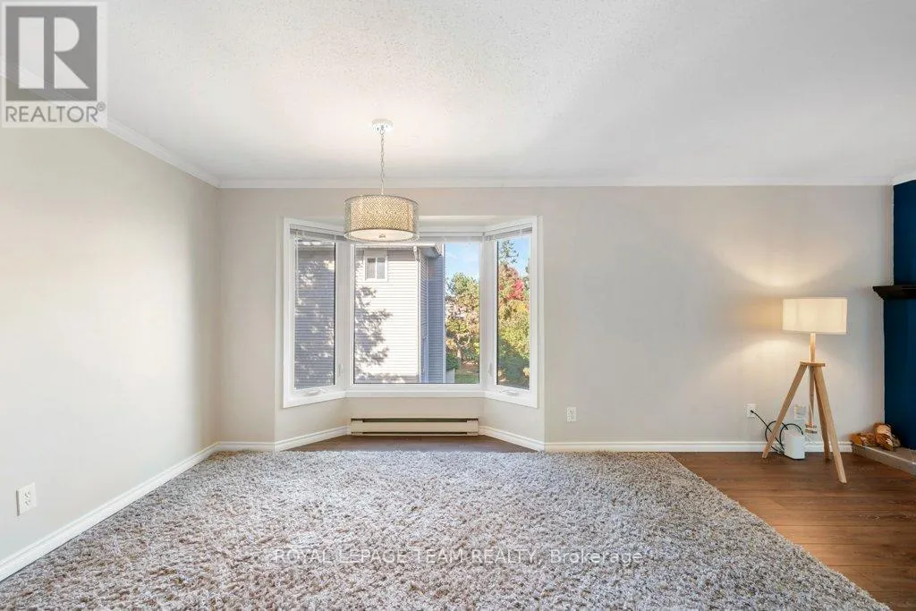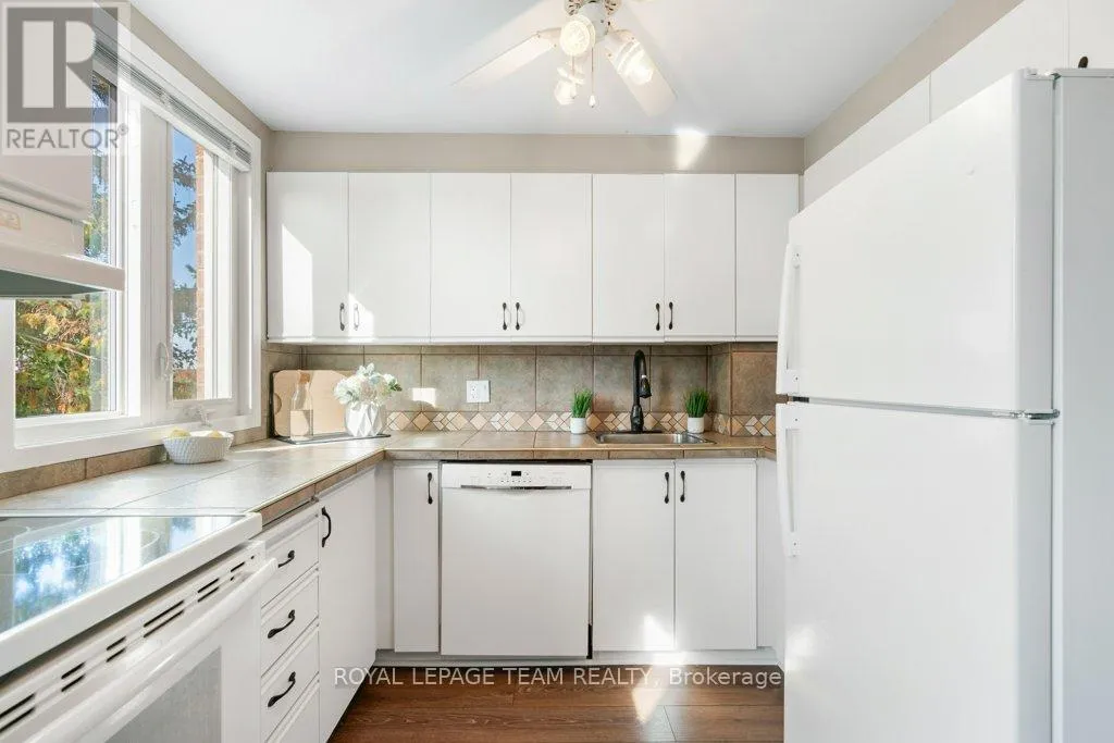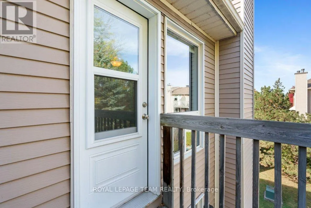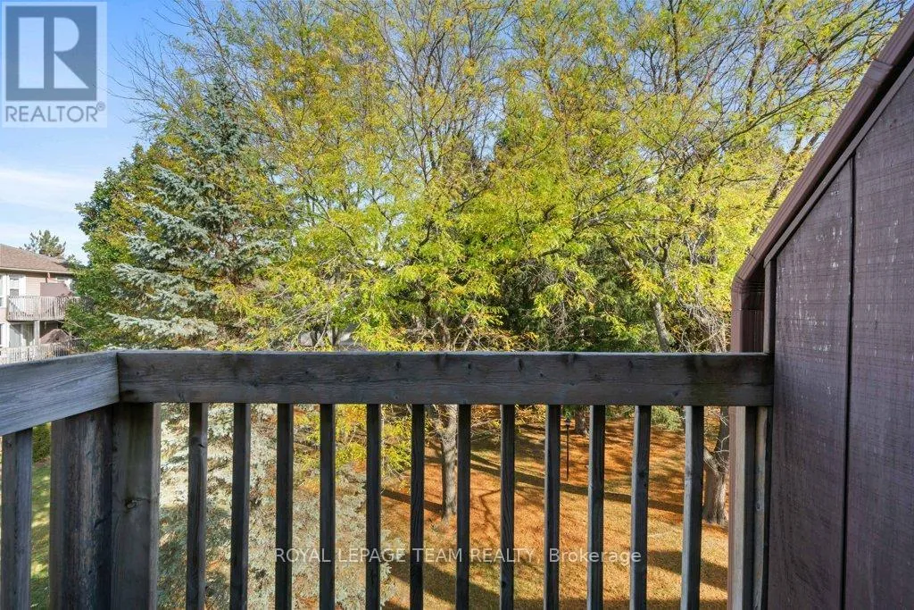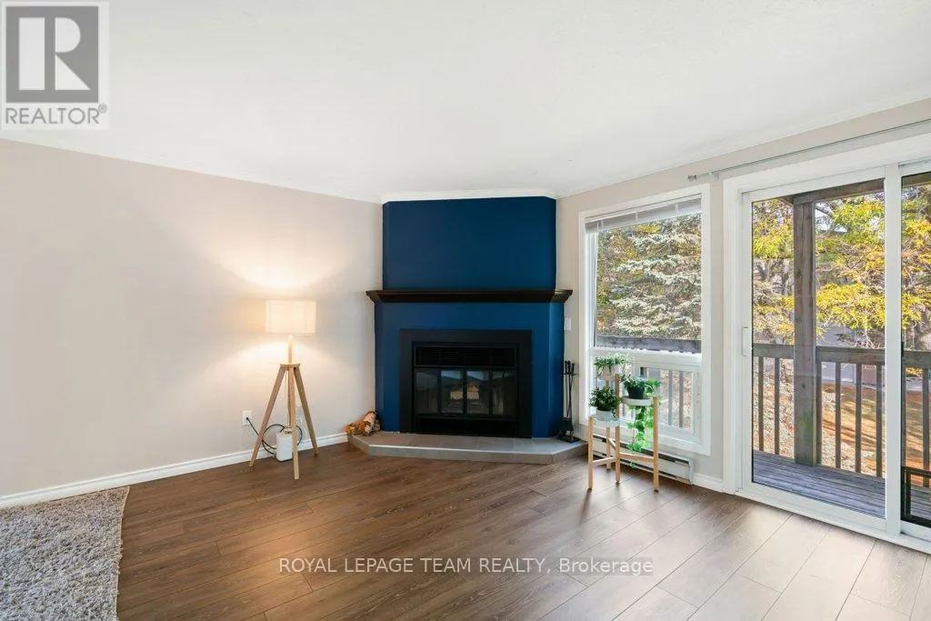 Cross Streets: Avignon Ct. ** Directions: 174 east to Orleans BLVD, left on Jean D'Arc. Amazing Value & Fantastic Location! Welcome to this beautifully updated upper end-unit stacked condo featuring 2 bedrooms, 2 bathrooms, and peaceful views of the surrounding green space - offering both privacy and tranquility.You'll love the prime location - just steps to top-rated schools, Jeanne d'Arc Plaza, parks, public transit, and scenic walking trails along the Ottawa River.Inside, an abundance of natural light pours in through multiple windows and a skylight, creating a bright and airy atmosphere. The spacious living room features a cozy wood-burning fireplace and access to your private balcony overlooking nature - the perfect spot for morning coffee. The dining area boasts a large bay window and elegant crown moulding, while the refinished staircase railing adds a stylish touch.The kitchen shines with refinished cabinets, generous windows, and a sunny eat-in nook. You'll also find an updated powder room and luxury vinyl flooring (2020) throughout the main level.Upstairs, the primary bedroom offers plenty of space and its own private balcony with relaxing green views. The second bedroom is well-sized, and the renovated main bath includes a deep soaker tub/shower combo. Convenient laundry and storage area with charming barn door access completes the upper level.This home blends comfort, style, and convenience in one beautiful package - an ideal choice for first-time buyers, downsizers, or anyone seeking an easy-care lifestyle in a fantastic neighborhood.Some photos have been virtually staged (id:27476)