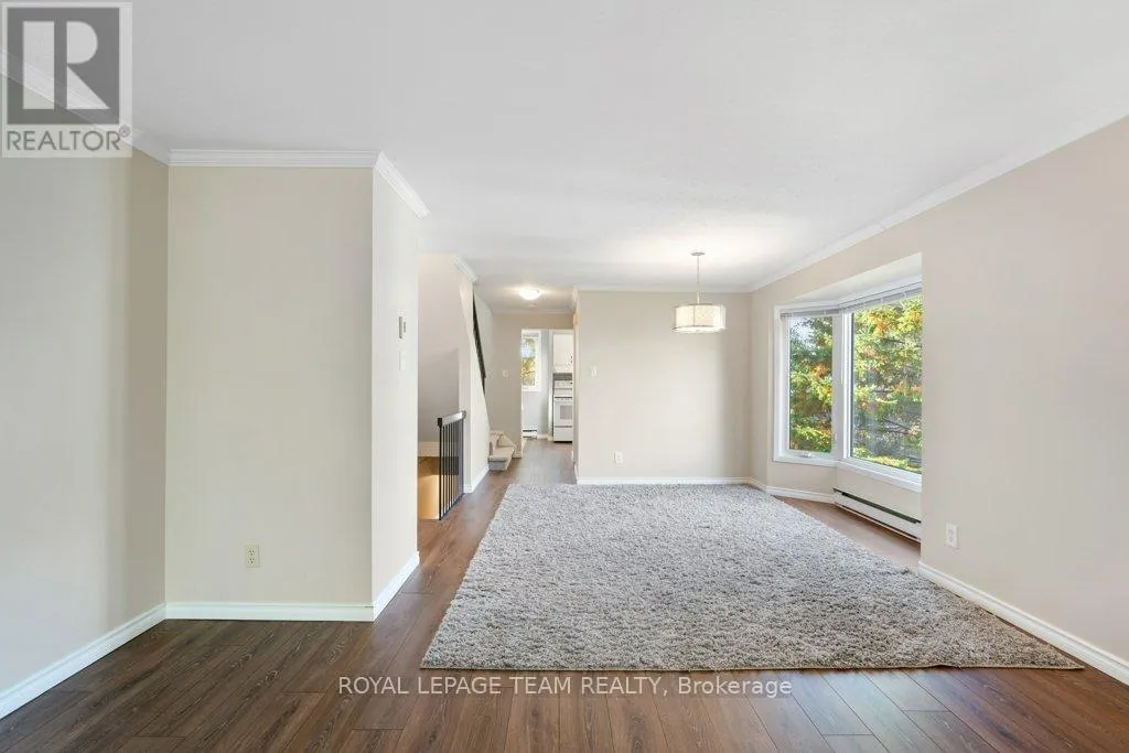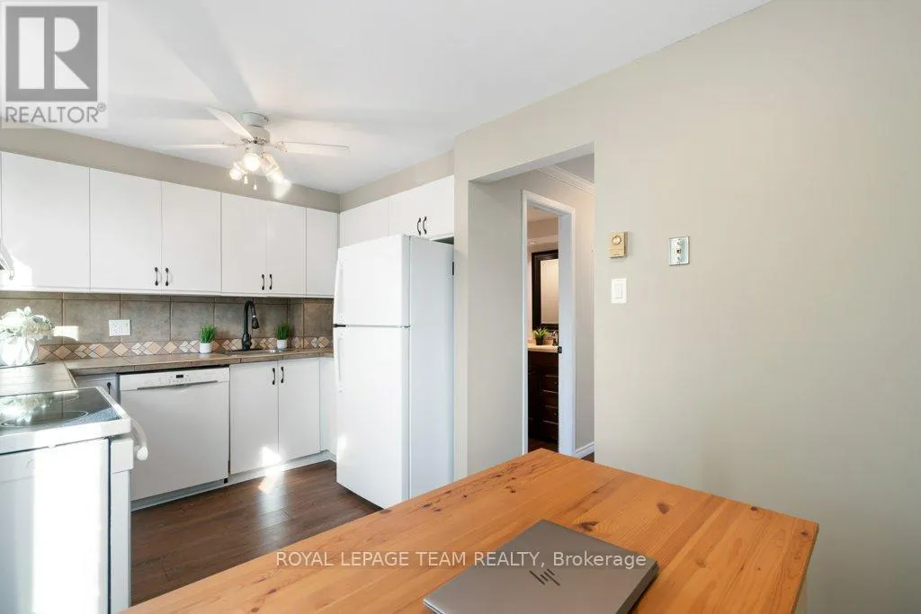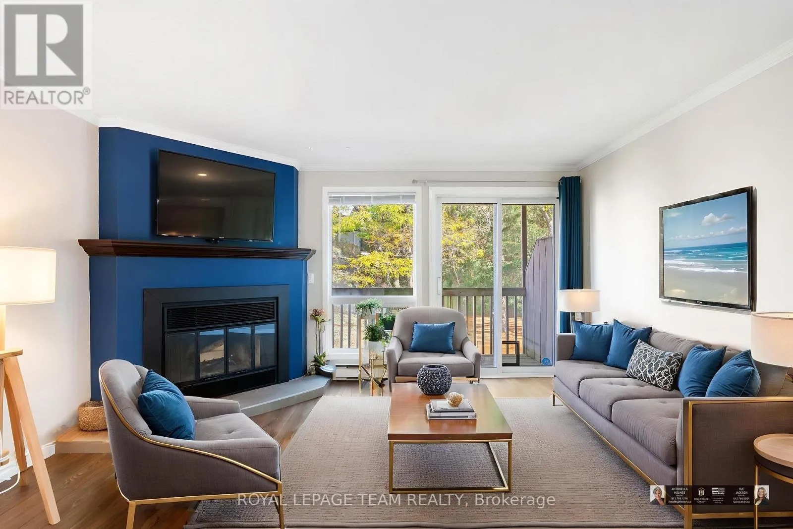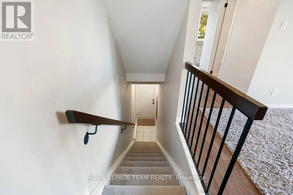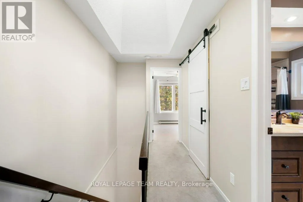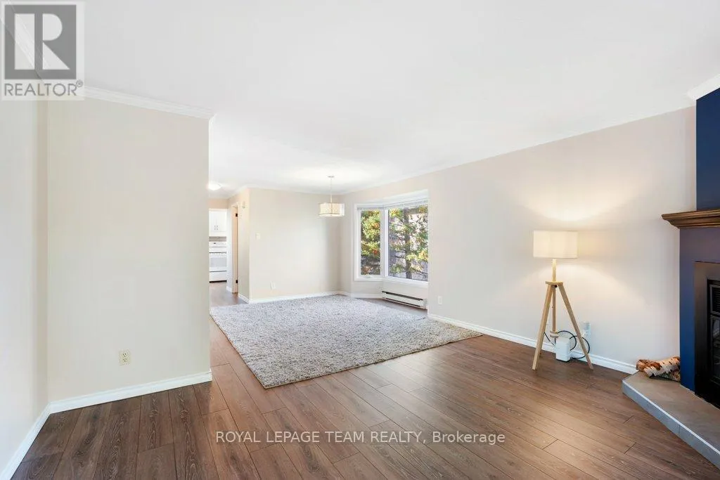 Cross Streets: Avignon Ct. ** Directions: 174 east to Orleans BLVD, left on Jean D'Arc. Amazing Value & Fantastic Location! Welcome to this beautifully updated upper end-unit stacked condo featuring 2 bedrooms, 2 bathrooms, and peaceful views of the surrounding green space - offering both privacy and tranquility.You'll love the prime location - just steps to top-rated schools, Jeanne d'Arc Plaza, parks, public transit, and scenic walking trails along the Ottawa River.Inside, an abundance of natural light pours in through multiple windows and a skylight, creating a bright and airy atmosphere. The spacious living room features a cozy wood-burning fireplace and access to your private balcony overlooking nature - the perfect spot for morning coffee. The dining area boasts a large bay window and elegant crown moulding, while the refinished staircase railing adds a stylish touch.The kitchen shines with refinished cabinets, generous windows, and a sunny eat-in nook. You'll also find an updated powder room and luxury vinyl flooring (2020) throughout the main level.Upstairs, the primary bedroom offers plenty of space and its own private balcony with relaxing green views. The second bedroom is well-sized, and the renovated main bath includes a deep soaker tub/shower combo. Convenient laundry and storage area with charming barn door access completes the upper level.This home blends comfort, style, and convenience in one beautiful package - an ideal choice for first-time buyers, downsizers, or anyone seeking an easy-care lifestyle in a fantastic neighborhood.Some photos have been virtually staged (id:27476)
