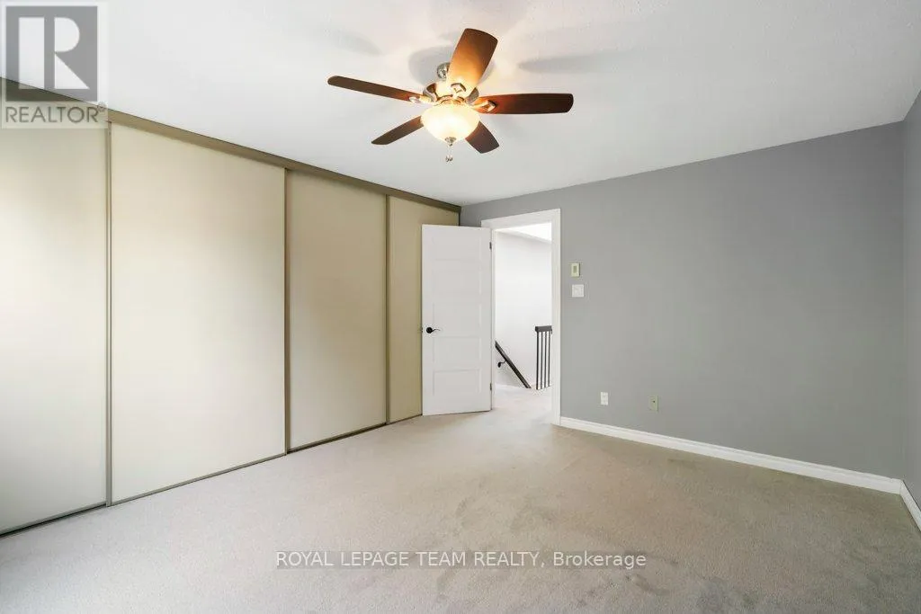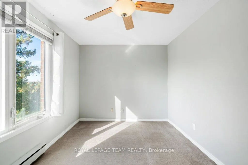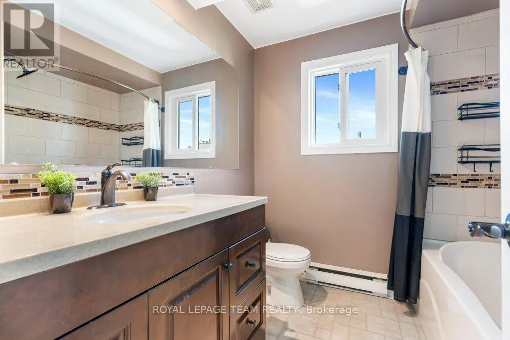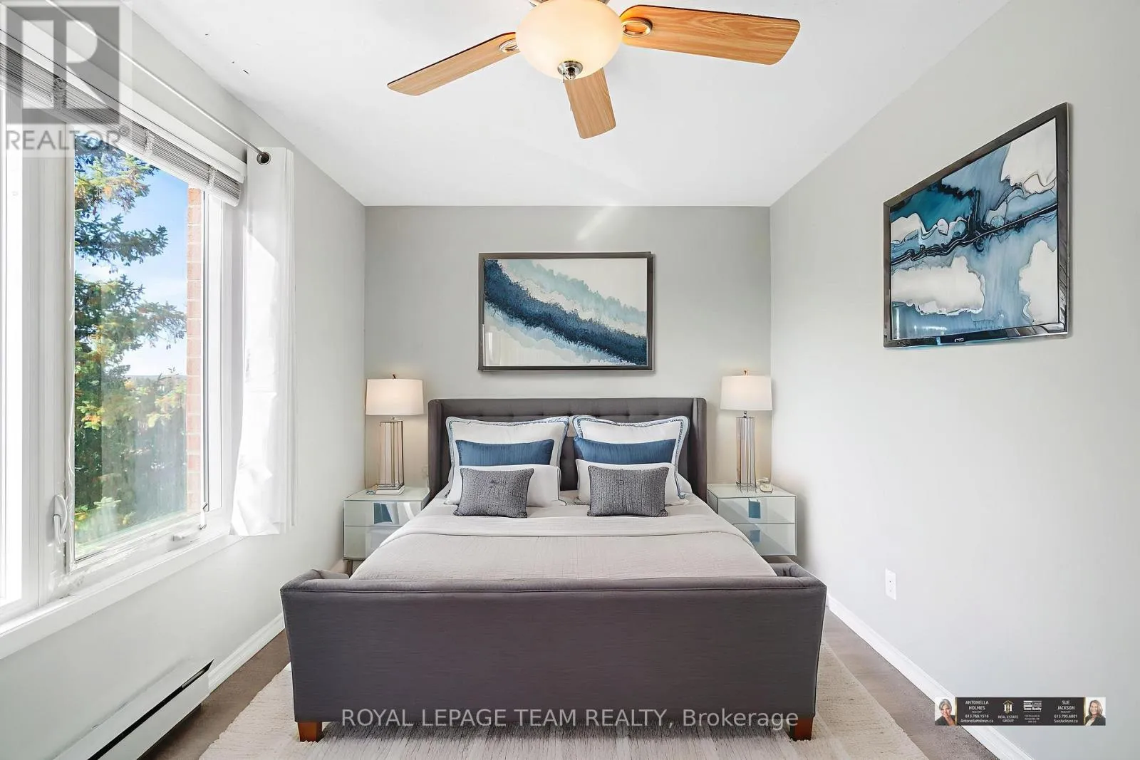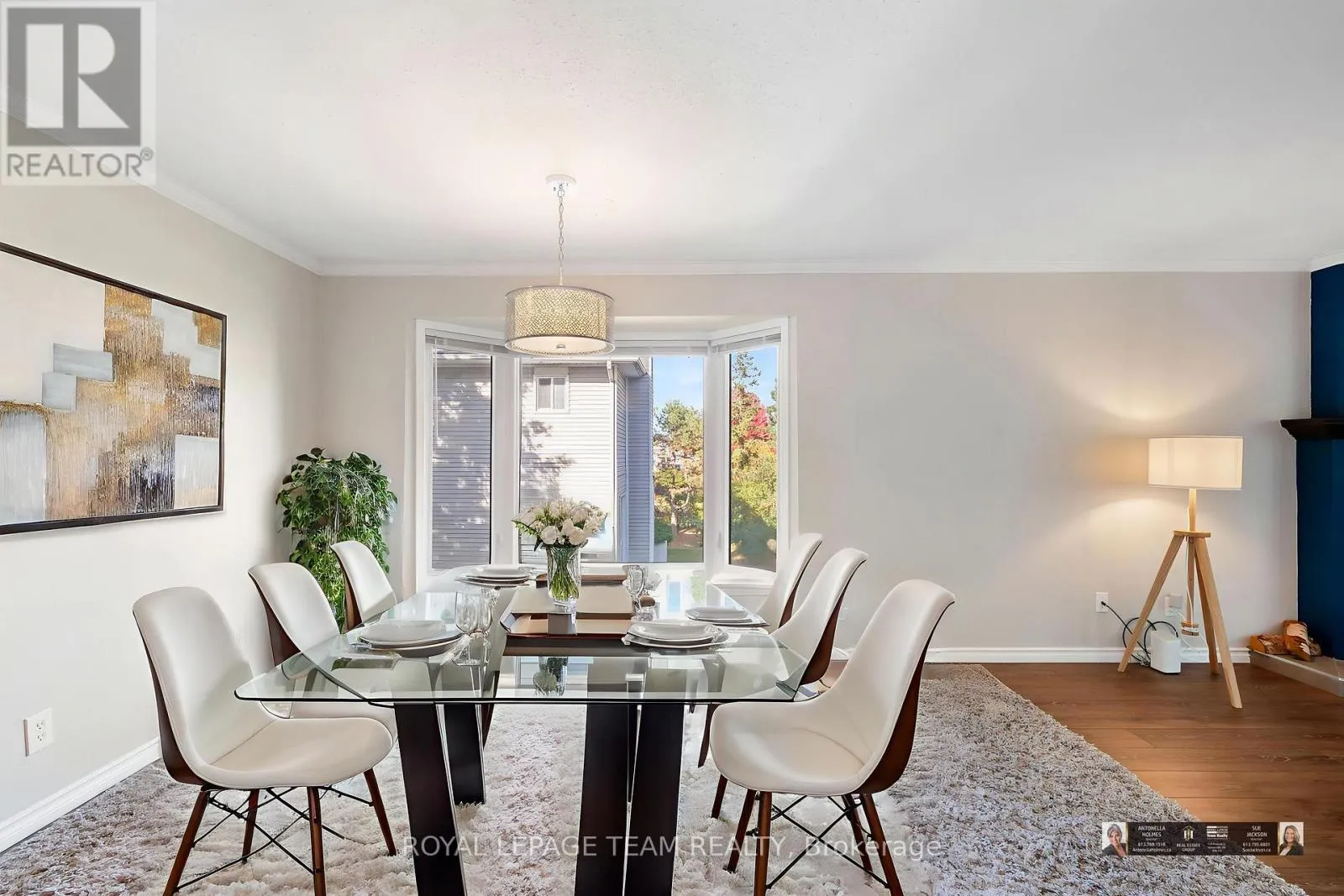 Cross Streets: Avignon Ct. ** Directions: 174 east to Orleans BLVD, left on Jean D'Arc. Amazing Value & Fantastic Location! Welcome to this beautifully updated upper end-unit stacked condo featuring 2 bedrooms, 2 bathrooms, and peaceful views of the surrounding green space - offering both privacy and tranquility.You'll love the prime location - just steps to top-rated schools, Jeanne d'Arc Plaza, parks, public transit, and scenic walking trails along the Ottawa River.Inside, an abundance of natural light pours in through multiple windows and a skylight, creating a bright and airy atmosphere. The spacious living room features a cozy wood-burning fireplace and access to your private balcony overlooking nature - the perfect spot for morning coffee. The dining area boasts a large bay window and elegant crown moulding, while the refinished staircase railing adds a stylish touch.The kitchen shines with refinished cabinets, generous windows, and a sunny eat-in nook. You'll also find an updated powder room and luxury vinyl flooring (2020) throughout the main level.Upstairs, the primary bedroom offers plenty of space and its own private balcony with relaxing green views. The second bedroom is well-sized, and the renovated main bath includes a deep soaker tub/shower combo. Convenient laundry and storage area with charming barn door access completes the upper level.This home blends comfort, style, and convenience in one beautiful package - an ideal choice for first-time buyers, downsizers, or anyone seeking an easy-care lifestyle in a fantastic neighborhood.Some photos have been virtually staged (id:27476)