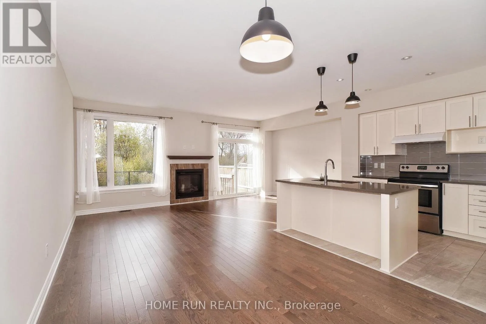 Larimar Circle and Portico Way Ultimate Privacy! Backing onto Conservation Green Space - No Rear Neighbors! Welcome to this quality-built Richcraft Grafton model townhome in the heart of Riverside South, offering 1,949 sq. ft. of elegant living space. Featuring 3 bedrooms, 3 bathrooms, a finished lower level, a fully fenced backyard, and fresh paint throughout, this home is move-in ready and filled with natural light. The main level welcomes you with a spacious foyer leading to a sun-drenched open-concept great room, highlighted by beautiful hardwood flooring, a gas fireplace, and a wall of oversized windows overlooking tranquil greenspace. The chef-inspired kitchen boasts upgraded cabinetry, quartz countertops, a walk-in pantry, and a large center island with breakfast bar - perfect for cooking and entertaining. Upstairs, you'll find three generous bedrooms, including a primary suite with a walk-in closet and a modern ensuite bathroom. A convenient laundry room and family bath complete the second level. The finished lower level offers a bright family room with a large window-ideal for a home office, gym, or cozy retreat. Located within walking distance to parks, playgrounds, schools, trails, public transit, and the future LRT station, this home combines comfort, convenience, and privacy. Tenant pays Cable, Electricity, Gas, High Speed, Water/ Sewer, Hot Water Tank Rental, Snow Removal. Please include proof of income, credit report and photo ID with rental application. No Pets, No Smokers, No roommates. (id:27476)