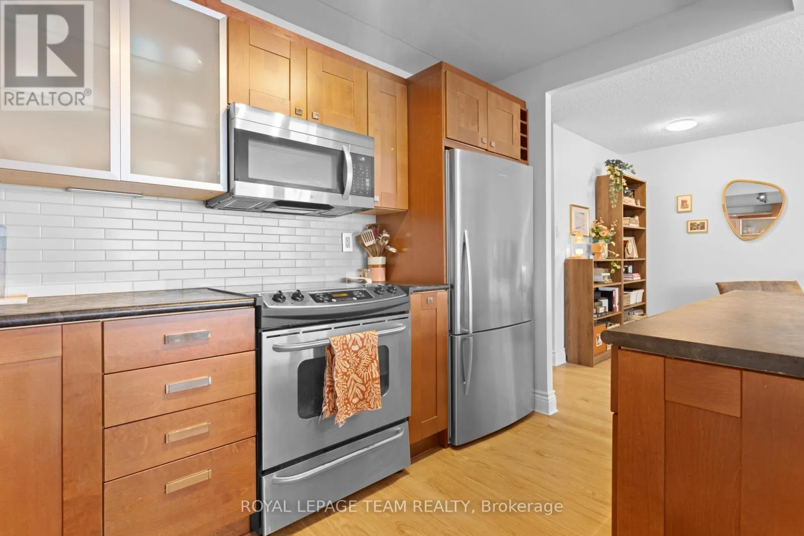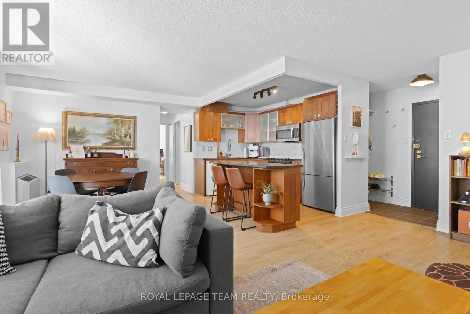 Cross Streets: Elgin and Somerset. ** Directions: Somerset W between Elgin and Cartier. Nestled between Elgin Street and the Canal, this updated 2-bedroom, 1.5-bath home offers 818 sq ft of well-designed living space in Ottawa's desirable Golden Triangle. The open-concept kitchen, living, and dining area extends to a spacious south-facing balcony, perfect for relaxing or entertaining. The kitchen features stainless steel appliances, wood cabinetry, and a functional island. The primary bedroom includes a wall of closets and a 2-piece ensuite, while the second bedroom is ideal as an office, TV room, or guest space. The full bath (updated 2016) features a tub/shower with classic subway tile. Added convenience with in-unit large storage room-and a covered ground-level parking space. Condo fees include HEAT, HYDRO, and WATER, plus access to a range of amenities: exercise room, rec room, meeting room, sauna, visitor parking, and bike storage. Steps to restaurants, shops, entertainment, and just 650m to the LRT. Freshly painted with new baseboard heaters and light fixtures (2024). Status certificate available. (id:27476)