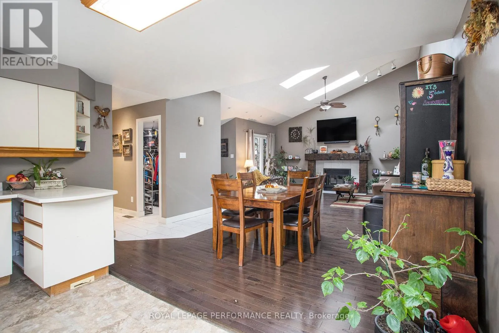 Cross Streets: Orleans Blvd. ** Directions: Orleans Blvd to Boyer Rd OR Innes Rd to Page to Meadowglen to Boyer. Welcome to this bright and sizeable bungalow located in the heart of Orleans! The main level features an inviting open-concept design with HARDWOOD flooring (2022) throughout the living and dining areas. A cozy fireplace with stylish rustic mantel (2022) and VAULTED ceilings with three skylights create a warm, sun-filled atmosphere that enhances the sense of space. The bright kitchen provides plenty of cabinetry, Pantry and direct access to the deck and beautifully landscaped backyard - a perfect place to relax or entertain. There are three bedrooms on the main floor, including a primary suite complete with a walk-in closet and a RENOVATED modern 3-piece ENSUITE (2022) featuring an oversized shower with a tasteful mosaic tile design. A second NEWLY RENOVATED CHIC 4-piece main bathroom (2025) adds convenience for family or guests. The front foyer includes ceramic tile flooring (2022), a walk-in closet, and there's a handy pantry located just off the kitchen hallway. The finished lower level extends the living space with a large recreation room featuring laminate flooring, built-in Kitchenette, and a sink/wet bar area. You'll also find three additional bedrooms, another renovated 3-piece bathroom with a shower, and a combined laundry/utility room. Outside, the home is framed by a beautiful interlock walkway (2024) and welcoming front porch. The private backyard is fully fenced and hedged, featuring a deck, gazebo, landscaped flower beds, trees, shed (2023) and a charming flagstone raised patio - ideal for outdoor enjoyment. Notable UPDATES include: a brand-new Furnace (2025), Central Air Conditioner (2025), new Windows (2025), Patio Door (2025), Front Door (2023), Roof (2013), ensuring comfort and peace of mind. Perfectly situated within walking distance to neighbourhood parks and the many amenities, shops, and restaurants along Innes Road, this home offers both comfort and convenience! (id:27476)