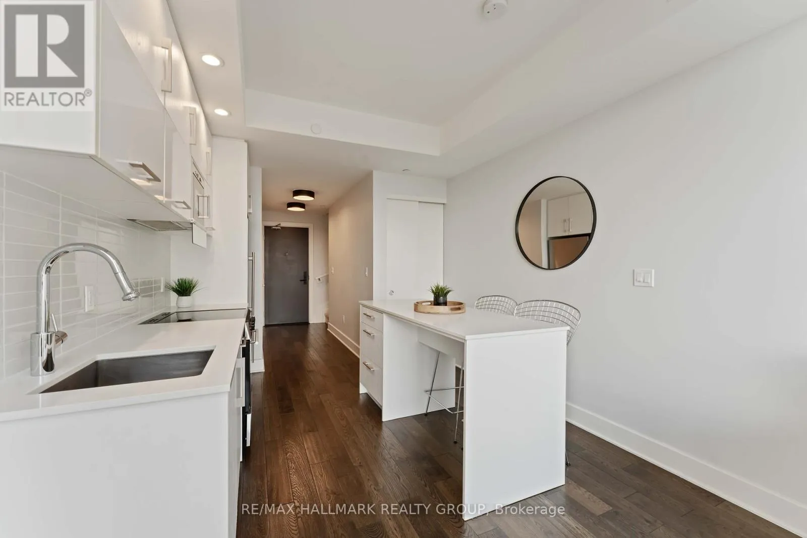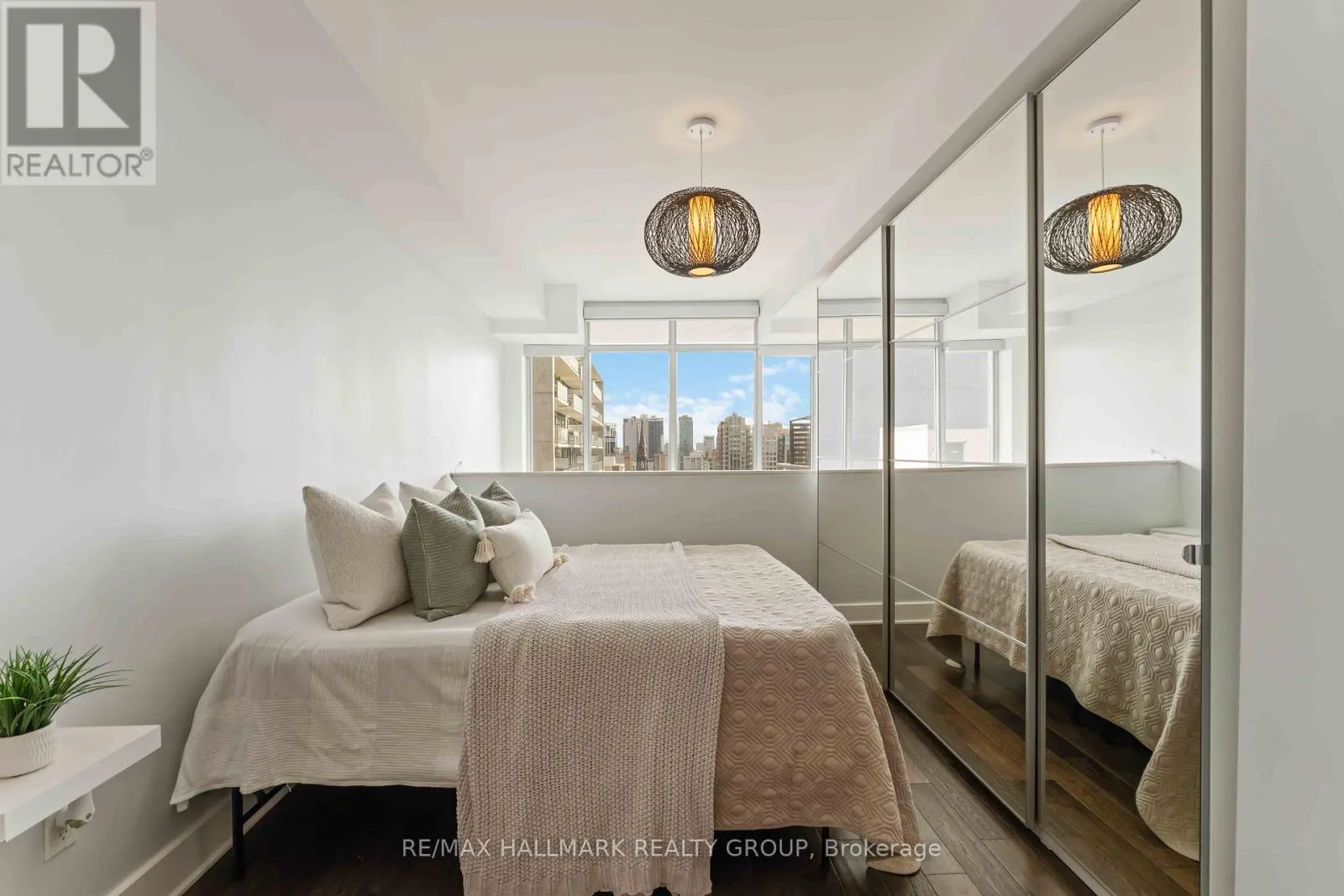 Cross Streets: Bay St and Gloucester St. ** Directions: From the 417 take the Bronson exit north, right on Cooper, left on Bay. Stylish 2-Storey Loft in The Bowery 1 Bed + 1.5 Bathrooms | Parking & Locker Included! Welcome to The L1, a rare and stunning two-storey loft-style condo in The Bowery one of Centretown Ottawas most sought-after buildings. Perched on the 12th floor, this 1-bedroom, 1.5-bath unit boasts dramatic 18-foot ceilings, massive windows, and dark hardwood floors throughout. This home features a convenient main-floor powder room, perfect for guests. The sleek kitchen offers two-tone cabinetry, white quartz countertops, stainless steel appliances, and a moveable island that doubles as a prep station and dining space for four. Upstairs, you'll find the primary suite with ensuite bath and in-unit laundry.Enjoy your morning coffee or evening wine on your private balcony elevated above the neighbouring building for enhanced views and privacy. INCLUDES PARKING AND A STORAGE UNIT, with secure underground bike storage available to all residents.Top-tier amenities on the buildings rooftop level include a fully-equipped gym, heated saltwater pool, sauna, party room (reservable), conference room, BBQs, and three patios with incredible views of downtown Ottawa.Just steps from the Lyon LRT Station, this unbeatable location puts you in the heart of the city with effortless access to transit, shops, restaurants, and more. (id:27476)