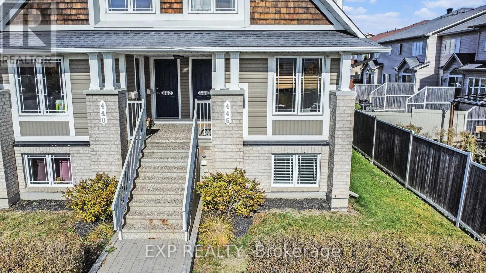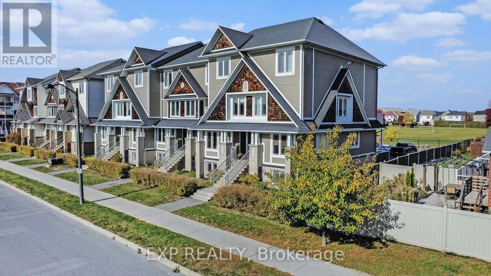 Cross Streets: Tenth Line/Harvest Valley. ** Directions: Tenth Line to Harvest Valley. Turnkey condo in the heart of Orleans! Welcome to this updated lower end unit in the popular Avalon neighbourhood. Freshly repainted throughout, this 2 bedroom, 2.5 bath condo features ensuites in both bedrooms and backs onto a school, offering privacy and a peaceful setting. The open-concept living and dining area boasts hardwood floors, a cozy gas fireplace and plenty of natural light. Step out onto your private balcony, ideal for relaxing or entertaining. The kitchen features oak cabinetry, granite countertops, tile flooring, backsplash and stainless steel appliances. The spacious primary bedroom offers updated laminate flooring and a 3 pc ensuite with a large glass walk-in shower, while the second bedroom also has its own ensuite, perfect for guests or shared living. Berber carpeting provides comfort on the stairs and in the second bedroom. Additional features include central AC and 1 assigned parking space (#155). Conveniently located within walking distance to schools, parks, and transit, and close to shopping, recreation and more. Ideal for first-time buyers, investors, or downsizers, this move-in-ready condo combines comfort, style, and a fantastic location! (id:27476)