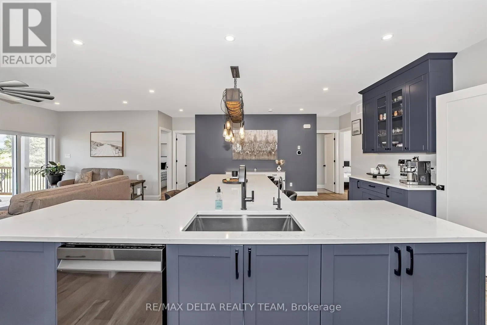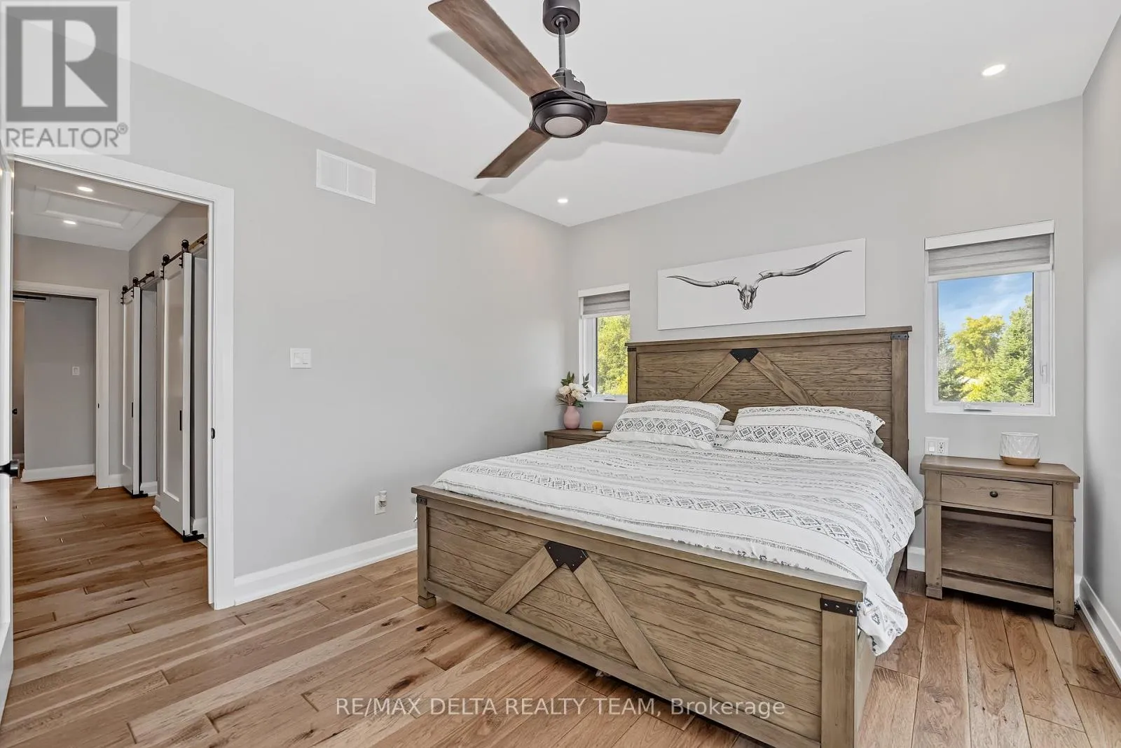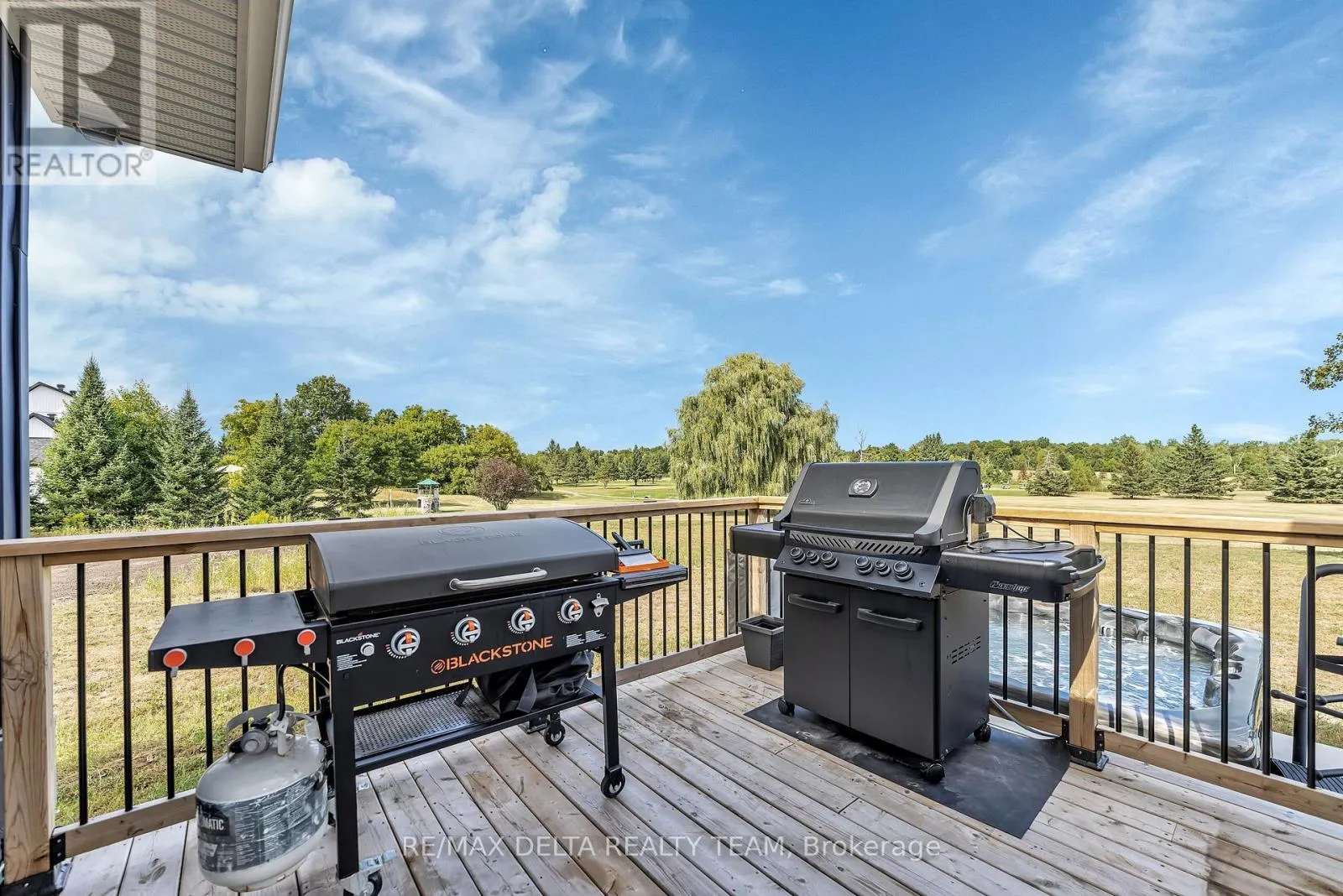 Trim Rd to Frank Kenny Rd, Left onto Colonial Rd, Right onto Rockdale Road, Left onto Golf Course Rd, Left onto McNeely. Welcome to 4645 McNeely Road a stunning 2023-built bungalow set on nearly 1.3 acres, backing onto the picturesque Bearbrook Golf Course. Tarion builder TSH Homes proudly crafted this quality-built custom home with Zip System R-Sheathing, ensuring enhanced durability and energy efficiency. This rare offering features four bedrooms on the main level, designed with both family living and modern elegance in mind. The private primary suite is thoughtfully tucked away, complete with a sunlit walk-in closet, a spa-inspired ensuite, and walkout access to a covered deck overlooking the fairway. A versatile den provides the perfect space for working from home. At the heart of the home, the chefs kitchen and great room impress with quartz countertops, a built-in wall oven, wine fridge, pot filler, and rich hand-scraped hickory hardwood floors an inviting space for gatherings and entertaining. Three additional bedrooms and a beautifully appointed main bath with designer finishes complete the main floor. The lower level, with 9-foot ceilings and a rough-in for a full apartment, offers incredible flexibility ideal for an in-law suite or income potential. With a septic system sized to accommodate both a one-bedroom apartment and a two-bedroom coach house, the property is perfectly suited for multigenerational living or future expansion. Additional highlights include a Generac outdoor gas generator for year-round peace of mind. Blending luxury, comfort, and endless possibilities, this home is truly one of a kind. 24hr Irrevocable (id:27476)