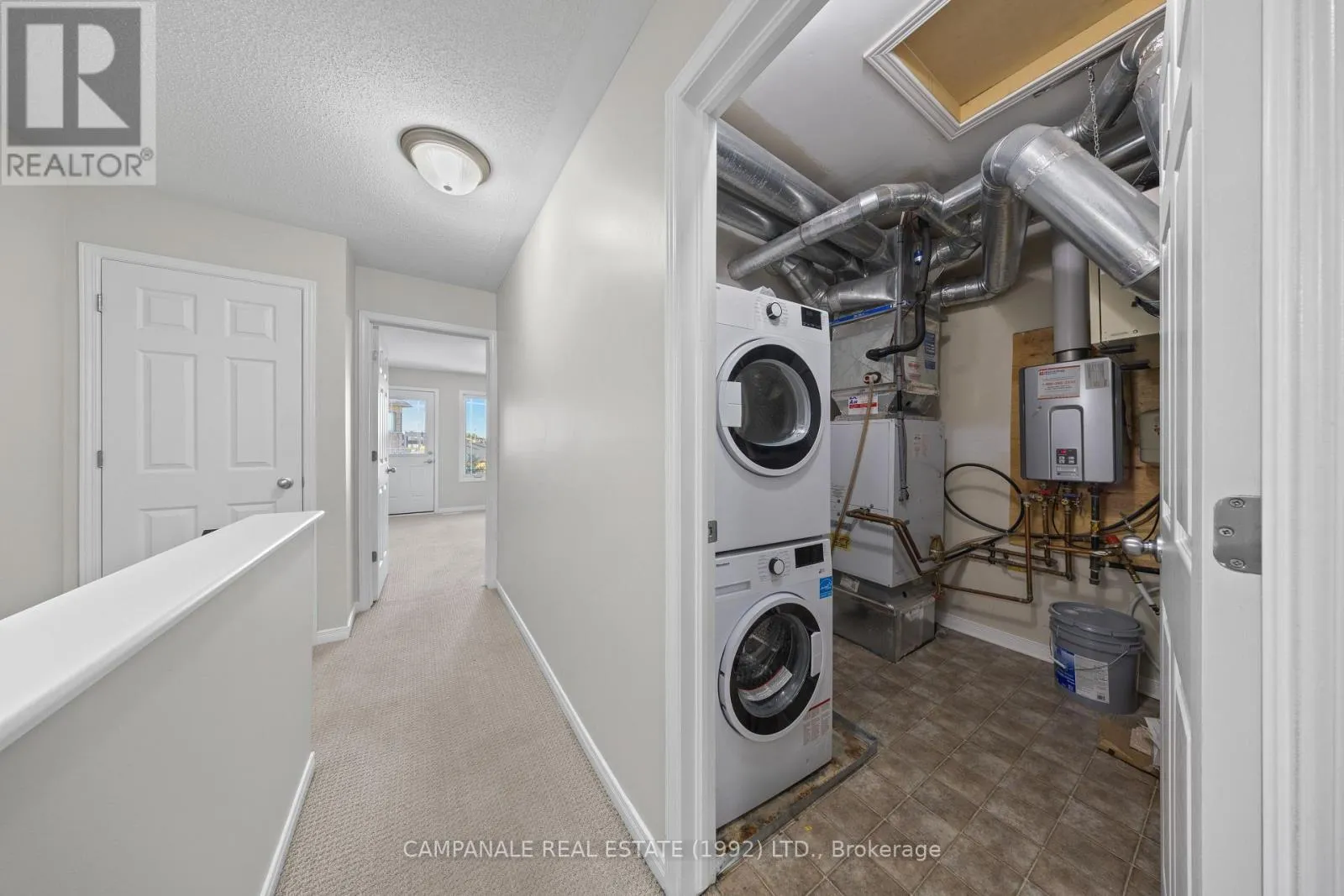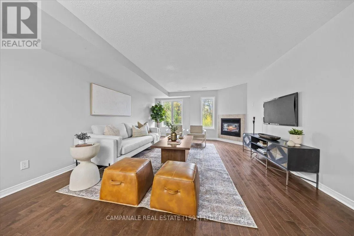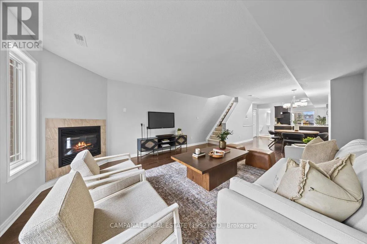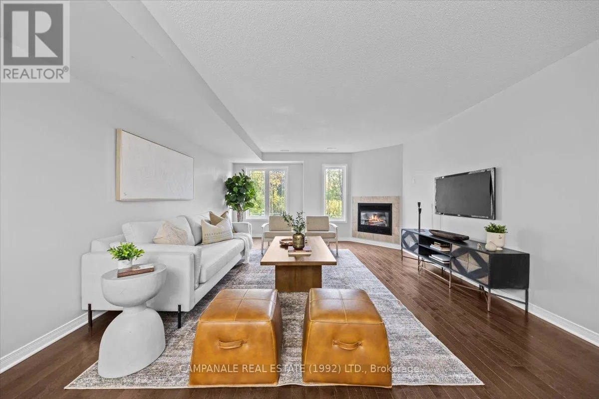 Cross Streets: Longfields Drive. ** Directions: From Hwy 416, take Exit 66 (Fallowfield Rd) east. Turn left on Woodroffe Ave, then right on Longfields Dr. Turn left on Greenbank Rd, then right on Via Amalfi St. #679 will be on the left. Looking for a spacious upper unit that truly stands out? This Energy Star-certified homes offers 1,477 sq. ft. of bright, modern living with two private balconies and two ensuite bathrooms-a rare and sought-after combination. Ideally situated across from a tranquil forested area, you'll enjoy peaceful views while being just minutes from schools, parks, shopping, and transit. The open-concept main level features a modern kitchen with stainless steel appliances, ceramic tile flooring, a stylish backsplash, pantry, breakfast bar, and plenty of cabinet space. A sunlit eating area opens to the first private balcony, perfect for morning coffee or an at-home workspace. The adjoining living and dining area is filled with natural light and showcases hardwood flooring and a cozy corner gas fireplace-ideal for entertaining or relaxing at the end of the day. Upstairs, you'll find two spacious bedrooms, each with its own 3-piece ensuite for ultimate comfort and privacy. The primary suite also includes the second private balcony, while the secondary bedroom offers a charming sitting area. A convenient laundry/storage/utility room completes the upper level. Additional features include small BBQs permitted on balconies, and a dedicated parking space. (id:27476)
