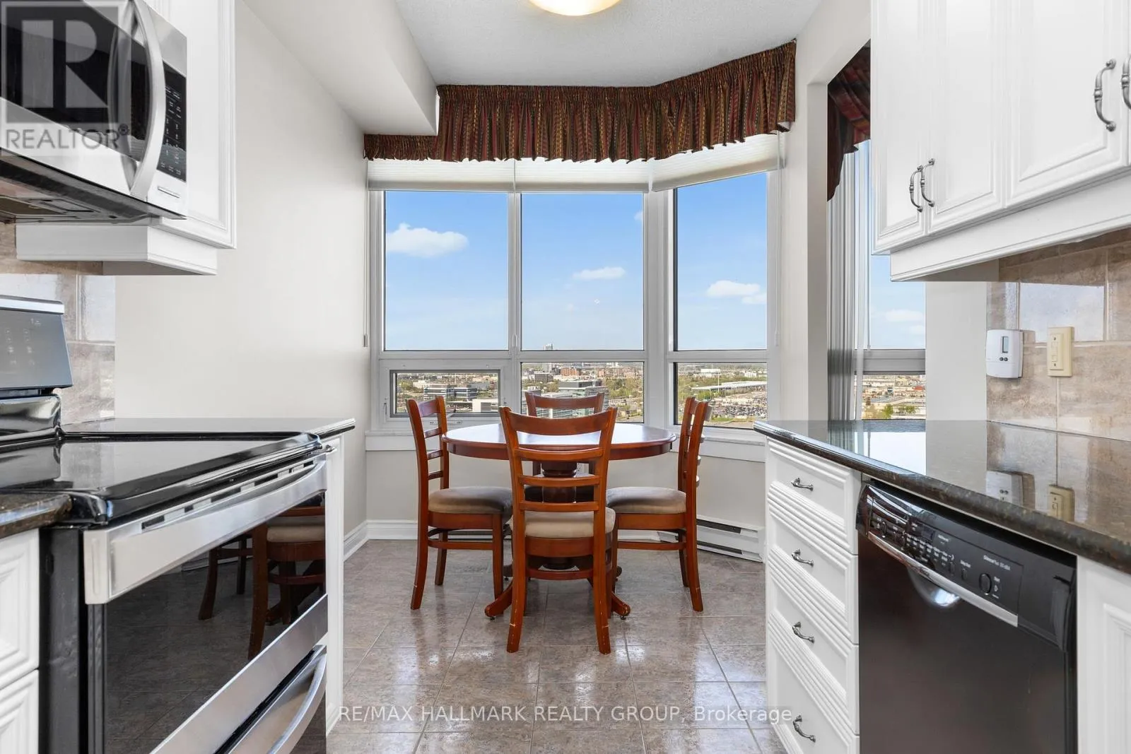 Cross Streets: Riverside Drive x San Remo Private. ** Directions: 417 to Vanier Parkway/Riverside Drive. Welcome to Unit 2403 at 1480 Riverside Drive - an expansive 2-bed, 2-bath condo with 1,488 sq. ft. in The Classics at Riviera, one of Ottawas most prestigious gated communities. This elegant residence features a grand marble foyer, formal living and dining areas flooded with natural light, and a kitchen with updated cabinets and granite countertops and a charming breakfast nook perfect for your morning coffee with the east-facing sunrise view. The oversized primary suite includes a spa-like marble ensuite with a soaker tub, separate shower, and walk-through closets. Additional highlights include a washer-dryer, full walk-in pantry, generous floor plan, and excellent in-unit storage. Unit 2403 also has underground parking near the elevators and a storage locker. Enjoy resort-style amenities including indoor/outdoor pools, a fitness centre, squash courts, tennis/pickleball courts, library, hobby rooms, BBQ patio, and 24/7 security, just steps to the LRT, hospitals, and the Rideau River trail system. (id:27476)