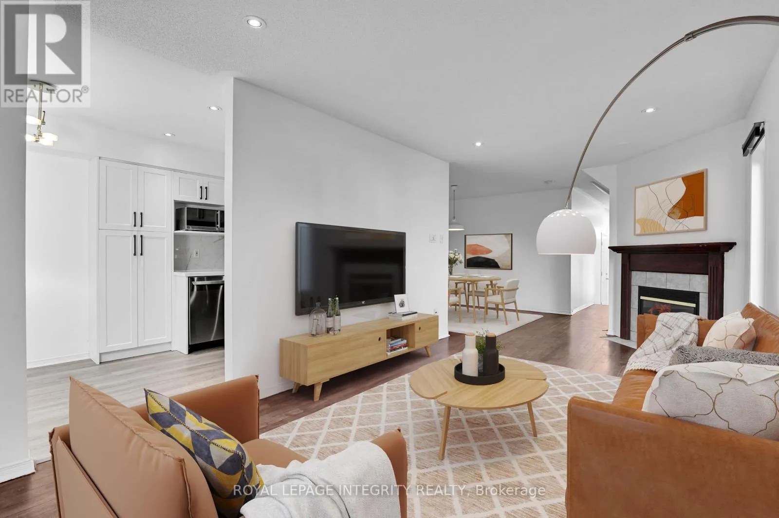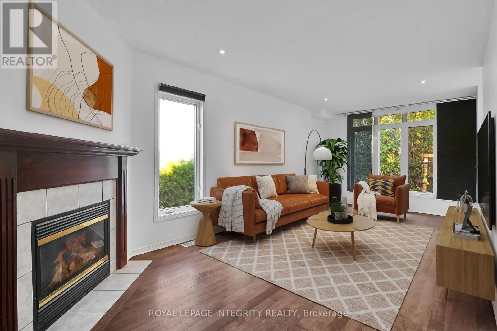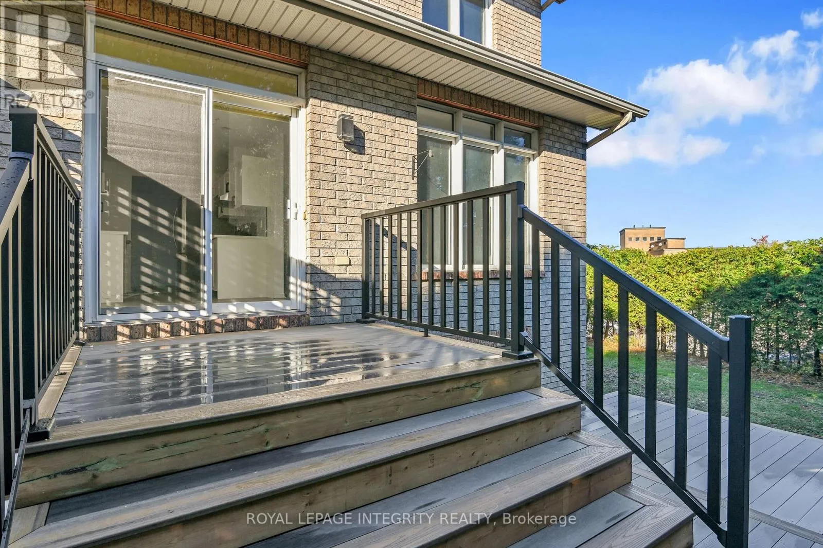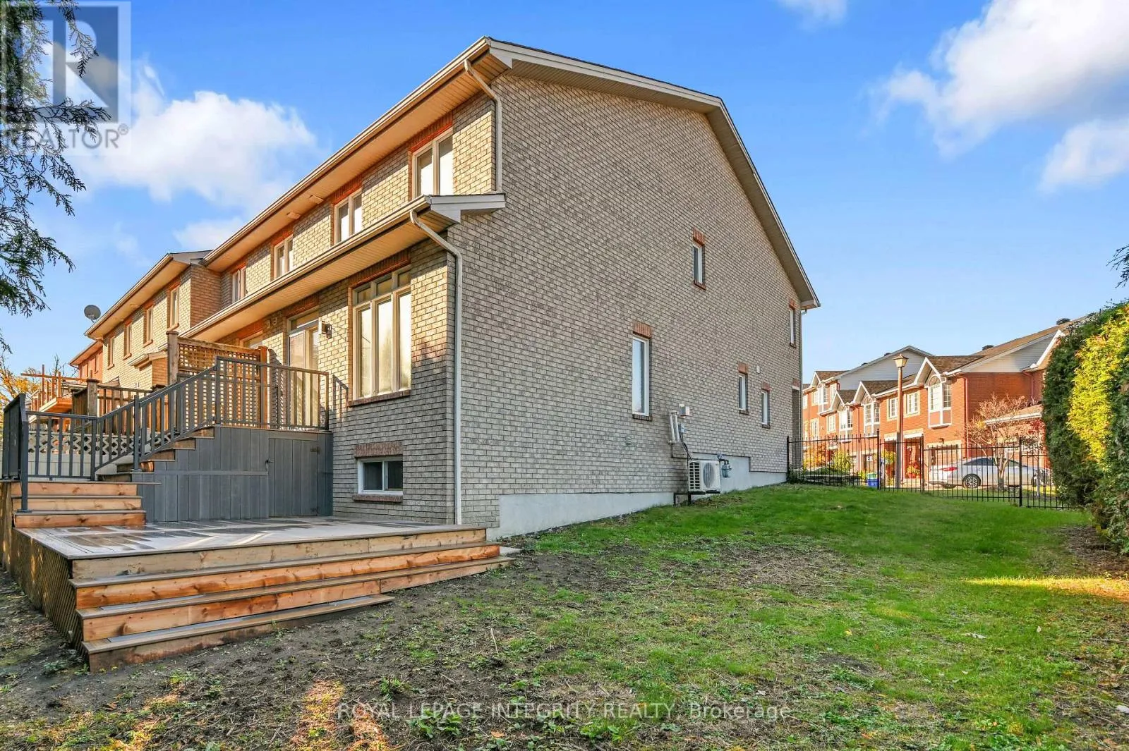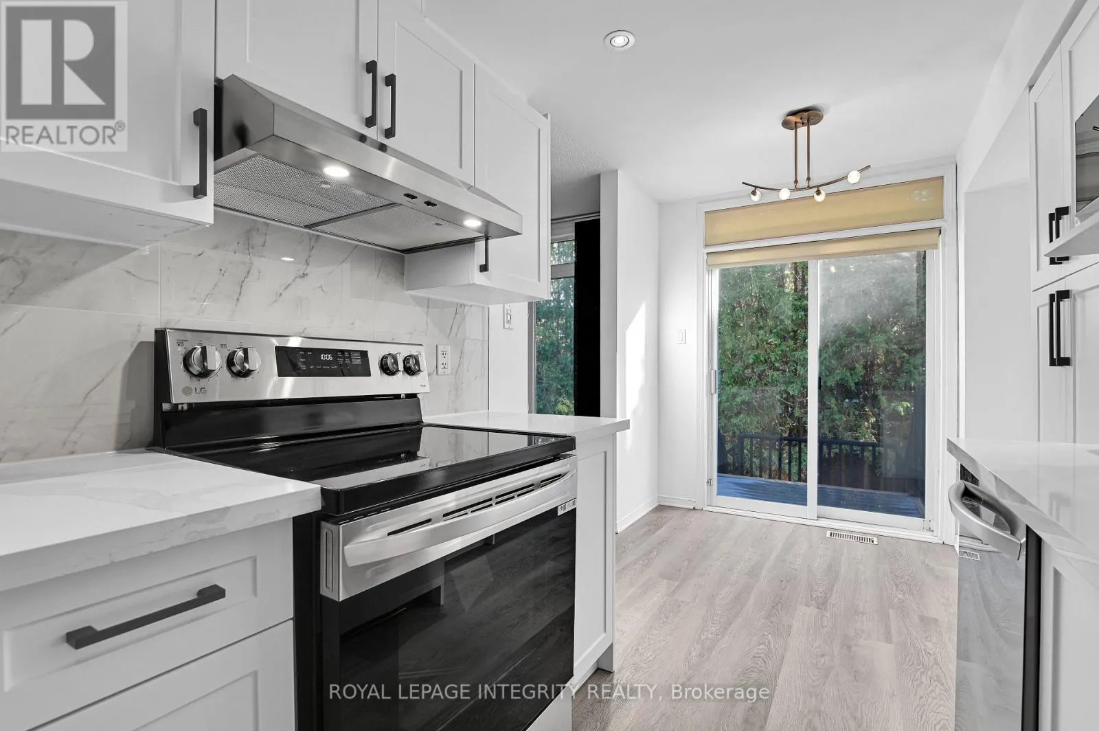 Cross Streets: SMYTH AND ALTA VISTA. ** Directions: SMYTH TO VALOUR GO NORTH TO REMEMBRANCE; GO NORTHWEST, TALL OAK ON RIGHT. Beautifully updated executive end unit townhome located steps away from CHEO and OGH. This East-West oriented large end unit has a fenced side yard and a brand new Trex deck with levels for entertaining and a large fully fenced yard for gardening, or a children's playground. The home has just been painted on all levels with neutral designer paint and professionally cleaned. A sparkling new galley kitchen features white cabinetry, quartz countertops, all new stainless steel LG appliances, pot lighting and a convenient eat-in breakfast nook with access to the new deck. A large dining room just off the kitchen is perfect for larger families or hosting dinner parties. A cozy gas fireplace in the living room adds ambiance and the large floor to ceiling windows flood the room with light. Upstairs you will find a cathedral ceilinged primary bedroom that features a huge soaker tub, new vanity with quartz countertops and ceiling lighting and a generously sized walk in closet. The main bath has been updated with bright modern vanity lighting and cabinetry with quartz countertops. Two larger sized bedrooms with generous closets completes the upper floor and are perfect for families. The lower level features a huge carpeted space with pot lighting, perfect for a gaming room; playroom, family room or a large home office. There is a 2 pc rough-in in family room. Back yard is fully fenced and has tall cedar hedges for privacy. Furnace 2024; AC 2025; new LG fridge, stove, hood fan and dishwasher 2025; garage door opener. Roof 2022. Trex deck 2025 .This home has everything you need and it is ready to move in! $100 monthly Association fee covers snow removal, common area grass cutting. Some photos have been virtually staged. Quick closing. OPEN HOUSE SUNDAY, NOVEMBER 23 , 2025, 2-4 P.M. (id:27476)