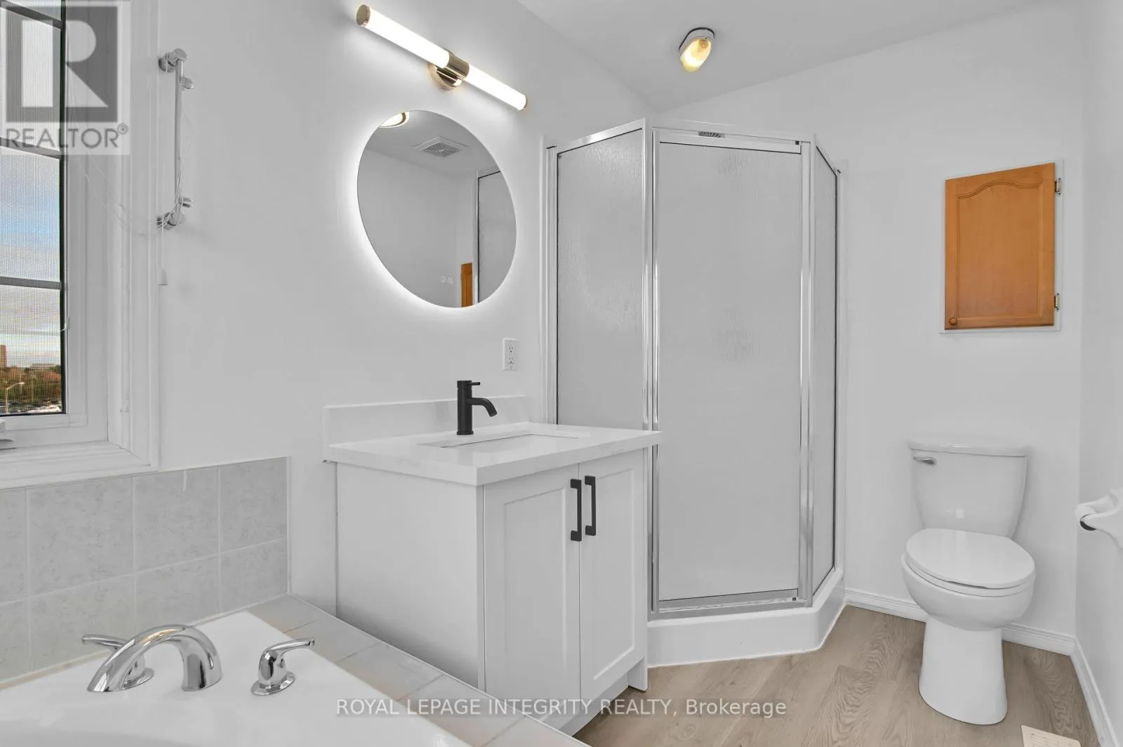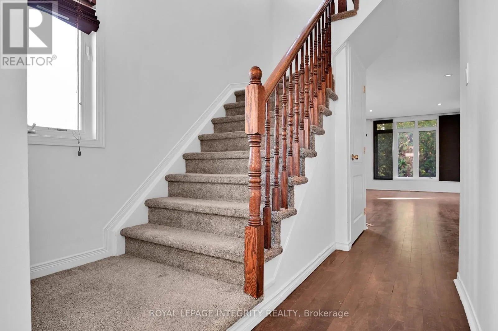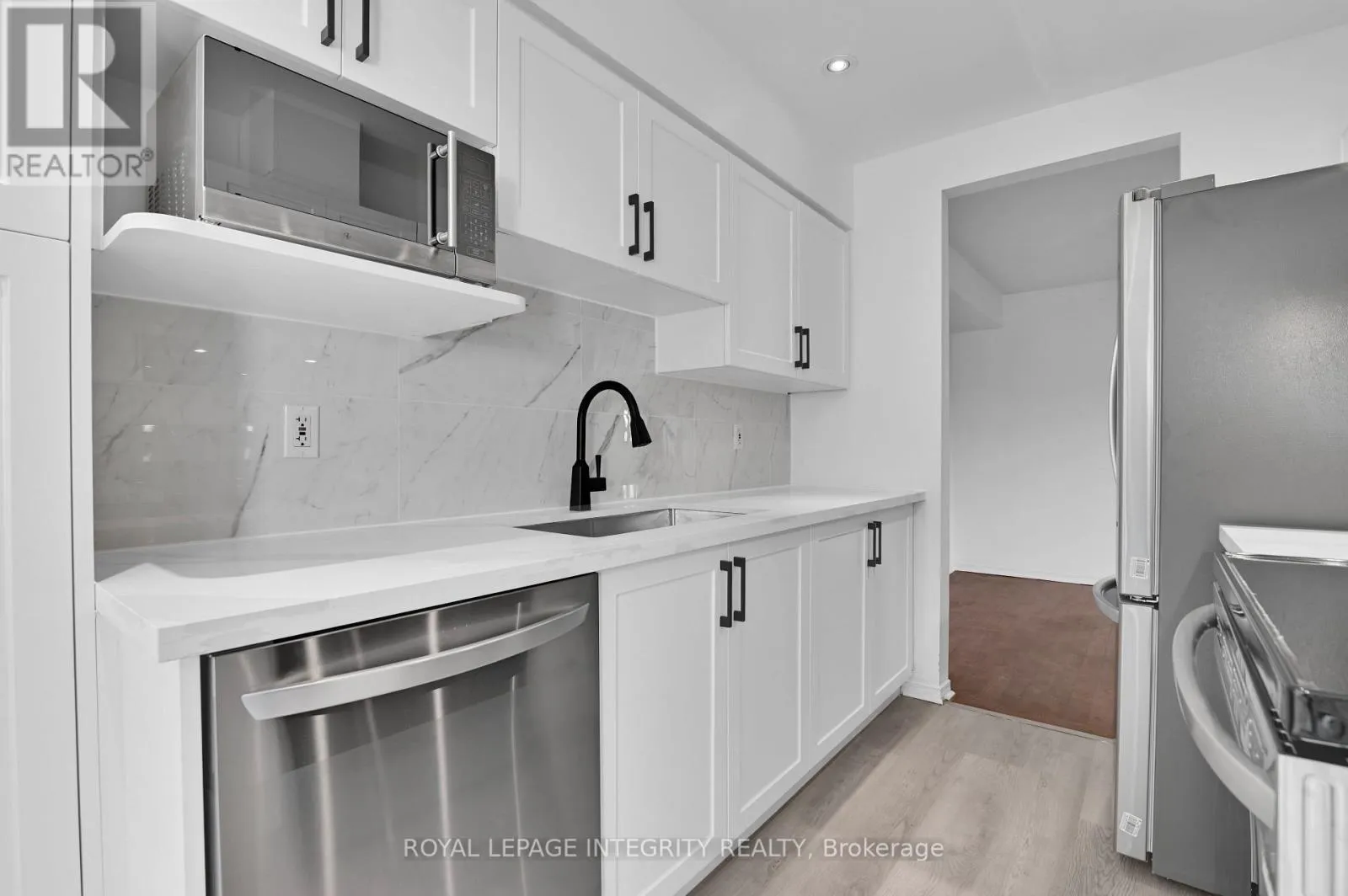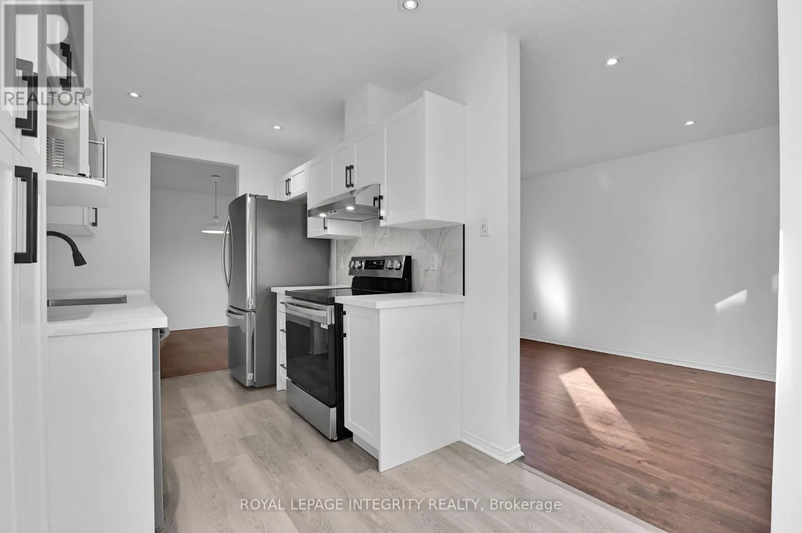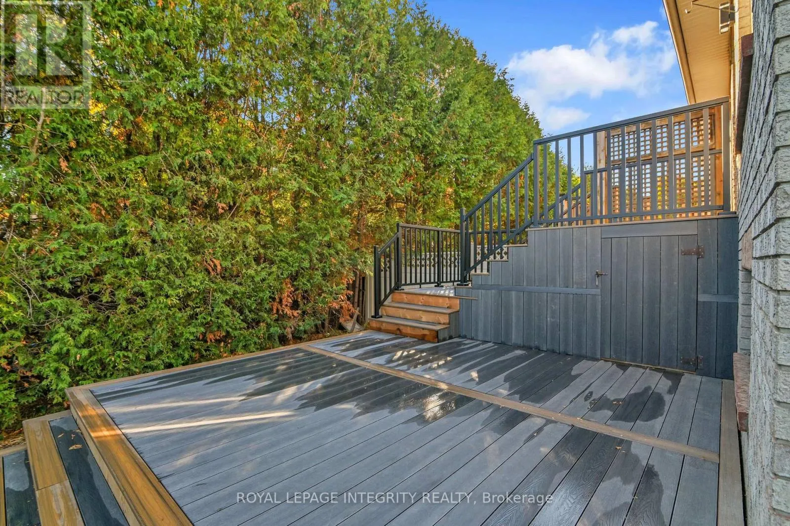 Cross Streets: SMYTH AND ALTA VISTA. ** Directions: SMYTH TO VALOUR GO NORTH TO REMEMBRANCE; GO NORTHWEST, TALL OAK ON RIGHT. Beautifully updated executive end unit townhome located steps away from CHEO and OGH. This East-West oriented large end unit has a fenced side yard and a brand new Trex deck with levels for entertaining and a large fully fenced yard for gardening, or a children's playground. The home has just been painted on all levels with neutral designer paint and professionally cleaned. A sparkling new galley kitchen features white cabinetry, quartz countertops, all new stainless steel LG appliances, pot lighting and a convenient eat-in breakfast nook with access to the new deck. A large dining room just off the kitchen is perfect for larger families or hosting dinner parties. A cozy gas fireplace in the living room adds ambiance and the large floor to ceiling windows flood the room with light. Upstairs you will find a cathedral ceilinged primary bedroom that features a huge soaker tub, new vanity with quartz countertops and ceiling lighting and a generously sized walk in closet. The main bath has been updated with bright modern vanity lighting and cabinetry with quartz countertops. Two larger sized bedrooms with generous closets completes the upper floor and are perfect for families. The lower level features a huge carpeted space with pot lighting, perfect for a gaming room; playroom, family room or a large home office. There is a 2 pc rough-in in family room. Back yard is fully fenced and has tall cedar hedges for privacy. Furnace 2024; AC 2025; new LG fridge, stove, hood fan and dishwasher 2025; garage door opener. Roof 2022. Trex deck 2025 .This home has everything you need and it is ready to move in! $100 monthly Association fee covers snow removal, common area grass cutting. Some photos have been virtually staged. Quick closing. OPEN HOUSE SUNDAY, NOVEMBER 23 , 2025, 2-4 P.M. (id:27476)
