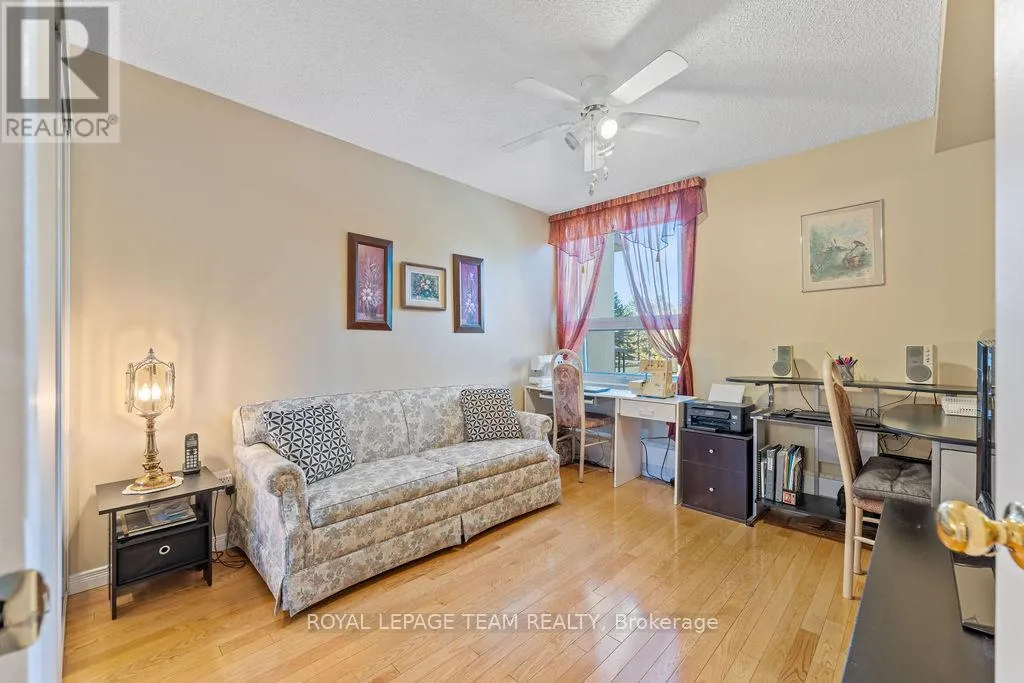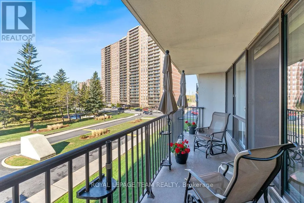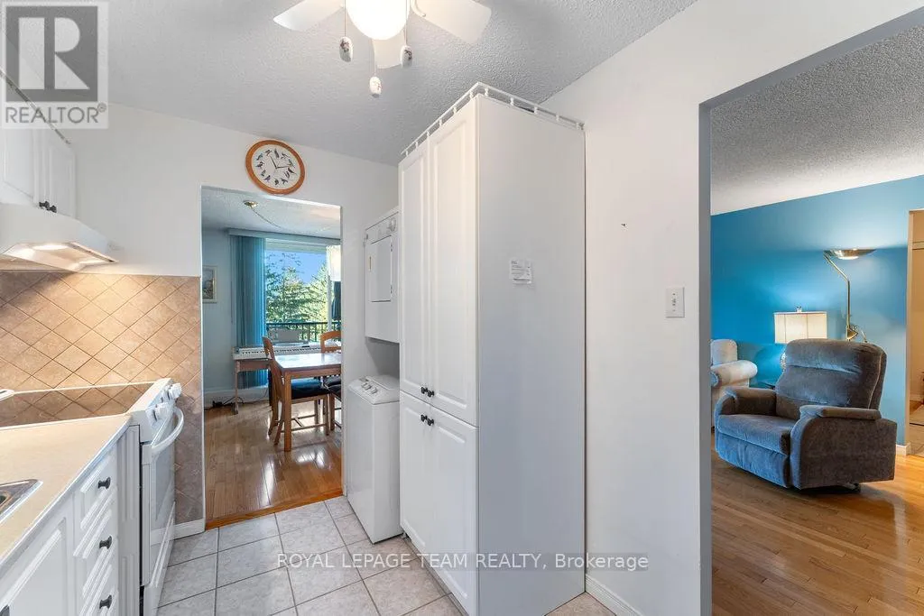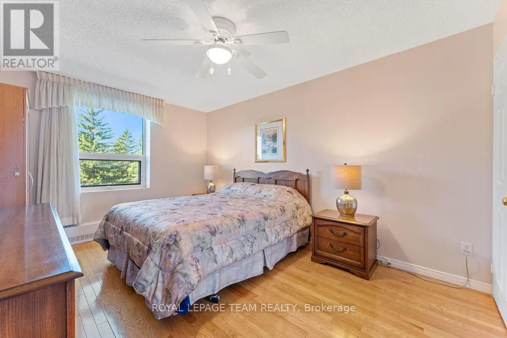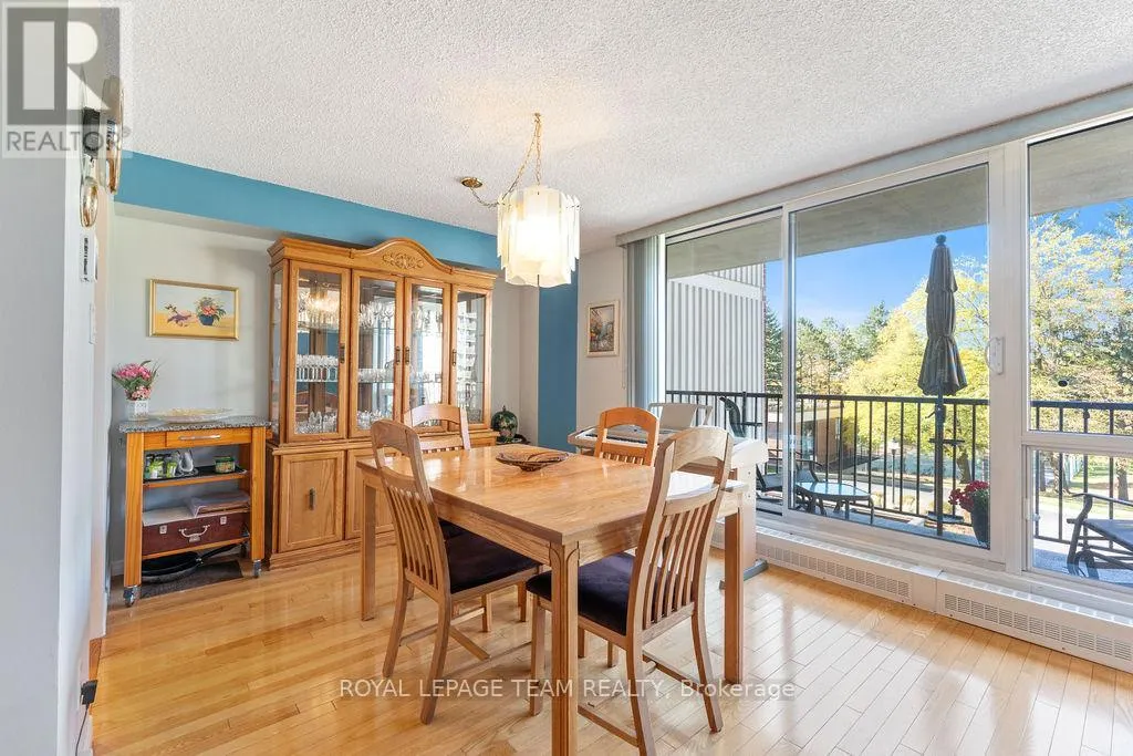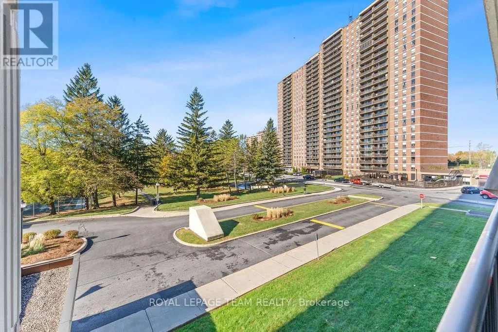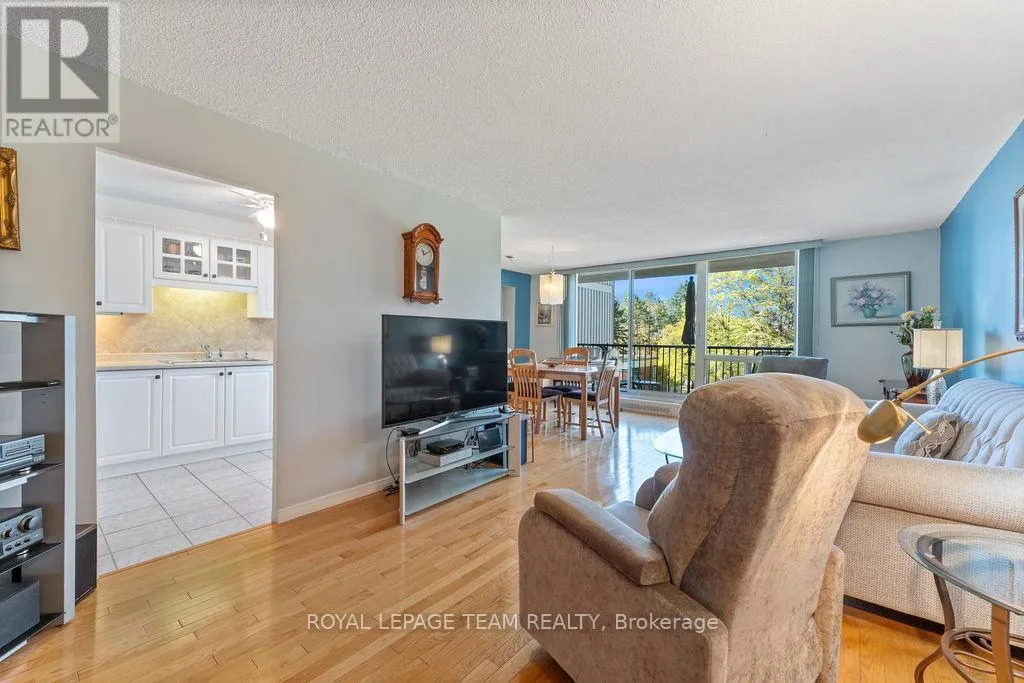 Cross Streets: Montreal Road. ** Directions: Montreal Road to Bathgate Drive. Welcome to Las Brisas, a highly sought-after condominium community offering comfort and convenience. This bright and spacious 2-bedroom suite boasts a functional layout with large, L-shaped living and dining areas, perfect for entertaining or relaxing. Sunlight pours in through generous windows, highlighting the hardwood and tile flooring throughout. The updated kitchen and full bathroom offer modern convenience, while the oversized balcony overlooking a serene treed area provides an ideal spot for your morning coffee or evening unwind. Additional features include in-unit storage room and assigned parking, ensuring both comfort and practicality in this move-in-ready home. Building amenities include an impressive range of amenities designed for an active and social lifestyle - indoor pool, fitness centre, party room, storage lockers, common laundry facilities, 3 convenient elevators, plus ample visitor parking for guests. Ideally located near parks, schools, shopping, public transit, NRC, CMHC, CSIS-CSEC, Montfort Hospital, this suite is perfect for first-time buyers, empty nesters-downsizers or investors seeking a move-in-ready home in a desirable community. (id:27476)