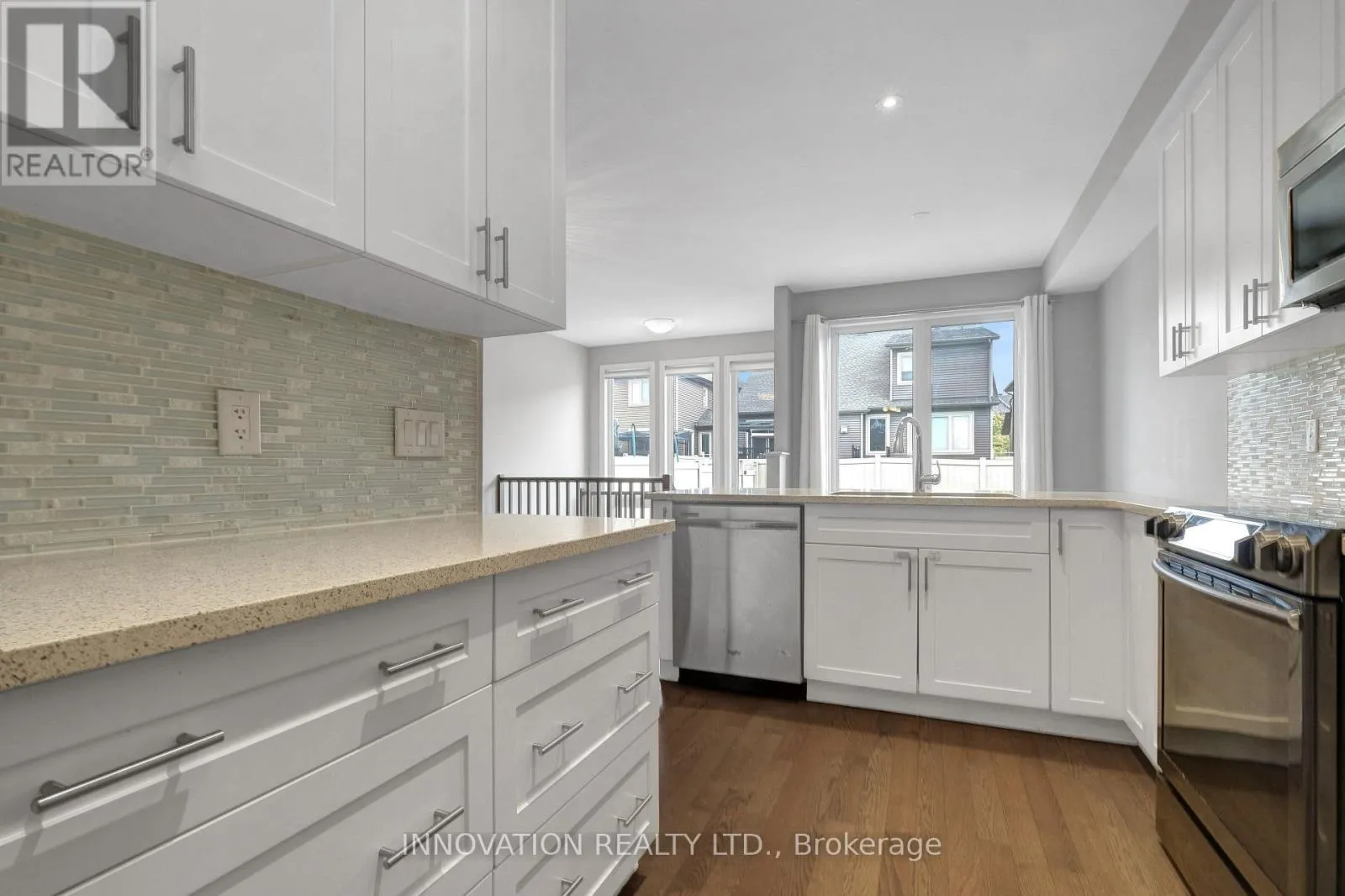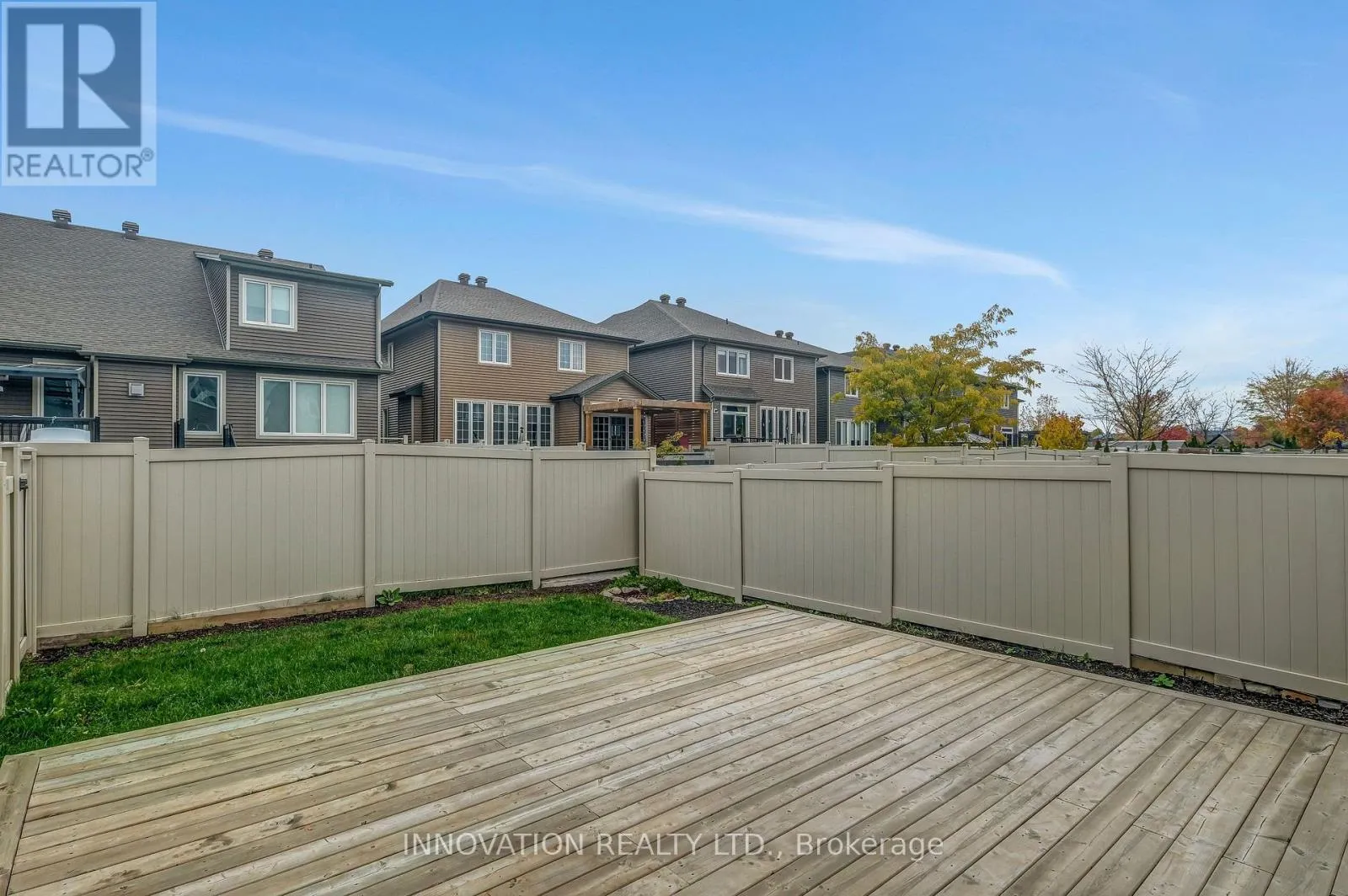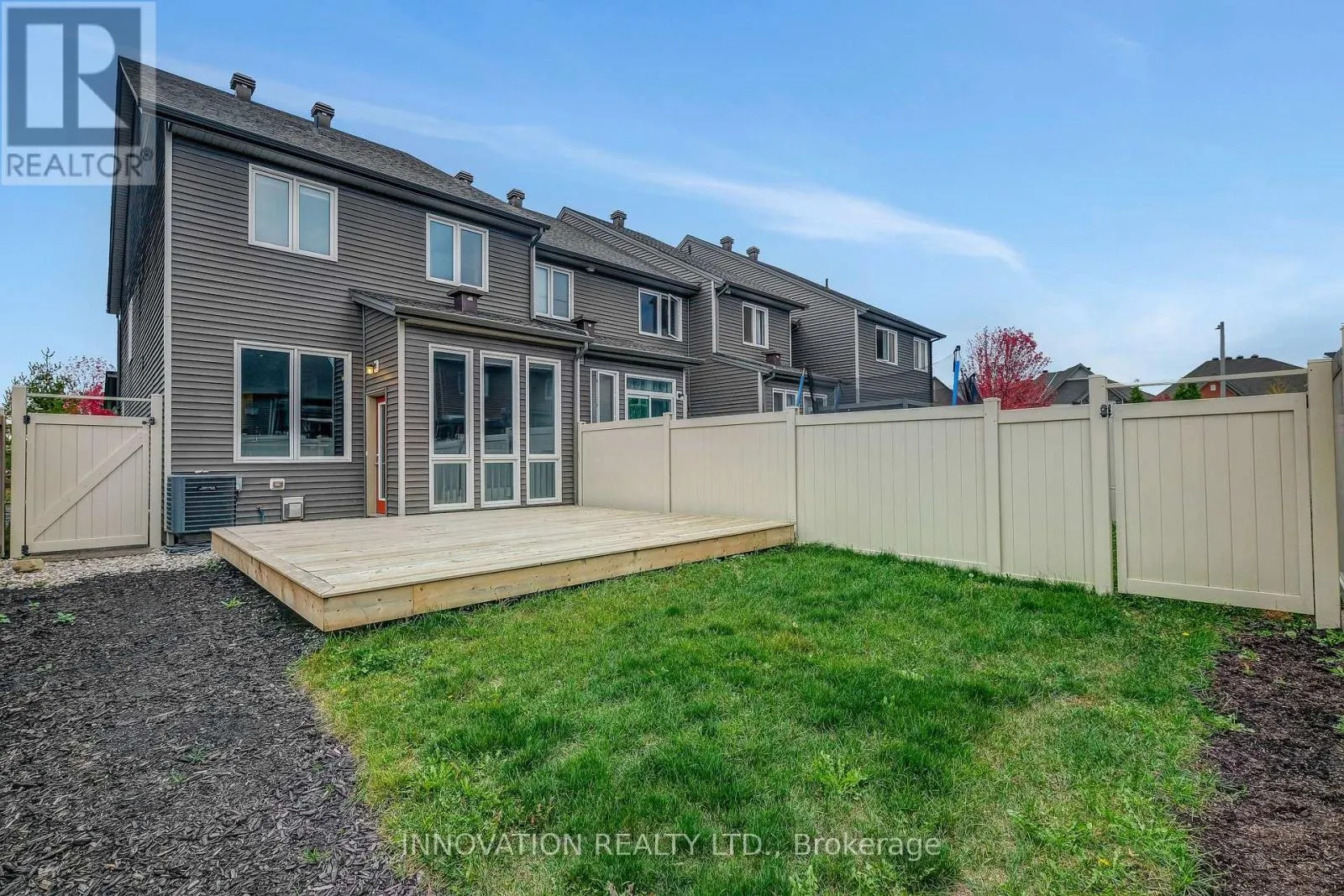 Cross Streets: Fallowfield Road & Cobble Hill Drive. ** Directions: Fallowfield Road, South on Cobble Hill Drive, Left onto Fergus Crescent. Absolutely stunning! 3 Bedrooms, 3 Bathrooms End unit townhouse, ideally located in Barhaven, close to Costco Shopping Centre, & HWY 416. Features welcoming floor plan, gleaming Hardwood floors in main floor, gourmet kitchen with upgraded cabinets, quartz countertops & S/S appliances, patio door leads to a fenced private backyard with large deck, professionally finished huge family room with Gas Fireplace in lower level, fabulous Master Bedroom with a beautiful 4 pce en suite, good size secondary bedrooms with a full bathroom. Extended driveway with nice interlock, vacant easy to show. (id:27476)