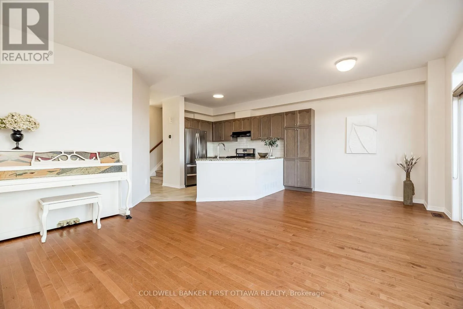 Cross Streets: Eagleson Rd & Radiant Pvt. ** Directions: Take Hope Side Rd to Eagleson Rd. Go north on Eagleson Rd to Radiant Pvt. 3 bedroom, 2.5-bathroom townhouse backs onto scenic nature trails and pathways, offering privacy and peaceful views. Built in 2017 by Glenview Homes, this residence boasts 9-foot ceilings on the main level, gleaming hardwood floors, and an open-concept floor plan. The kitchen features stainless steel appliances, quartz counters, a stylish backsplash, ample counter space, and beautiful wood cabinetry. Step through the patio doors to your private backyard. Upstairs leads to three generously sized bedrooms and a spacious main bathroom. The primary bedroom includes a walk-in closet and a private 3-piece ensuite. The fully finished basement provides a large recreation space and a convenient laundry area. A front porch, private driveway, and attached garage complete this home. Located on a quiet street and just minutes from parks, schools, shopping, and restaurants, this is a home you don't want to miss. Pride of ownership is evident throughout. Flexible occupancy available! (id:27476)