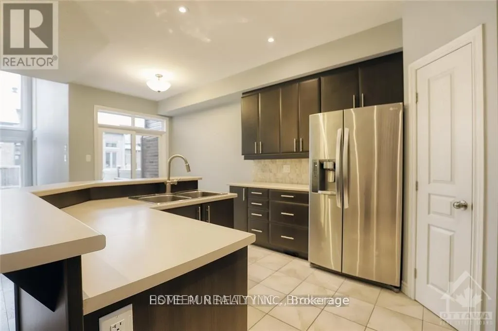 Take Limebank Rd south, turn left on Spratt, right on Boothfield, right on Cooks Mill - house is on the left Bright and Inviting END-UNIT townhome awaits your discerning taste in a popular family-friendly neighbourhood of river side south. This freshly painted, elegant and sophisticated property features TWO-STORIES CEILINGS in the living room, picture windows, gas fireplace and finished basement. You will be impressed by the hardwood throughout the main floor. The open concept dining room and kitchen with stainless steel appliances/pantry room when you enter the door. Beautiful staircase leads to the second level complete with a huge master bedroom and WIC and 4pcs ensuite bathroom, 2 spacious bedrooms and a full bath and convenient laundry as well. Walking distance to shopping and St. Francis Xavier School. Only a few minutes walk to the BEAUTIFUL NEIGHBOURHOOD PARK! In close proximity to LRT stations! (id:27476)