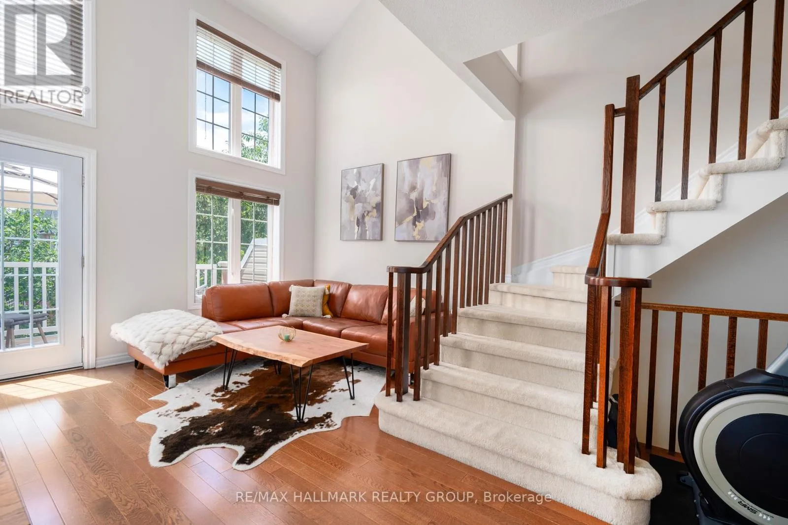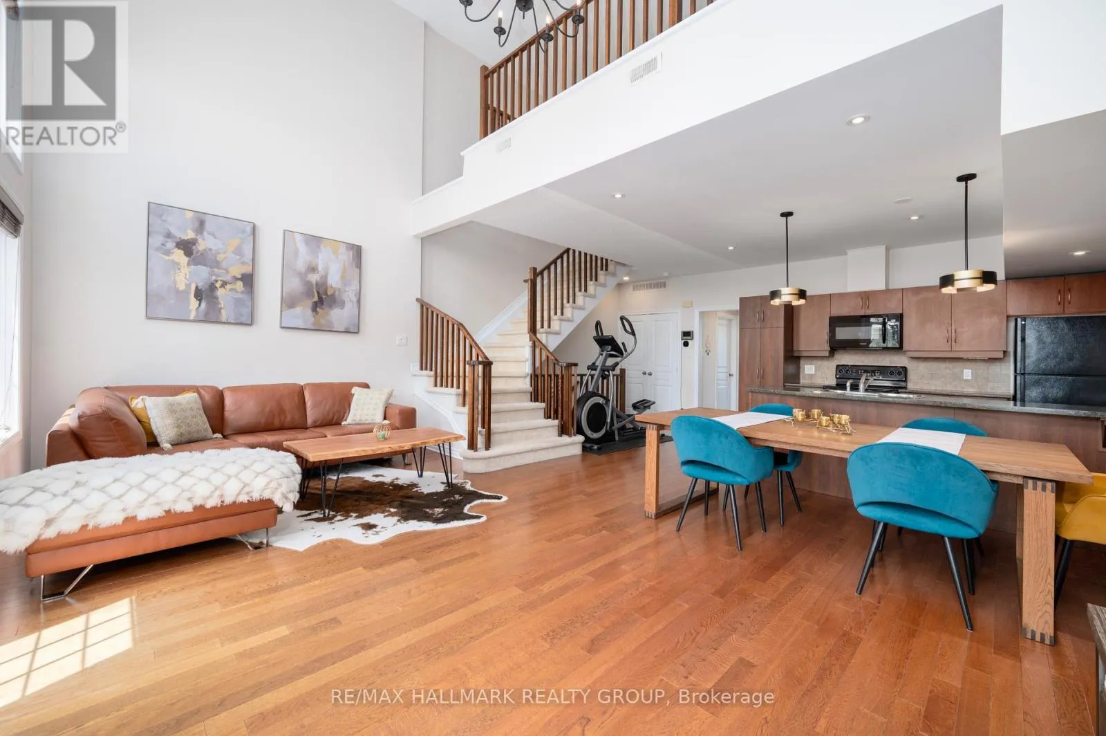 Cross Streets: Campeau Drive & Hawkstone Gate. ** Directions: 417W to Campeau Drive, left on Hawkstone Gate. Step into stylish, turnkey living with this stunning 2-bedroom + loft, 2-bathroom upper-level home. One of the largest and most desirable floorplans in the community. Nestled in the heart of Village Green, this exquisite Urbandale Harmony model seamlessly blends comfort, elegance, and modern convenience. From the moment you enter, a private staircase welcomes you, soaring cathedral ceilings, expansive two-storey windows and an open-concept living/dining area drenched in natural sunlight. The sleek hardwood floors, gourmet kitchen with extended peninsula and abundant cabinetry make entertaining a dream. The main level features a bright and spacious second bedroom with access to a full bath and laundry, ideal for guests or a home office. Upstairs, retreat to the oversized primary suite, complete with its own private balcony, walk-in closet and the second bathroom. Need more space? The sunlit southwest-facing loft offers the perfect spot for a home office, reading nook or cozy movie-night spot. Additional highlights include 2 private balconies, indoor garage access, mudroom with extra storage, and a location that simply cant be beat; just a 2-minute walk to Earl Of March Secondary School, Billy Bishop Park and the Public Library. A short distance to top-rated schools, shopping, restaurants, parks, trails, public transit, and Hwy 417.Whether you're downsizing or just starting out, this home offers the perfect blend of style, space, and location. Don't miss your chance to own this rare gem, book your showing today! (id:27476)
