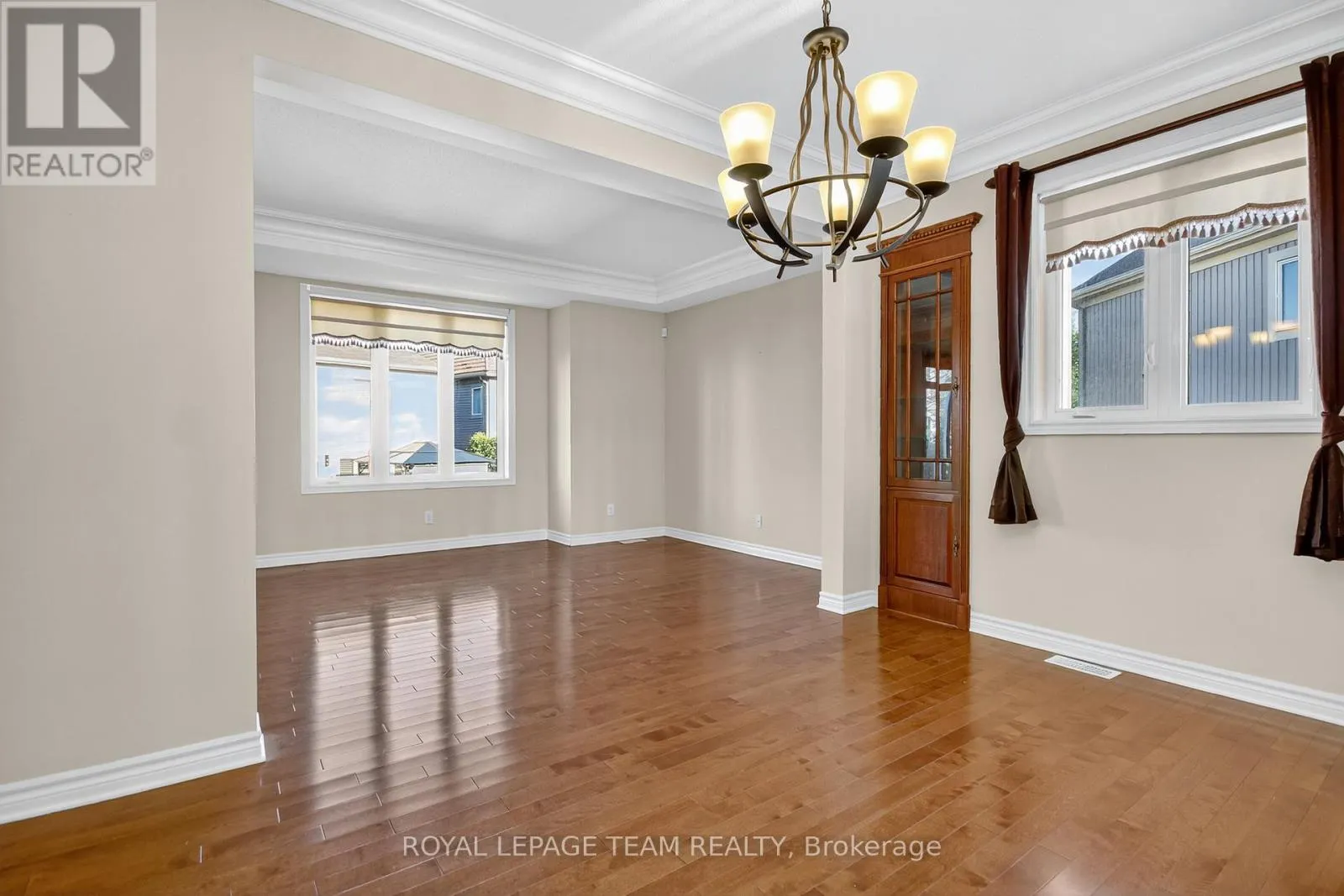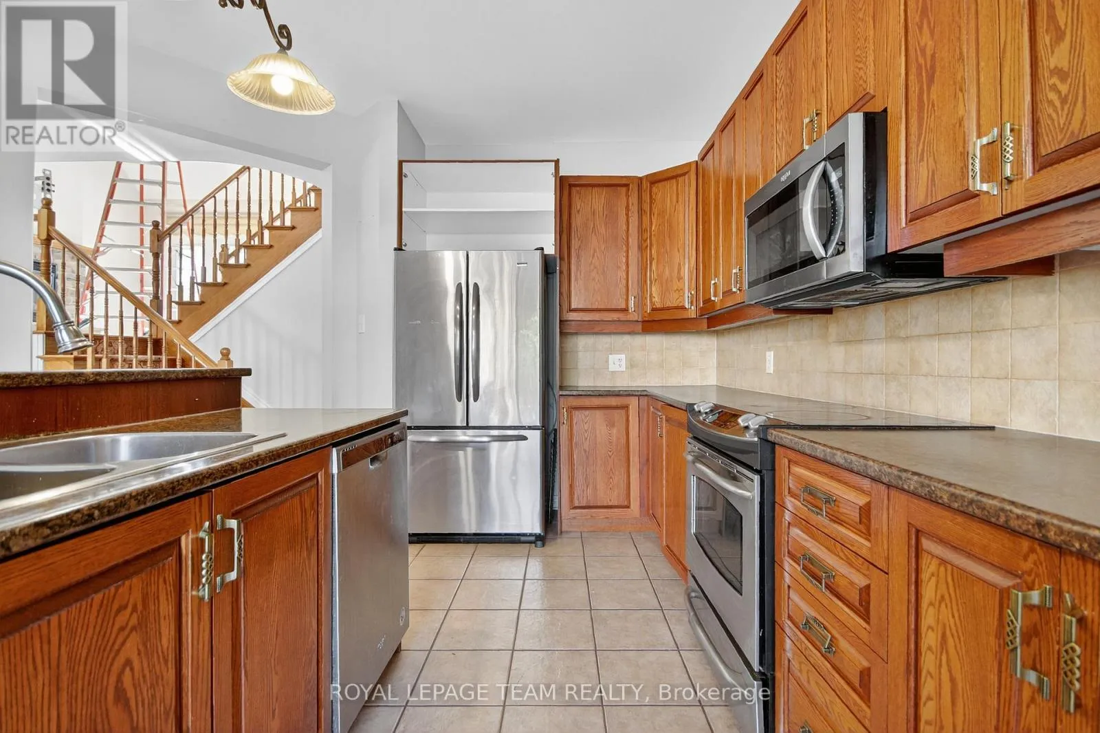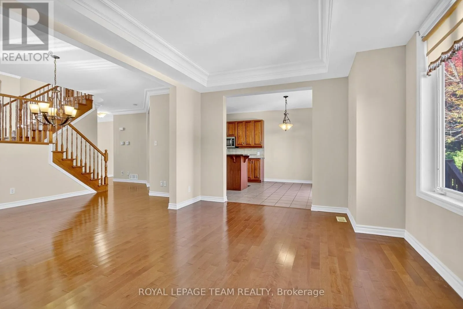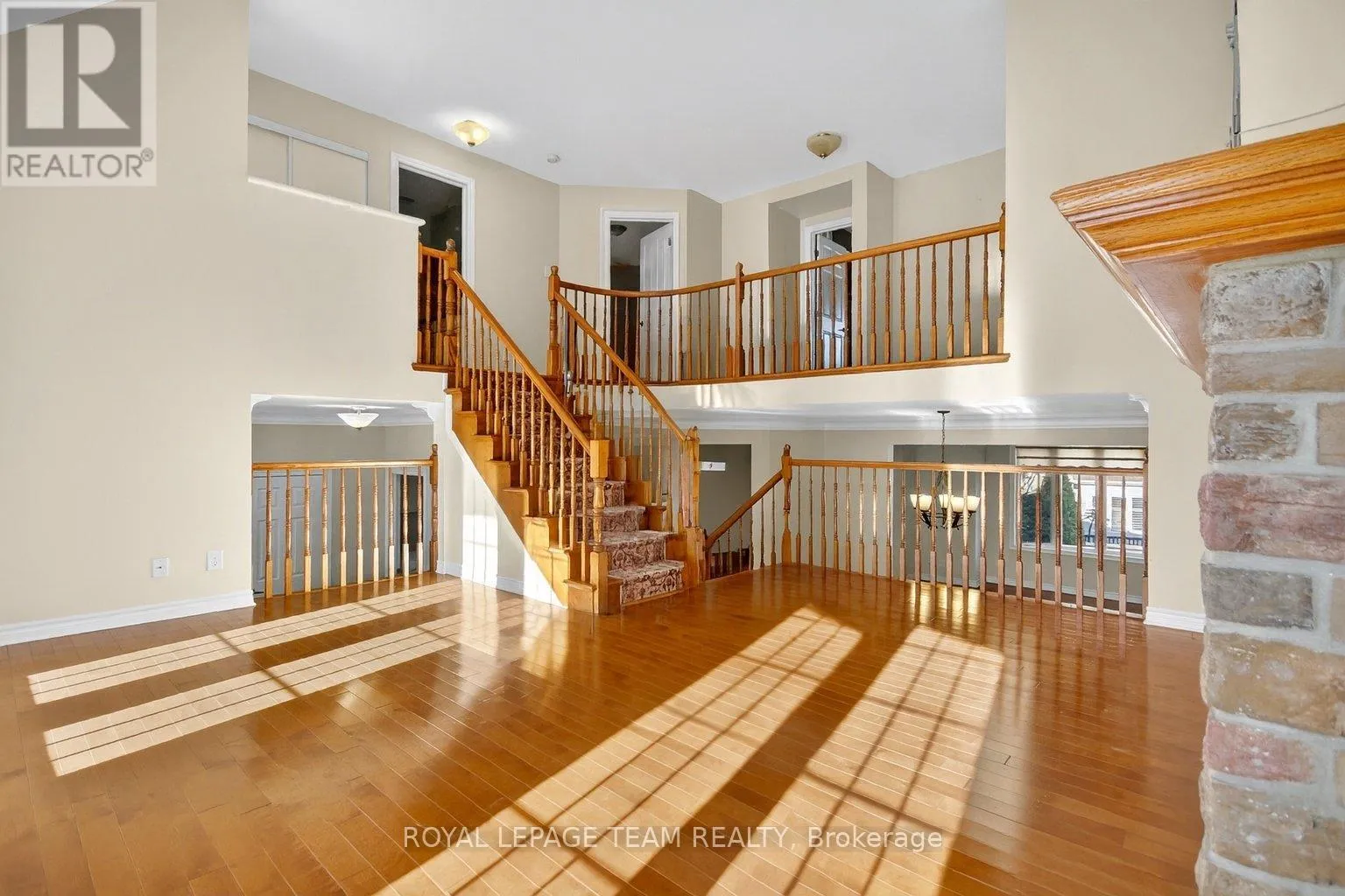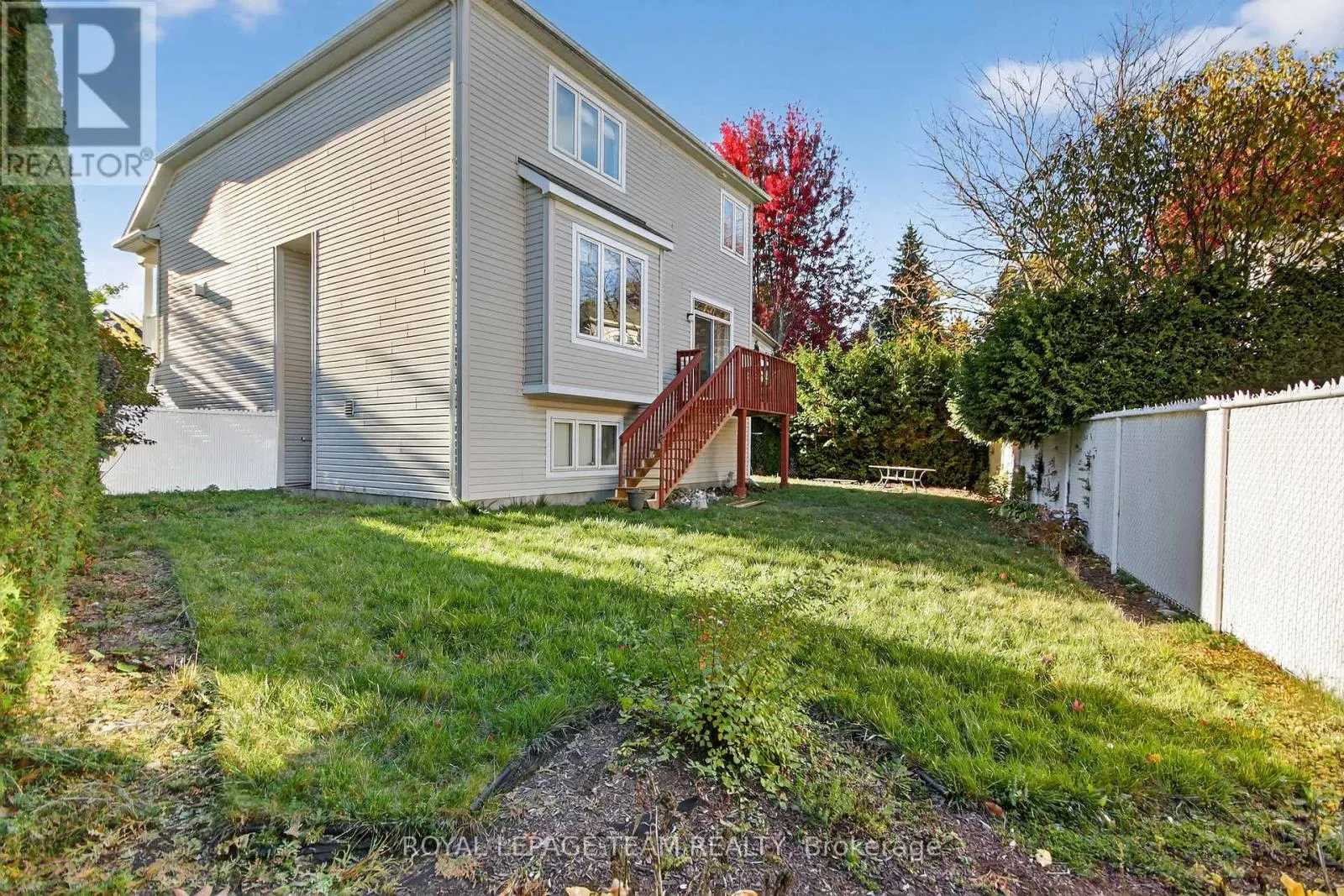 Cross Streets: Terry Fox Dr. and Maple Grove Rd. ** Directions: From Terry Fox Drive, turn right onto Maple Grove Road, then left onto Huntmar Road, and finally left onto Kohilo Crescent. Discover this beautifully designed 3+ bedroom, 2.5-bathroom home for rent in the highly sought-after Fairwinds community of Kanata, perfectly situated on a quiet crescent just steps from a public park. The home features a formal living room with gleaming hardwood floors and elegant crown moulding, leading to an adjacent dining room ideal for entertaining. The bright, eat-in kitchen is a chef's delight with solid oak cabinets, a central island with a breakfast bar, a sunny eating area, and tile flooring. The spacious great room offers a gas fireplace, vaulted ceilings, hardwood floors, and access to the balcony, creating a warm and inviting space for family gatherings. Upstairs, the generous master bedroom boasts two walk-in closets and an upgraded ensuite, accompanied by two additional bedrooms and a full bathroom. The finished lower level adds versatility with a recreation room, an additional bedroom, and extra living space, perfect for guests, home offices, or play areas. Outside, the fully fenced, landscaped, pie-shaped backyard provides privacy and plenty of room for relaxation or entertaining. With its ideal location near parks, schools, and amenities, this well-maintained home combines style, space, and convenience, offering an exceptional living experience for families or professionals alike. (id:27476)