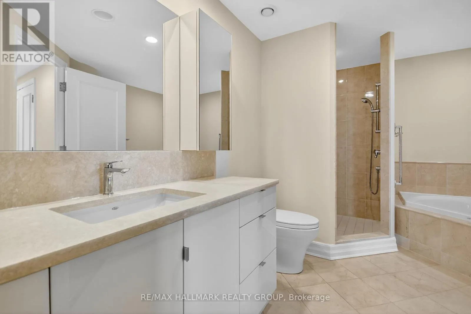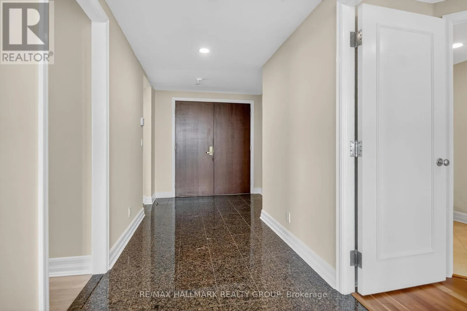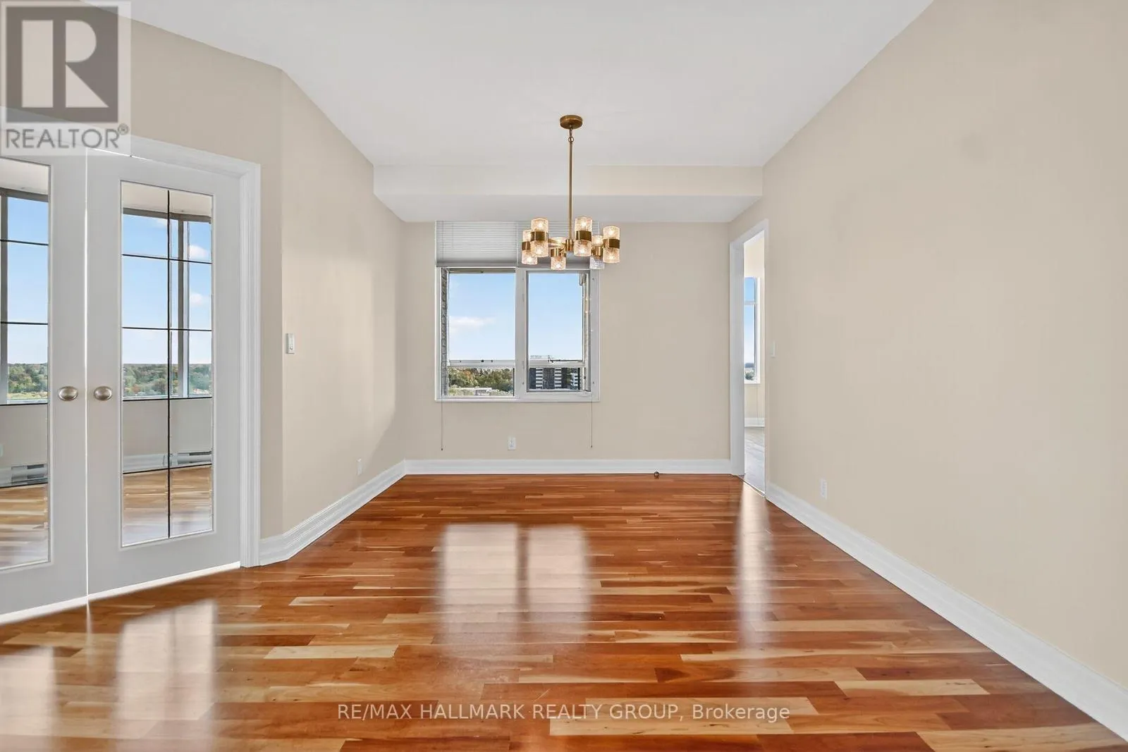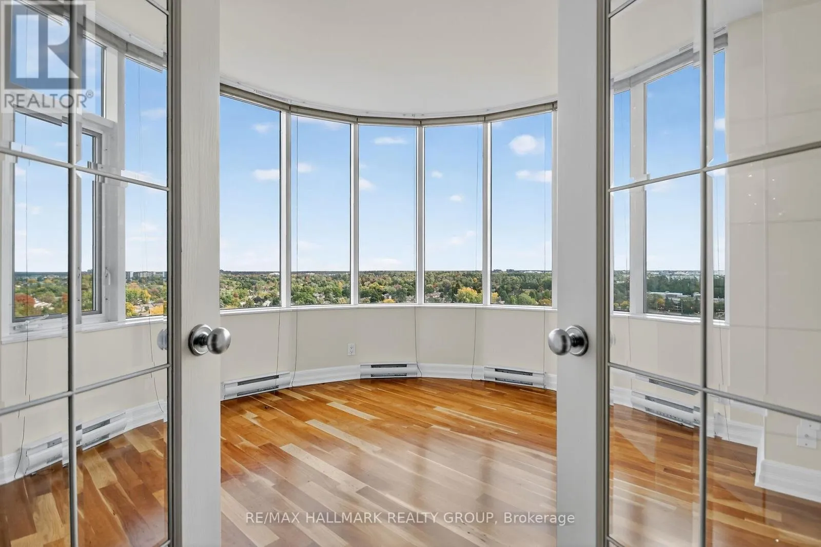 Cross Streets: Riverside/Rivergate. ** Directions: Riverside Drive south to Rivergate Way. Welcome to an extraordinary resort style setting along the picturesque Rideau River in one of Ottawa's most prestigious gated communities. This impressive 1836 square foot corner residence offers two bedrooms plus a spacious den and two and half bathrooms. Fabulous open concept living and dining rooms and adjacent study with expansive wall to wall windows showcasing amazing cityscape views. Beautifully renovated chef's kitchen featuring expanded cabinetry, quartz countertops, ceramic backsplash, built in wine fridge and bright eat in area with access to a spacious glass enclosed balcony. Primary bedroom suite includes a walk in closet with built in custom cabinets and a spa inspired ensuite with walk in shower and a deep soaker tub. The spacious second bedroom is thoughtfully positioned on the opposite side of the apartment and is complete with its own private ensuite bathroom. Breathtaking panoramic views from every room with amazing RIVER VIEWS from the kitchen, second bedroom and balcony. High ceilings and rich hardwood flooring enhance the sophisticated appeal throughout. Amenities include indoor pool, tennis courts, pickle ball courts, exercise center, guest suites, concierge services and 24/7 gate house security. Underground parking and two storage lockers. (id:27476)