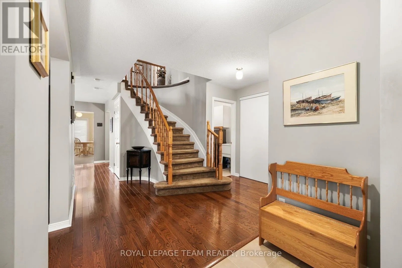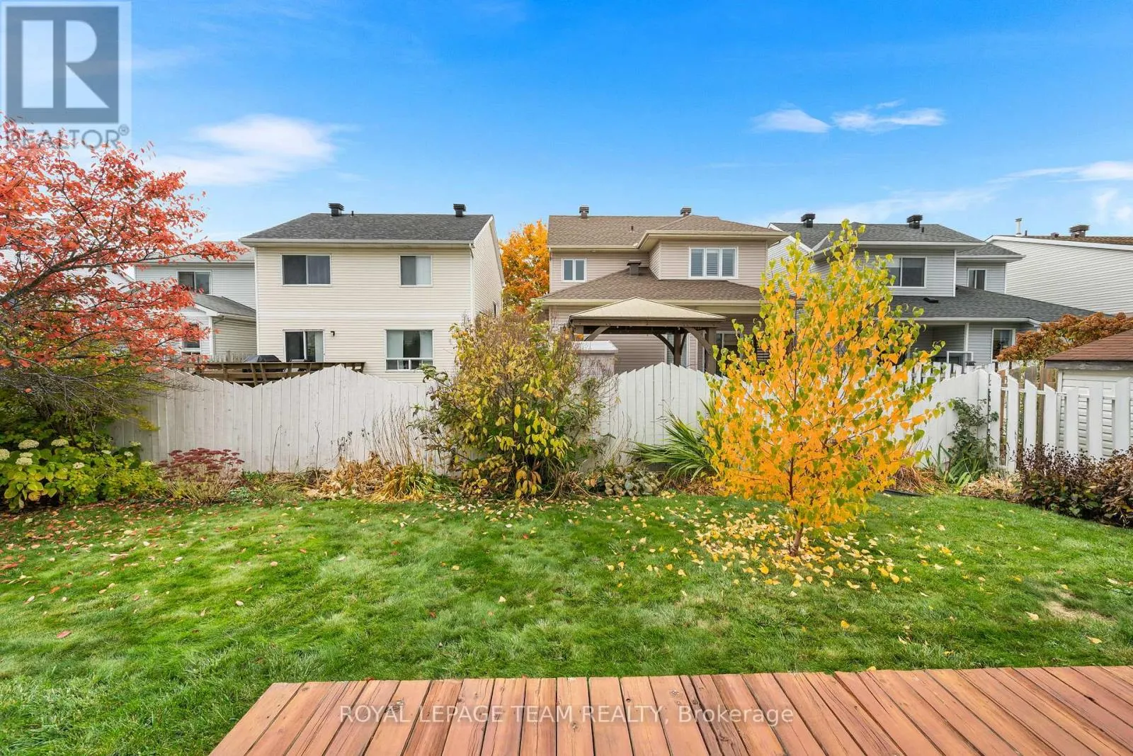 Trim Rd to right on Waters to left on Varennes to right on Sheenboro Lovingly maintained by the original owner, this MacDonald Homes built "Highlander" model (built in 1993) is the perfect family home in the heart of the Fallingbrook/Pineridge area of Orleans. Offering over 2,000 sq. ft. of above-grade living space, this home has room for everyone with 4 spacious bedrooms and a bright, inviting layout. The main floor features a welcoming living and dining room with beautiful maple hardwood floors, a large eat-in kitchen filled with natural light, and a cozy family room with a wood-burning fireplace-just right for family movie nights or relaxing evenings at home. You'll also find a convenient powder room, main-floor laundry, and inside access to the double garage. Upstairs, the generous primary bedroom includes its own sitting area with cathedral ceiling, a four-piece ensuite, and a walk-in closet. Three additional ample sized bedrooms and a full four piece bathroom provide plenty of space for kids, guests, or a home office. The lower level is unfinished and ready for your personal touch-think playroom, gym, or great room! The large lot and yard (33.74 x 106.48 x 51.54 x 108.84) provides plenty of space for the children to play, as well as has a deck off the sliding doors from the kitchen. This home's spectacular location is on a quiet, family-friendly street just steps from Trillium Elementary School, and is also quite close to a variety of parks, shopping, and transit......This home offers both comfort and convenience. Updates include A/C (2024), Trane furnace (2013), most windows (2006-2011), and roof (2009). .24-hour irrevocable on all offers. Public Open House: Sunday, October 26th, 2-4 p.m (id:27476)