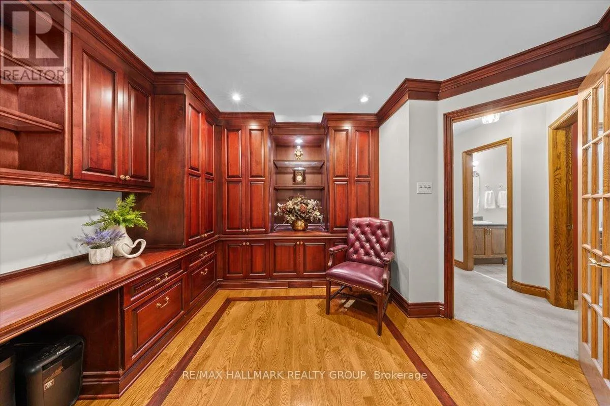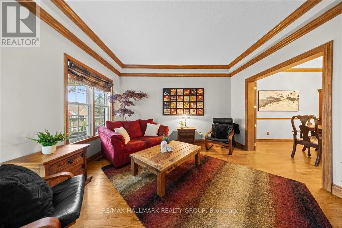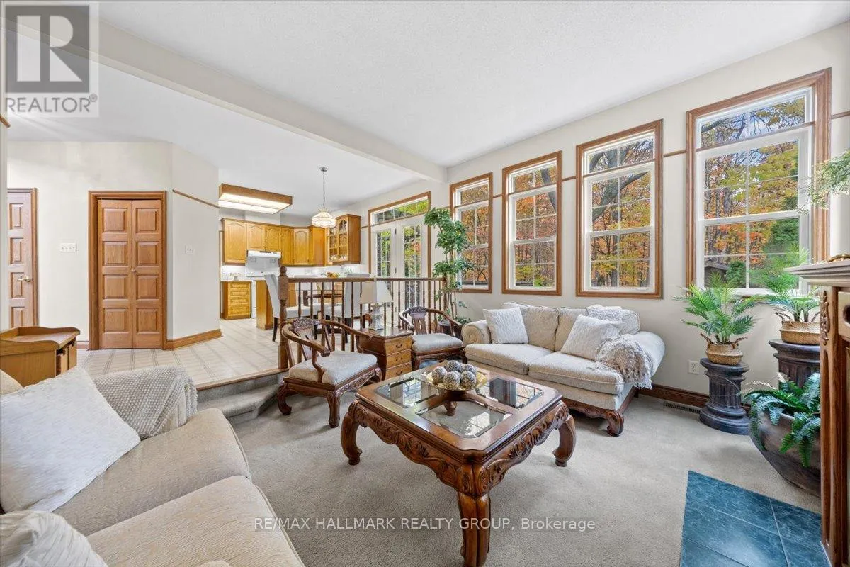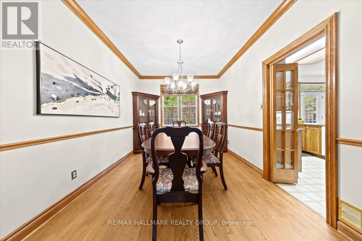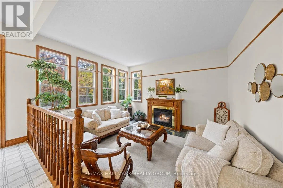 Cross Streets: Steeple Chase and Mattawa. ** Directions: Steeple Chase Drive to Mattawa Crescent. Discover this beautiful four-bedroom, four-bathroom home situated on a desirable, tree-lined street with a coveted rear view of the National Capital Commission (NCC) protected green space. The main level features a gracious living room and separate dining room, both with rich oak hardwood flooring, oak crown moulding, and solid oak interior doors throughout. A bright sunken family room, anchored by a gas fireplace, opens via garden doors to a private, treed backyard - your peaceful retreat right at home. Upstairs, the expansive primary suite offers a five-piece ensuite and a walk-in California-style closet. Three additional well-proportioned bedrooms provide flexible space for family, guests, or a dedicated home office. A convenient second-level laundry room with built-in ironing board enhances everyday ease. The fully finished lower level is designed for comfort and function: a generous recreation room with a three-sided fireplace, a three-piece bathroom with heated floor, and abundant storage space complete this home. Exterior features include an interlock driveway and steps leading to the front porch, a Generac generator for peace of mind, and a sprinkler system to keep the grounds lush and green. 200 amp circuit to accommodate hot tub and sauna. Located just steps from W.O. Mitchell Public School and surrounded by walking and biking trails, this home also benefits from nearby public transit via OC Transpo bus stop and an extensive range of shopping, dining, and community amenities. 24 hour irrevocable on offers and allow 12 hours or overnight for showing request. (id:27476)