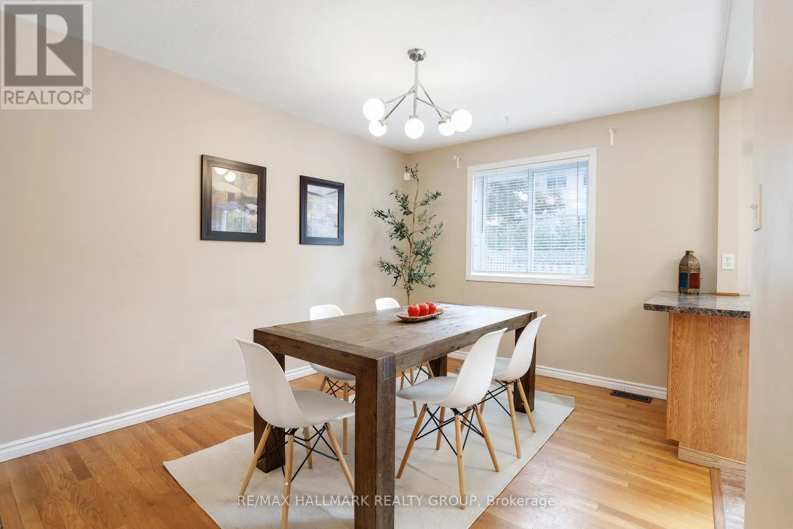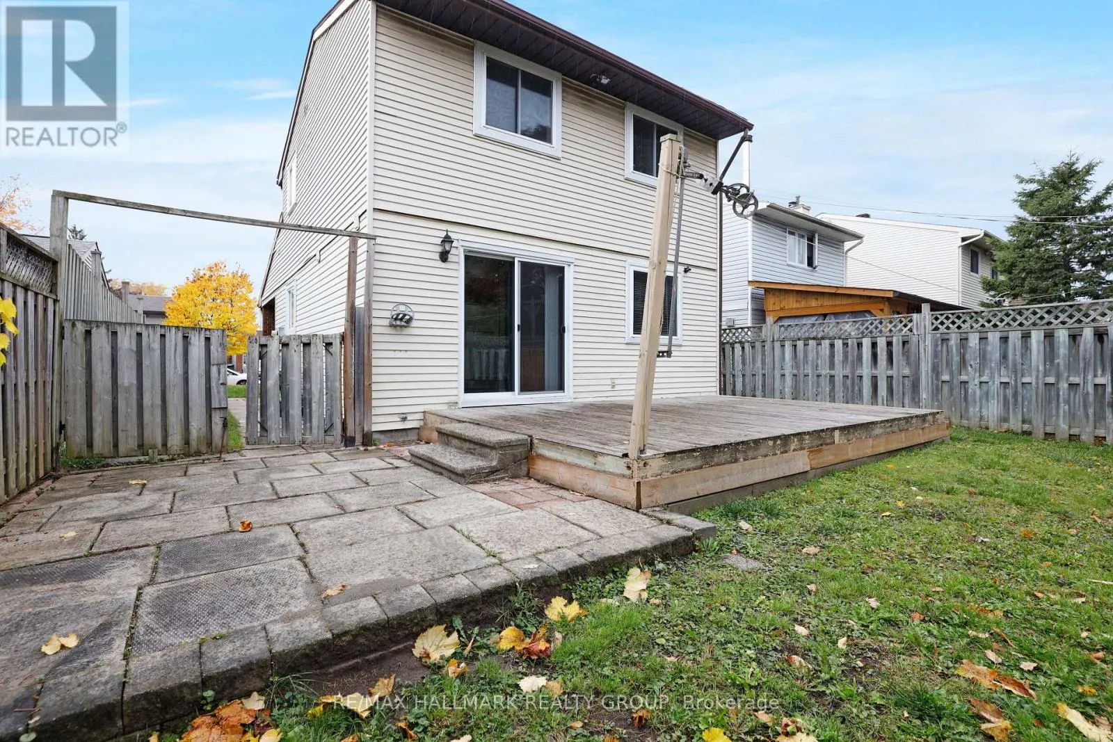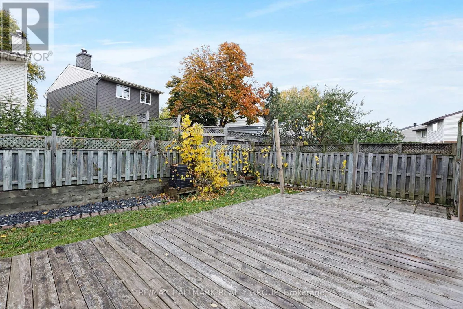 Cross Streets: Stonehenge and Innis. ** Directions: 417 to Innis Road to Stonehedge to Saxony. Here's your chance to own a single-family home for the price of a semi! This sunny 3-bedroom, 2-bathroom home is nestled on a quiet, family-friendly crescent in Gloucester, offering easy access to parks, schools, shopping, and the Queensway. It's ideally located near Ottawa General Hospital, CHEO, and Trainyards, with local parks just a short walk away. Plus, enjoy a weekday peak time, convenient 30-minute commute to the University of Ottawa-perfect for students, staff, or anyone working downtown. The main floor features a spacious powder room, a bright living room with a corner window and cozy gas fireplace, and a generous dining area that opens to a kitchen tucked at the back of the house-perfect for seamless backyard access during BBQ season. The kitchen boasts oak cabinets, stainless steel appliances, a breakfast bar, and views of the sunny, fully fenced backyard with a large deck. Upstairs, hardwood stairs lead to a spacious principal bedroom with a full wall of closets and built-in organizers. Two additional bedrooms at the rear of the home offer privacy and ample space for desks, dressers, and beds. A large hallway closet provides extra linen storage, and the main bathroom includes a 4-piece with an acrylic tub and easy-care tub surround. The basement offers a well-lit recreation or playroom with recessed lighting, a laundry room with newer vinyl flooring, a newer gas furnace and hot water tank ( 2019), and a central vacuum system with attachments and a flex area for a workout area or workshop. Outside, a double driveway and interlock path welcome guests year-round, while exterior access to garage makes gardening a breeze. The garage also features attic storage-ideal for seasonal items, tools, or extra gear. With hardwood floors throughout, classic tile finishes, vinyl windows, and all appliances, light fixtures, and window treatments included, this freehold home is a rare find in a modest enclave of singles-no condo fees required.. Roof updated 2018. (id:27476)