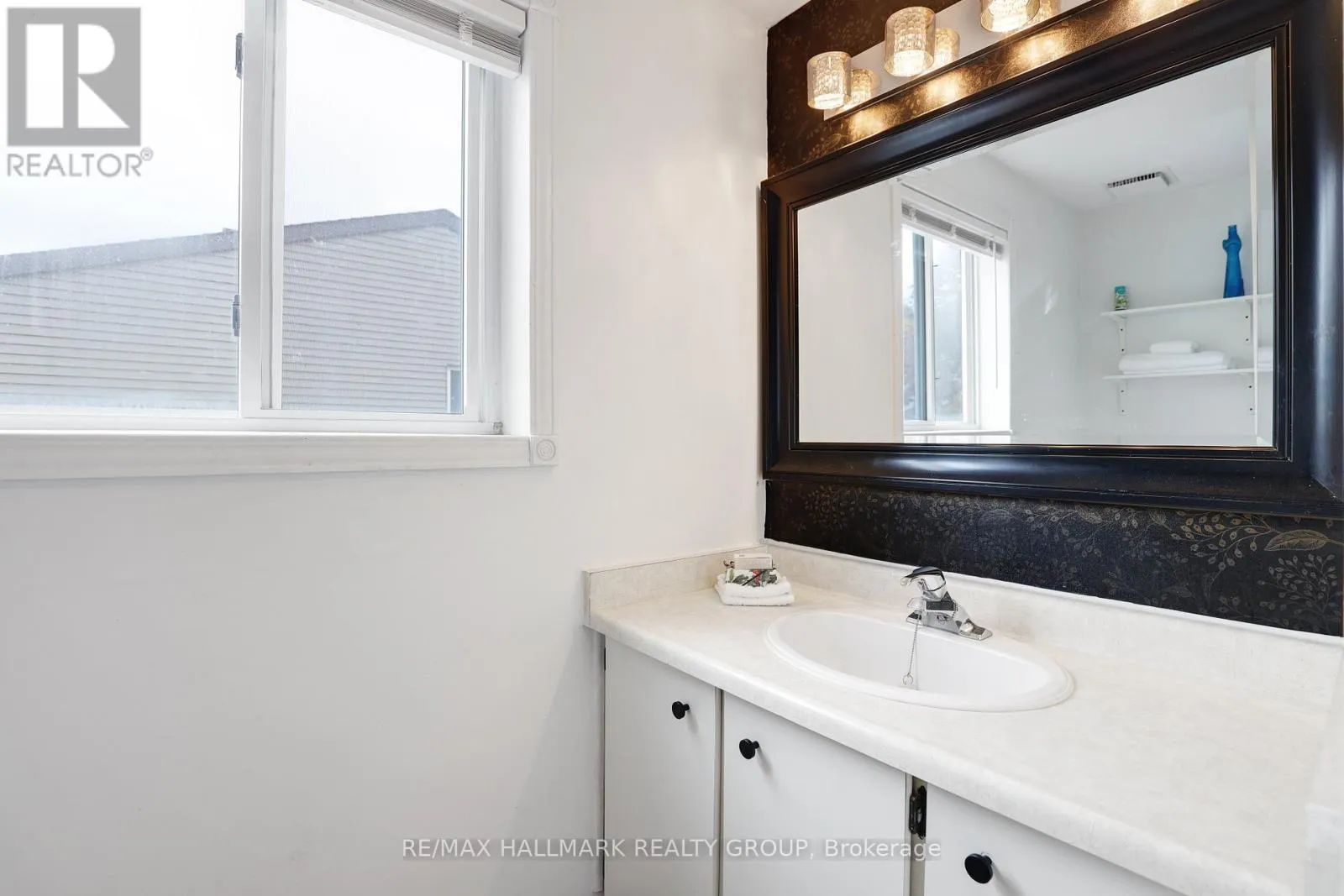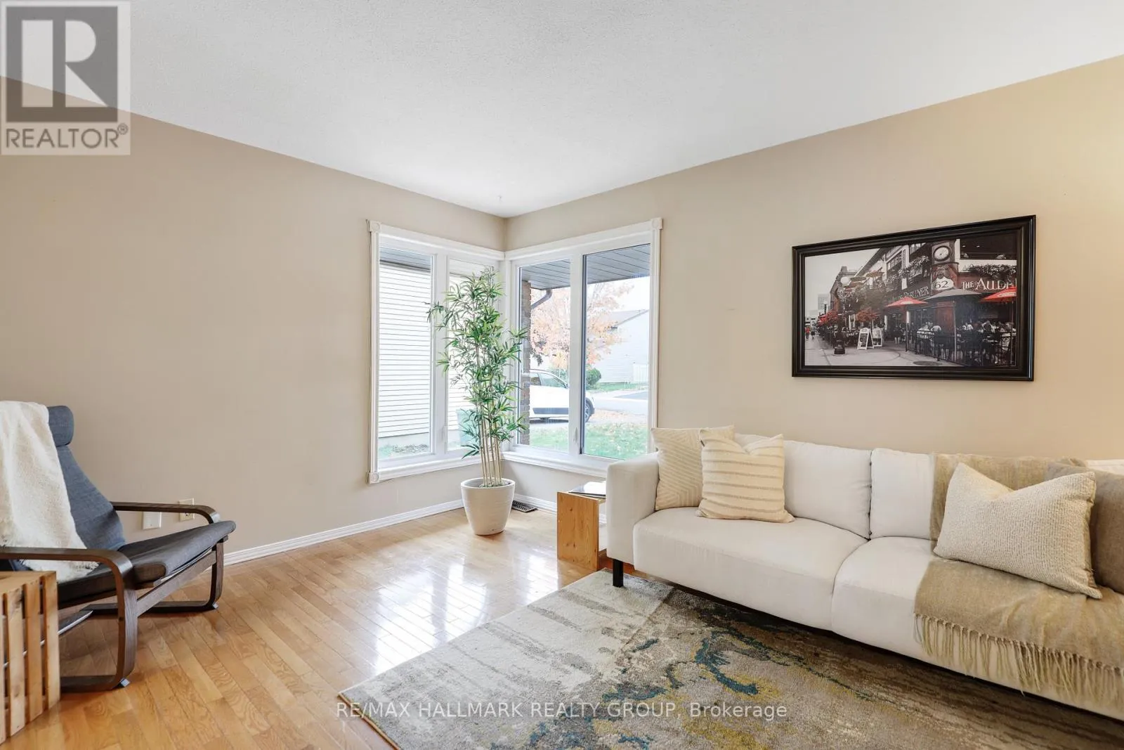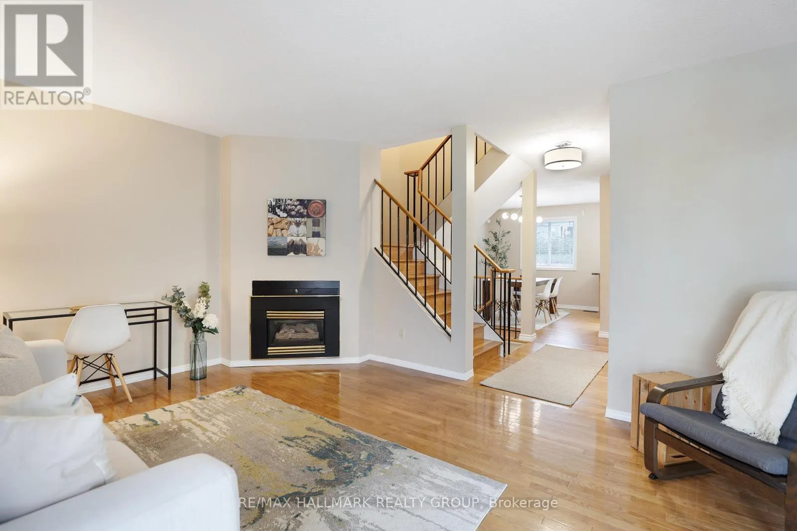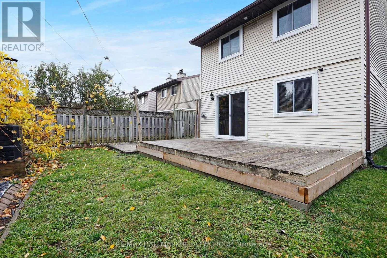 Cross Streets: Stonehenge and Innis. ** Directions: 417 to Innis Road to Stonehedge to Saxony. Here's your chance to own a single-family home for the price of a semi! This sunny 3-bedroom, 2-bathroom home is nestled on a quiet, family-friendly crescent in Gloucester, offering easy access to parks, schools, shopping, and the Queensway. It's ideally located near Ottawa General Hospital, CHEO, and Trainyards, with local parks just a short walk away. Plus, enjoy a weekday peak time, convenient 30-minute commute to the University of Ottawa-perfect for students, staff, or anyone working downtown. The main floor features a spacious powder room, a bright living room with a corner window and cozy gas fireplace, and a generous dining area that opens to a kitchen tucked at the back of the house-perfect for seamless backyard access during BBQ season. The kitchen boasts oak cabinets, stainless steel appliances, a breakfast bar, and views of the sunny, fully fenced backyard with a large deck. Upstairs, hardwood stairs lead to a spacious principal bedroom with a full wall of closets and built-in organizers. Two additional bedrooms at the rear of the home offer privacy and ample space for desks, dressers, and beds. A large hallway closet provides extra linen storage, and the main bathroom includes a 4-piece with an acrylic tub and easy-care tub surround. The basement offers a well-lit recreation or playroom with recessed lighting, a laundry room with newer vinyl flooring, a newer gas furnace and hot water tank ( 2019), and a central vacuum system with attachments and a flex area for a workout area or workshop. Outside, a double driveway and interlock path welcome guests year-round, while exterior access to garage makes gardening a breeze. The garage also features attic storage-ideal for seasonal items, tools, or extra gear. With hardwood floors throughout, classic tile finishes, vinyl windows, and all appliances, light fixtures, and window treatments included, this freehold home is a rare find in a modest enclave of singles-no condo fees required.. Roof updated 2018. (id:27476)
