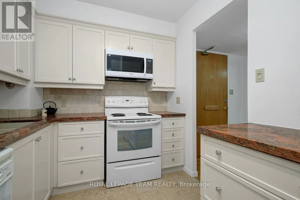 Cross Streets: Pinecrest Road. ** Directions: Pinecrest Road and Richmond Road. Step inside and immediately appreciate the warmth and quality of this beautifully maintained and updated suite. The spacious 2-bedroom, 2-bath layout includes a sun-filled solarium, a tastefully renovated kitchen with stunning granite countertops and maximized storage, and a generously sized laundry room-a rare feature in condo living. With a walk-in closet and an ensuite bathroom, the primary bedroom is your personal retreat. The second bedroom offers a double closet and is perfectly sized for a guest room or office. Set in the prestigious Marina Bay building, residents enjoy exceptional amenities, including a gorgeous outdoor pool, a fitness center, and a party room. Perfectly situated steps from the Ottawa River and the Britannia Sailing Club, this home offers a relaxed, resort-like lifestyle. Move-in ready, this unit truly stands out as one of the finest offerings in the building. (id:27476)