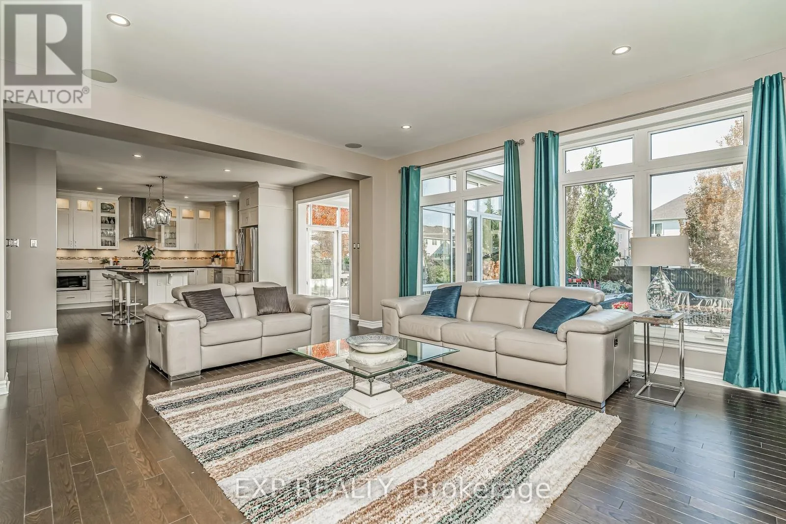 Brambling Way Dunlin Ridge Attention growing families and move-up buyers! This fully upgraded, turnkey 4+1 bedroom, 5 bathroom detached home sits on one of the largest and most premium lots in Half Moon Bay - a highly sought-after Barrhaven community. Offering approximately 4,900 sq. ft. of finished living space (including the fully finished basement), this property was designed for space, comfort, and entertaining. The main level features a spacious foyer, 9-foot ceilings, and newly installed (2025) hardwood flooring throughout. The custom kitchen includes premium cabinetry, quartz countertops, a large centre island, and pantry storage with an additional fridge - ideal for large families. The open-concept family room is perfect for everyday living and hosting. A standout feature of this home is the custom sunroom (2015), finished with heated floors, wood plank tile, and a gas stove. This is an incredible extra living space for relaxing or gathering year-round. Upstairs you'll find four generous bedrooms, each with its own walk-in closet. The primary suite offers a large walk-in closet and a luxurious 4-piece ensuite with soaker tub and glass shower. One bedroom features its own private ensuite, and the remaining two bedrooms share a large connected 4-piece bathroom - a convenient layout ideal for growing families. The fully finished basement adds even more usable space, including a private gym, dedicated theatre room, a bedroom with two walk-in closets (one of which is extended storage), and a 3-piece bathroom - perfect for teens, in-laws, or guests. The backyard is a true outdoor oasis. The property is fully landscaped and interlocked front to back and features an inground saltwater pool, hot tub, and dedicated fireplace/lounge area, creating the perfect setting for summer entertaining. Located in Half Moon Bay, one of Barrhaven's most desirable and fastest-growing neighbourhoods, you're close to top-rated schools, parks, trails, shopping, fitness, and everyday amenities. (id:27476)