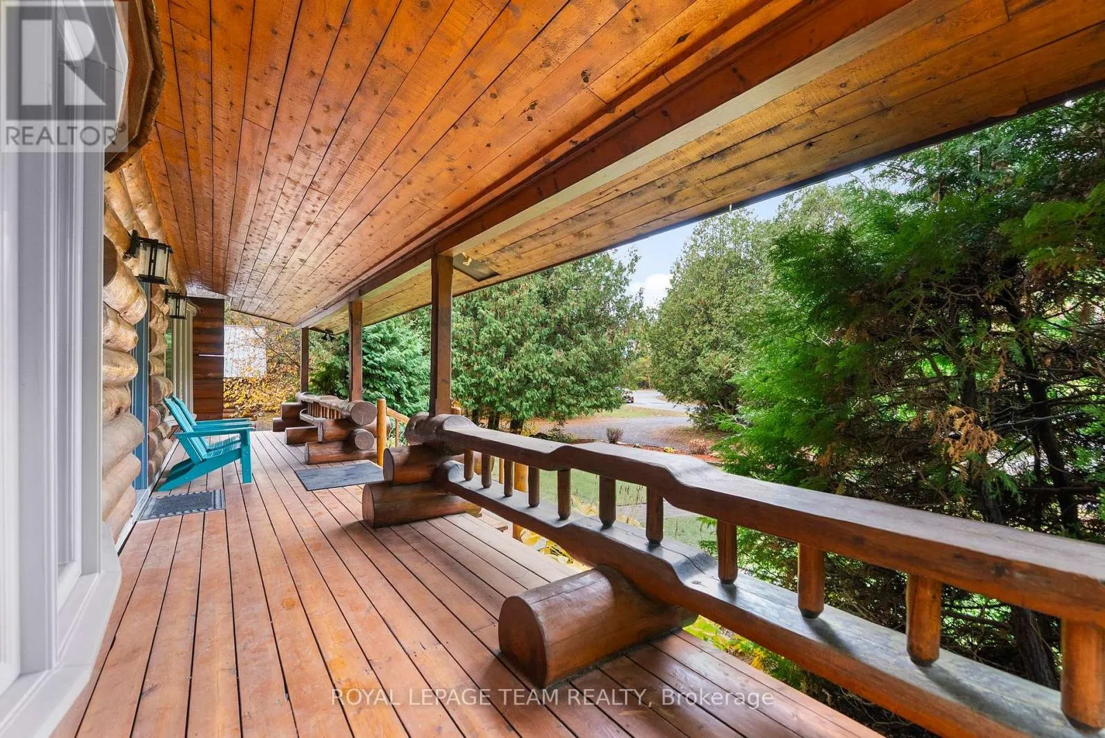 Cross Streets: Lucas Lane / Hubertine Gate. ** Directions: Hwy 7 to Hazeldean Rd exit then right on Jinkinson Rd, right on Fernbank, left on Lucas Lane then right on Hubertine Gate. Situated on a peaceful 2-acre lot in Stittsville, this custom-built detached log home is a true masterpiece of rustic elegance and modern comfort. The handcrafted wood exterior and charming front porch invite you into a world where country serenity meets contemporary luxury. Step inside to discover 4 bedrooms and 3 bathrooms spread over an expansive living space, thoughtfully designed for family living and effortless entertaining. The recently updated kitchen steals the spotlight with its gleaming stainless steel appliances, quartz countertops, tiled backsplash, elegant cabinetry, and a bright eat-in area - the perfect space to gather over morning coffee. The main floor's flowing layout connects the dining room and cozy family room, into a spacious living area, all framed by rich wood beams and sweeping views of the surrounding green space. Upstairs, new hardwood flooring guides you to four generously sized bedrooms. The primary suite is a luxurious escape featuring a large walk-in closet and a renovated ensuite adorned with modern finishes. A second full bath, complete with dual vanities and unique touches, ensures comfort for everyone. The basement offers endless flexibility - a perfect spot for a home theatre, gym, or games room and additional storage. Outside, unwind in your private oasis with a newly installed pool, relaxing hot tub, and sprawling lawn - the ideal backdrop for summer gatherings. Year-round comfort is ensured with a radiant heating system with a high efficiency boiler. A detached 2-car log garage provides ample space for vehicles, tools, and outdoor gear. A rare blend of craftsmanship, comfort, and charm - this log home redefines rural luxury just minutes from the heart of Stittsville. 24 hour Irrevocable. (id:27476)