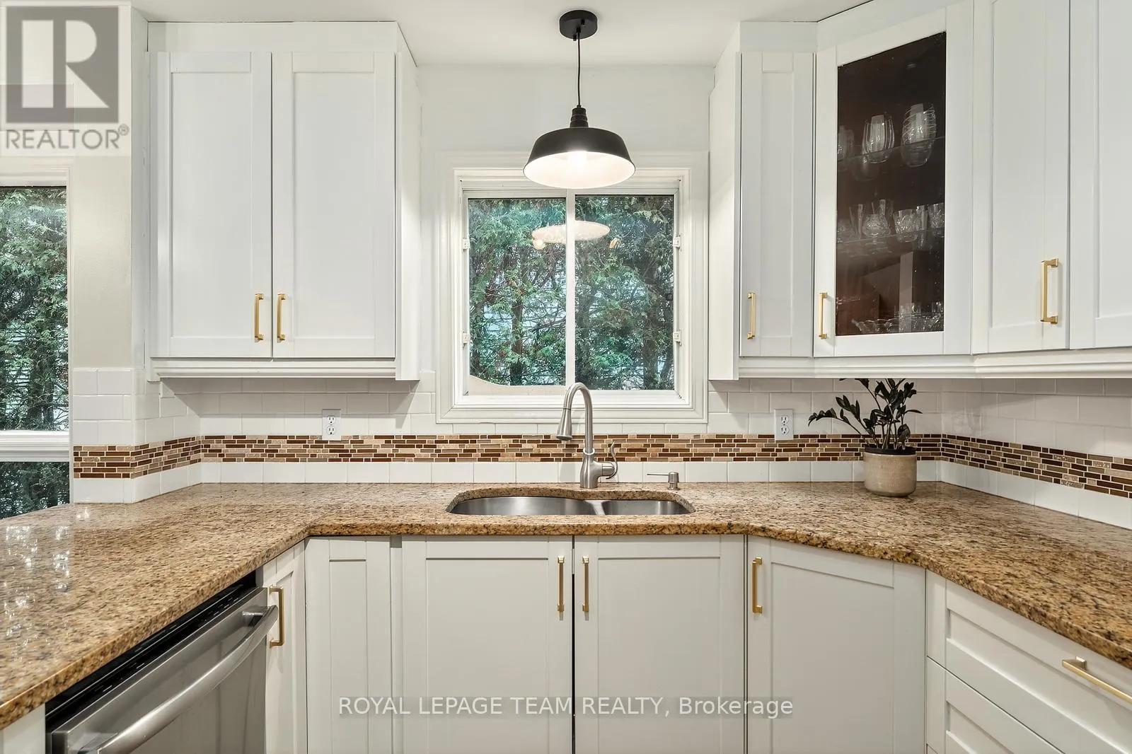 Cross Streets: Woodroffe Ave and Earl Mulligan Dr. ** Directions: Hwy 417 West off Woodroffe, continue south passing Fallowfield, right to Earl Mulligan, first left to Woodpark Way, then next right to 77 Armagh Way, property on the right-hand side. Tucked toward the end of a quiet, semicircular street in central Barrhaven, 77 Armagh Way offers peaceful, family-friendly living in a neighbourhood that feels like a small town of its own. A red-brick façade and mature lindens frame the double garage and interlock walkway, leading to a stylish interior filled with charm. Make your way through the foyer to a front room that is perfect for an office or family flex space. Nearby, the updated kitchen features all newer appliances, granite counters, brushed gold hardware and heated tile floors. The dining and living rooms gather around a wood-burning fireplace and wide windows overlooking the landscaped, south-facing yard with cedar hedges, pergola, and a new heated pool. Upstairs, two spacious bedrooms with large closets look onto the private yard, with a main bath nearby. The serene primary sparkles with five windows, hardwood floors, and an ensuite bath. A finished lower level adds generous recreation space, laundry, and storage. Steps to parks, schools, trails, and everyday shops - this is Barrhaven at its most welcoming. (id:27476)