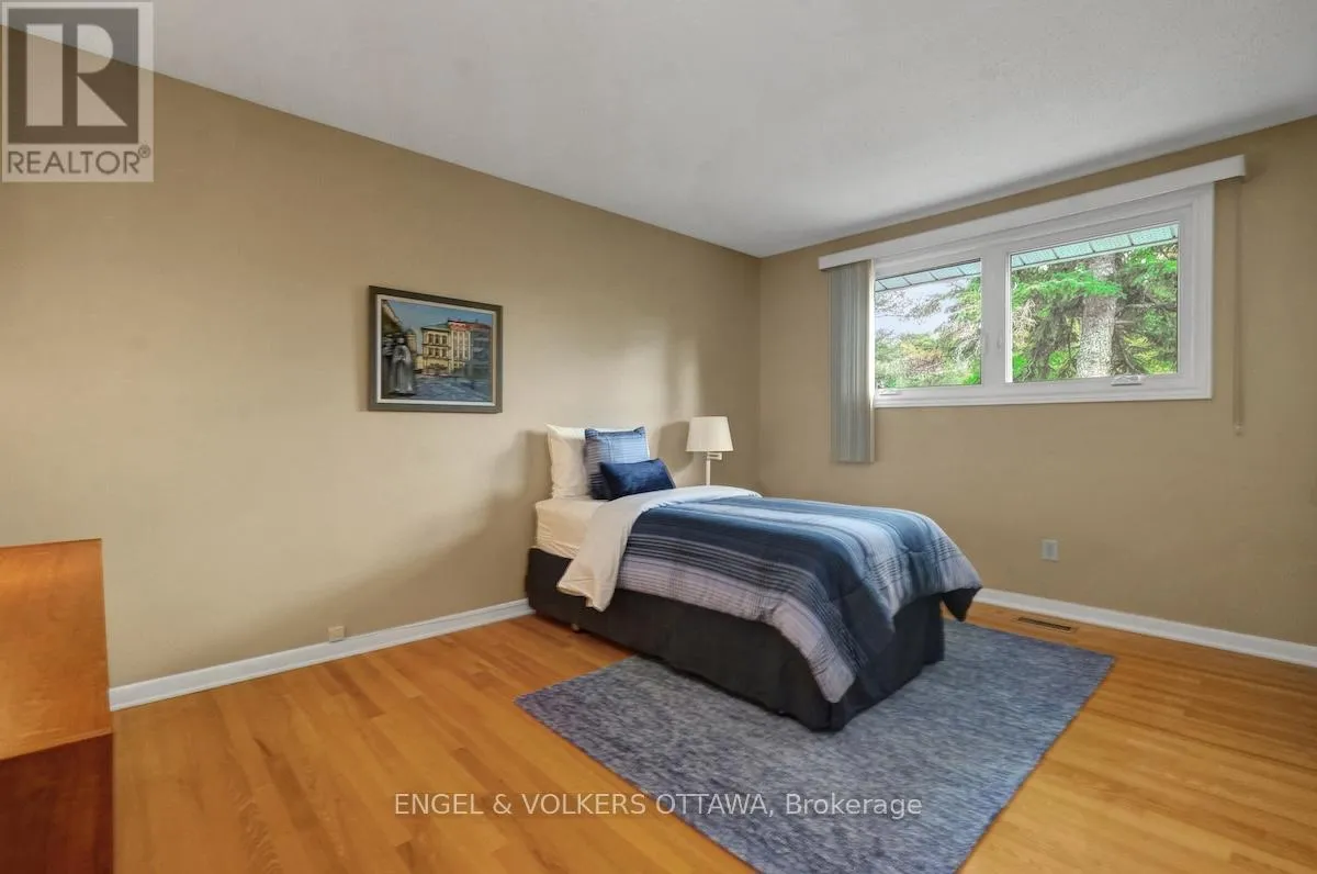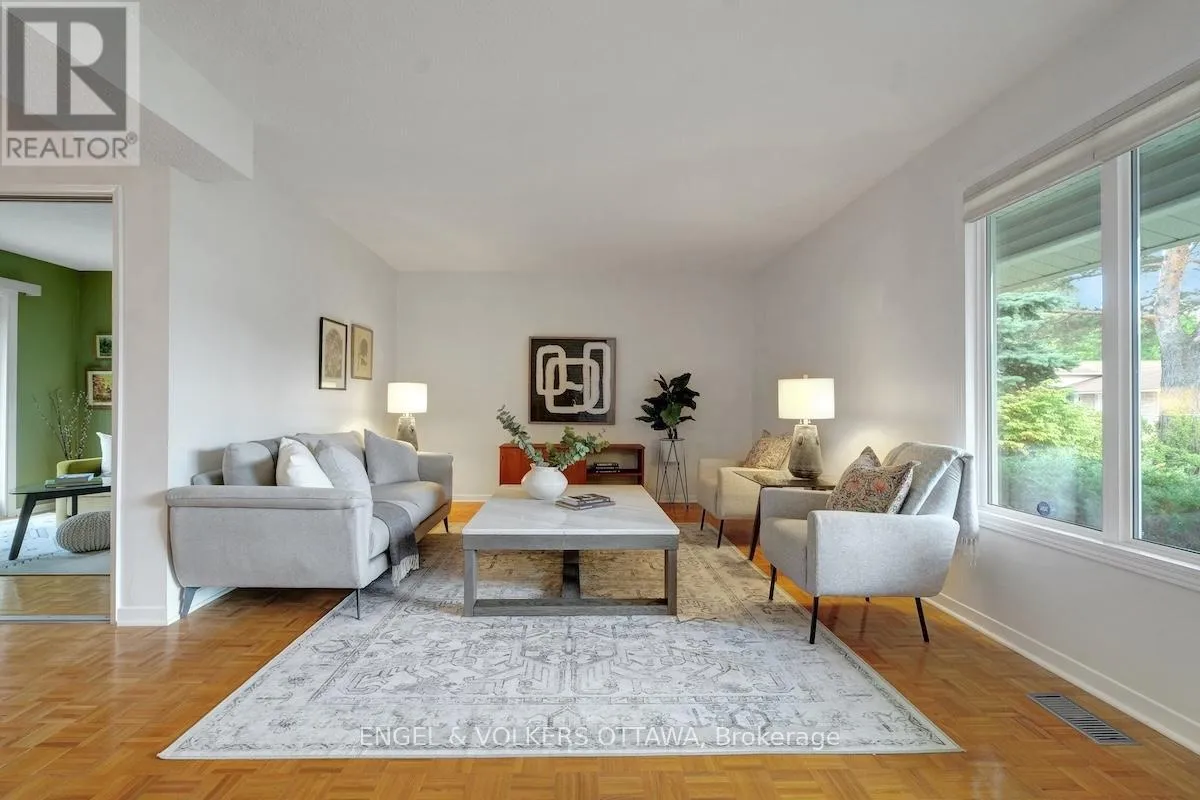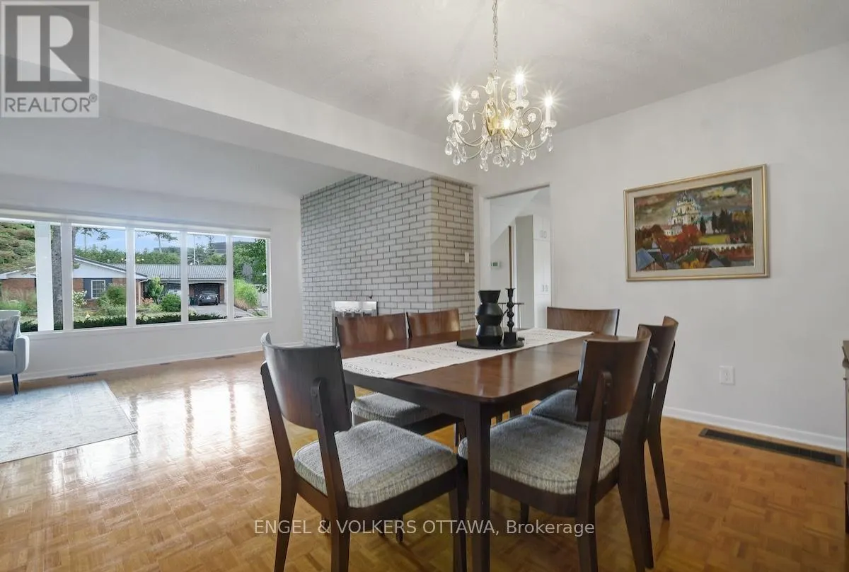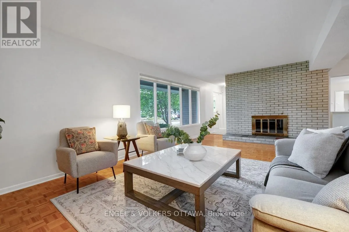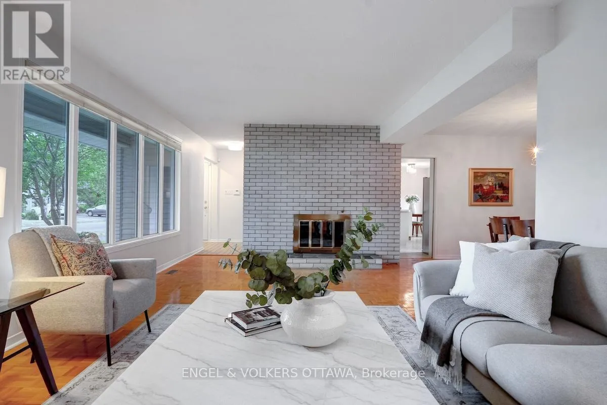 Cross Streets: Baseline Rd. & Beaumaris Dr. ** Directions: Baseline Rd. west to Beaumaris Dr. Left onto Qualicum St. Property is at the corner of Qualicum St. and Dickson St. Welcome to this spacious 4-bed, 3-bath home located in the sought-after neighbourhood of Qualicum. Beautifully maintained by its long time owner, this home is your chance to reside on one of the community's most desirable streets. A true mid-century gem, the TS-1 floorplan by Teron, offers a functional layout - perfect for a growing family or professional couple. The main floor features a dedicated home office, as well as a formal living and dining room centred around a classic brick fireplace. Tall windows line the front of the home, overlooking the covered porch, while hardwood flooring flows seamlessly through the living spaces, including a separate den which leads to the backyard. The kitchen has been updated, offering ample counter and storage space along with an island and large eat-in area. Off the kitchen you'll find a mudroom with a 2pc powder room, closet space, and access to the garage. Upstairs, you'll find a spacious primary suite that includes an ensuite bath and large closets, while three other generously sized bedrooms and the main bathroom give plenty of space for your needs. The finished basement provides excellent additional living space and offers great potential to expand upon the current rec room. Perfect for a kids play space, home gym, and/or games room. The backyard has been extensively landscaped with beautiful perennial gardens and lush greenery giving a true sense of privacy. With updated infrastructure, this home offers an excellent opportunity for a family to put their own touches on this already stunning property. Ideally situated with easy access to Highway 417, Queensway Carleton Hospital, and surrounded by parks and greenspace, this home offers the perfect balance of convenience and tranquility. Take in community events at Nanaimo Park throughout the year, as well as the outdoor rink through the winter. Perfect for families looking to settle into this outstanding community! (id:27476)