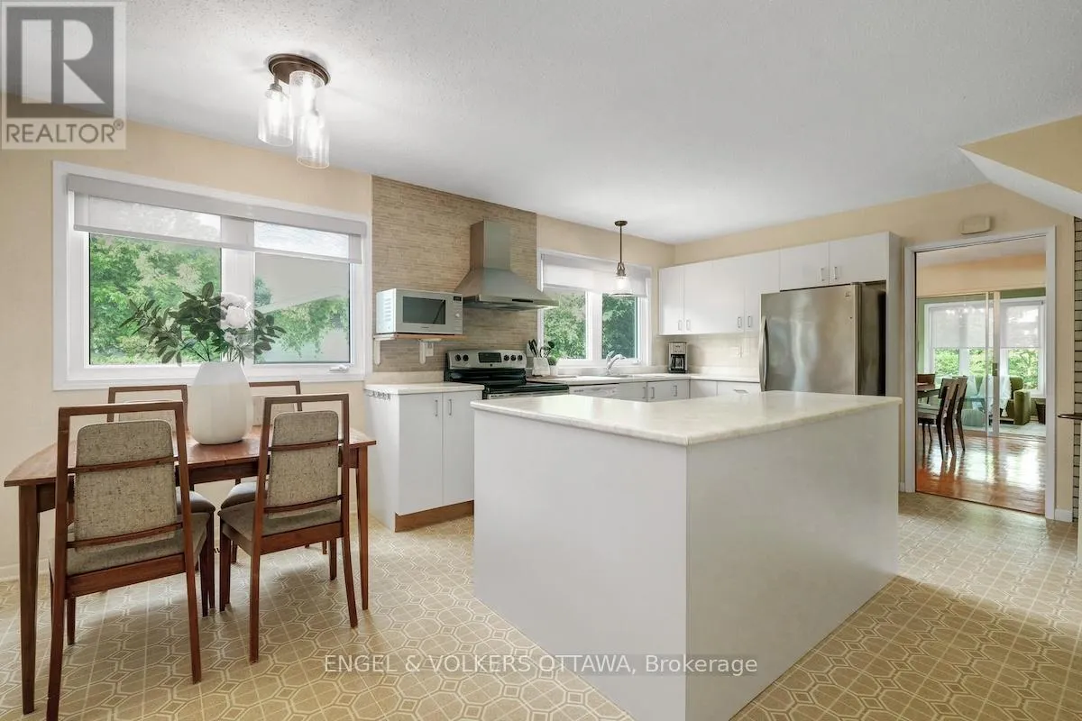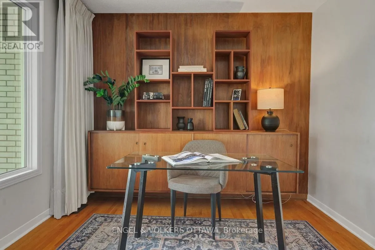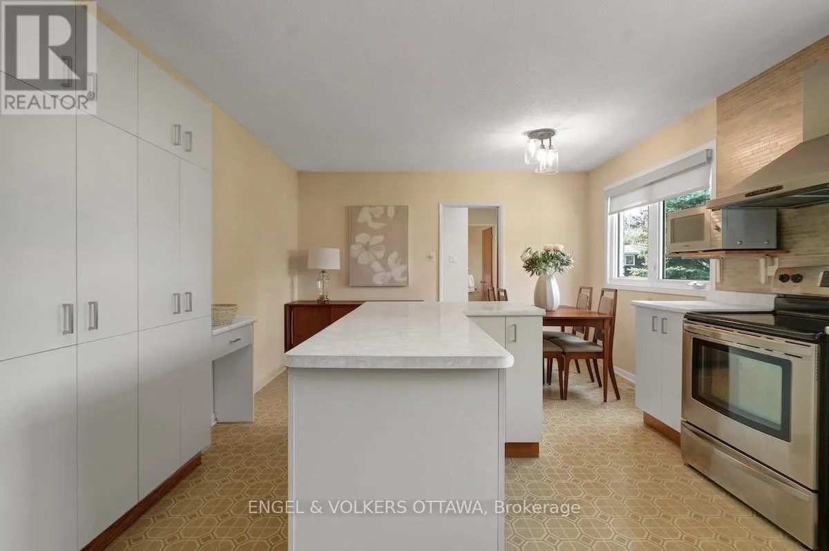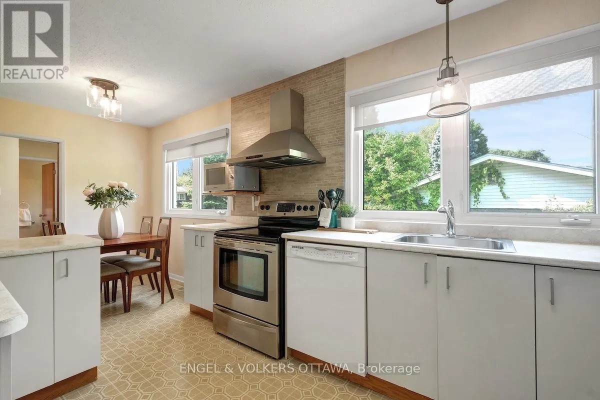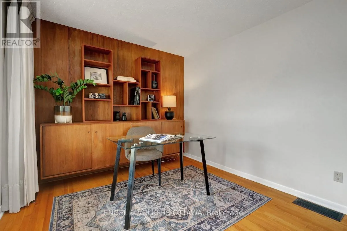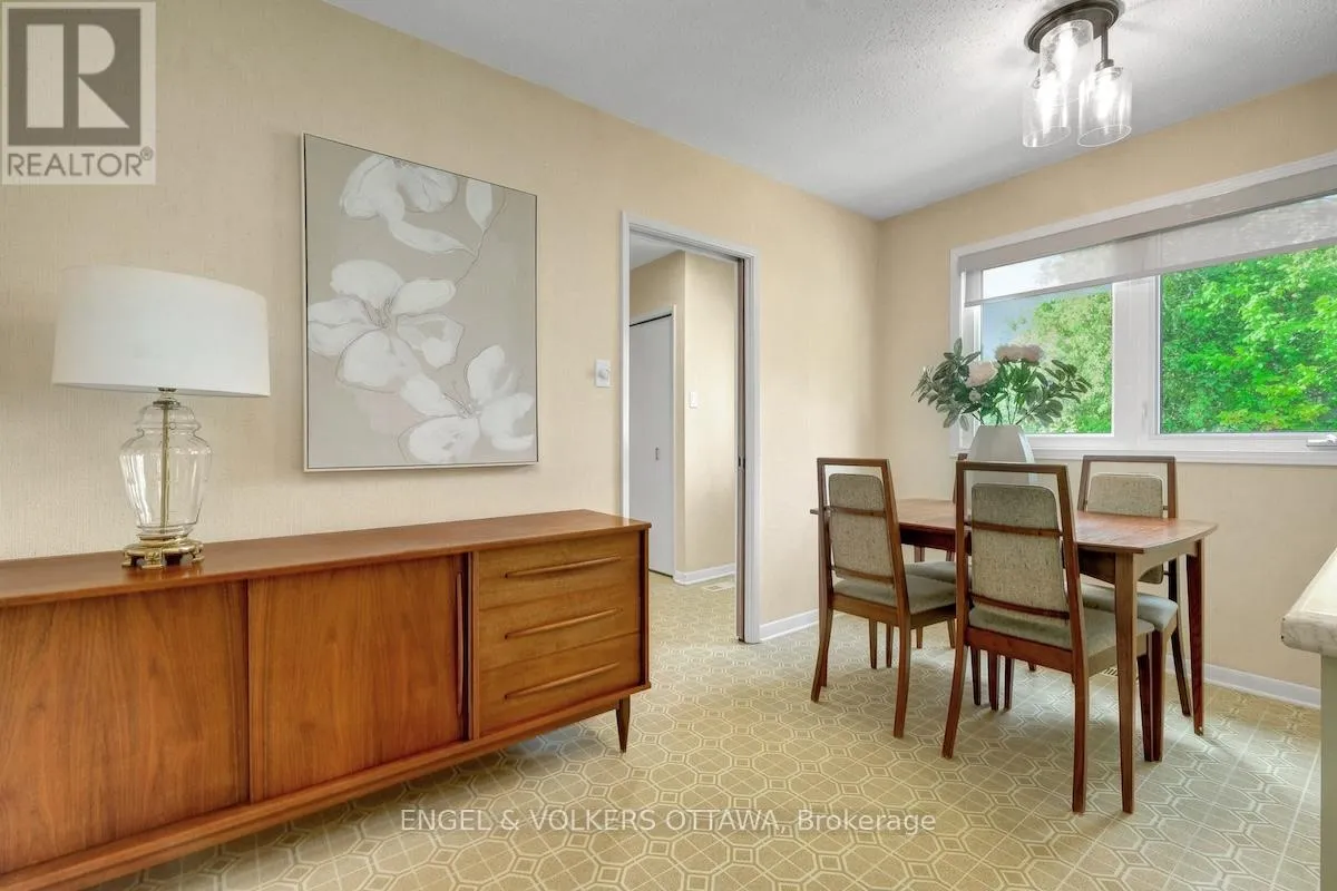 Cross Streets: Baseline Rd. & Beaumaris Dr. ** Directions: Baseline Rd. west to Beaumaris Dr. Left onto Qualicum St. Property is at the corner of Qualicum St. and Dickson St. Welcome to this spacious 4-bed, 3-bath home located in the sought-after neighbourhood of Qualicum. Beautifully maintained by its long time owner, this home is your chance to reside on one of the community's most desirable streets. A true mid-century gem, the TS-1 floorplan by Teron, offers a functional layout - perfect for a growing family or professional couple. The main floor features a dedicated home office, as well as a formal living and dining room centred around a classic brick fireplace. Tall windows line the front of the home, overlooking the covered porch, while hardwood flooring flows seamlessly through the living spaces, including a separate den which leads to the backyard. The kitchen has been updated, offering ample counter and storage space along with an island and large eat-in area. Off the kitchen you'll find a mudroom with a 2pc powder room, closet space, and access to the garage. Upstairs, you'll find a spacious primary suite that includes an ensuite bath and large closets, while three other generously sized bedrooms and the main bathroom give plenty of space for your needs. The finished basement provides excellent additional living space and offers great potential to expand upon the current rec room. Perfect for a kids play space, home gym, and/or games room. The backyard has been extensively landscaped with beautiful perennial gardens and lush greenery giving a true sense of privacy. With updated infrastructure, this home offers an excellent opportunity for a family to put their own touches on this already stunning property. Ideally situated with easy access to Highway 417, Queensway Carleton Hospital, and surrounded by parks and greenspace, this home offers the perfect balance of convenience and tranquility. Take in community events at Nanaimo Park throughout the year, as well as the outdoor rink through the winter. Perfect for families looking to settle into this outstanding community! (id:27476)