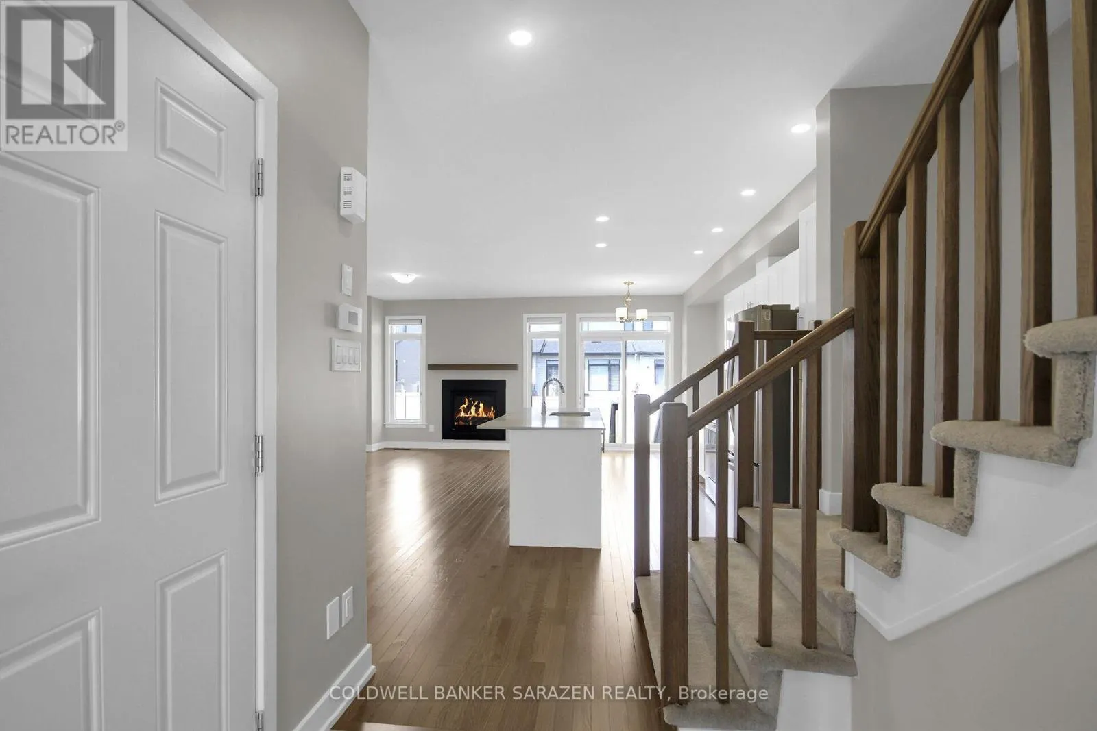 Eagleson to Terry Fox to Overberg Way to Amico to Allegrini Terrece Welcome to this stunning newer townhome located in the desirable Trailwest community of Kanata/Stittsville. Offering 3 bedrooms and 3 bathrooms, this home combines space, comfort, and modern style.The main level features gleaming hardwood floors, a spacious open-concept living and dining room with a cozy gas fireplace, and a bright kitchen with quartz countertops, stainless steel appliances, ceramic tile flooring, and a large islandperfect for entertaining. Upstairs, the primary bedroom offers a private ensuite with a shower and a walk-in closet, while the secondary bedrooms are generously sized. The fully finished basement provides a versatile rec room, ideal for family activities or a home office. Freshly painted throughout, this home is move-in ready and located close to excellent schools, parks, trails, and all amenities. (id:27476)