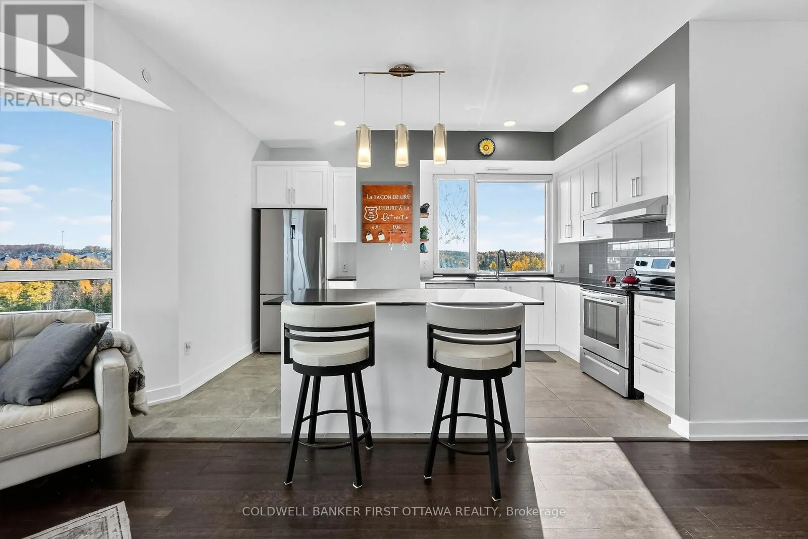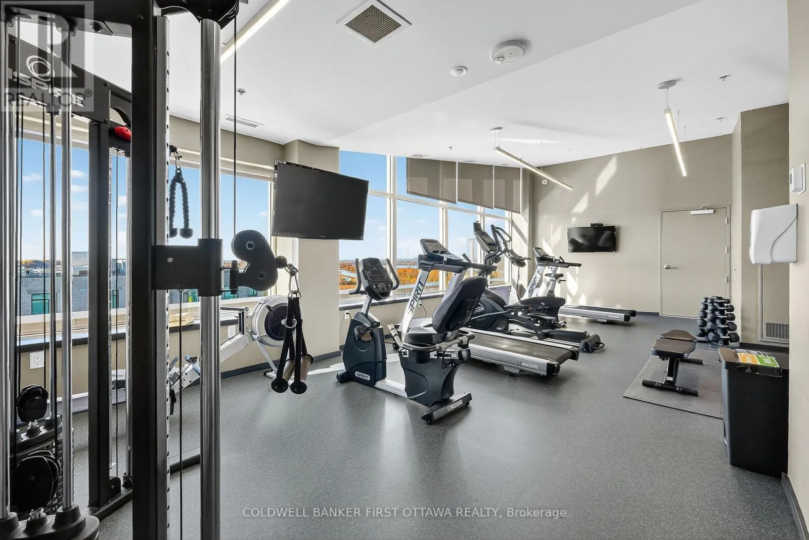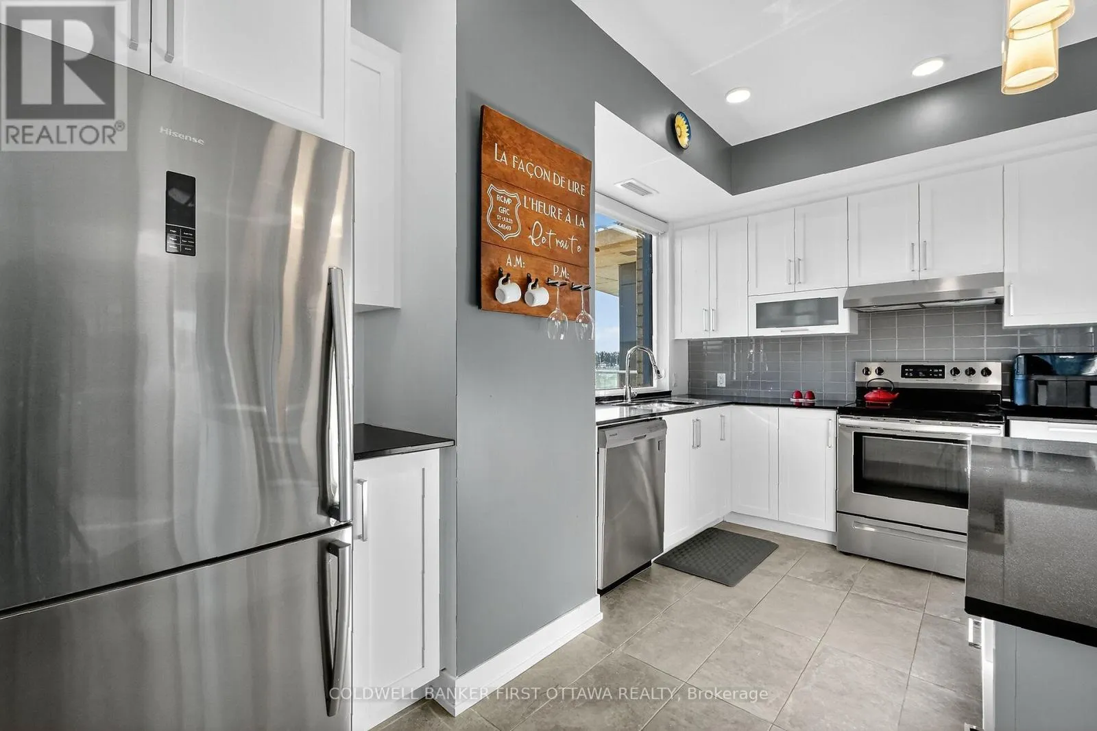Cross Streets: Jeanne d'Arc Blvd East. ** Directions: highway 174 East, exit at Trim Rd. Spacious and well laid out 2 bedroom, 2 bath condo in the coveted Petrie's Landing area with River view. Over 1150 square feet of living space, with 2 balconies (extra 287 s.f.) one with views of the River and the other overlooking Orleans (North- East-South views). The condo comes with 1 underground parking space and one locker. No carpets in the unit, all engineered hardwood or tiles. Bright unit with living-dining-kitchen open plan, bedrooms separated by the living space each have their own full bathroom. The primary bedroom offers a walk through closet and lux bathroom with double vanity, separate tub and double shower; the 2nd bathroom is a 3 piece bathroom. Good size vestibule at t the entrance, in unit laundry and storage area. Kitchen has a breakfast island, generous counter space counters (Granite) and a window. Linen closet near the dining area. Quality blinds throughout, stainless kitchen appliances. You will love the roof top amenities, including lap pool & spa with gorgeous views of Petrie Island, the adjacent party room (looks like a lounge!) and exercise room. Other amenities include bicycle storage, kayak, paddleboard storage & indoor car wash. Also walking distance to the LTR Park & RIde at Trim Rd and soon to be LRT stop on Line 1. Occupancy possible before Christmas. Maintenance fees include heating & water (no hot water tank rental!).. (id:27476)