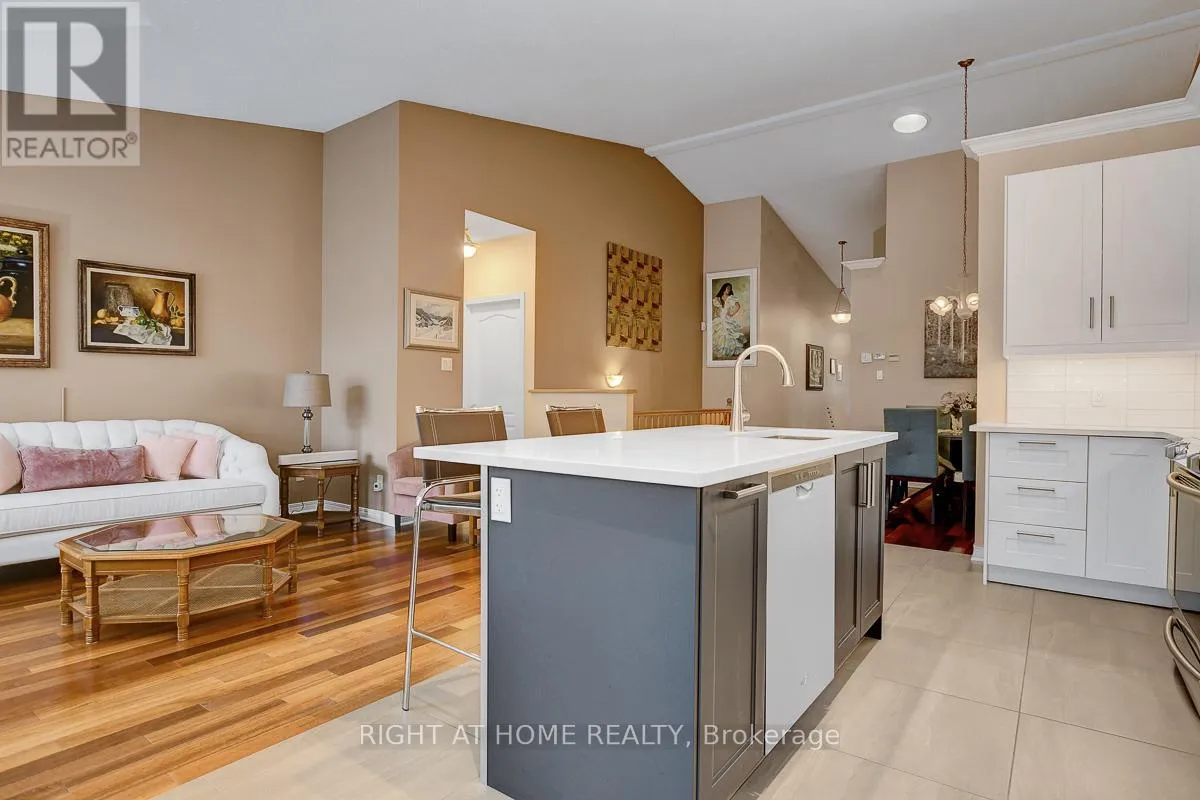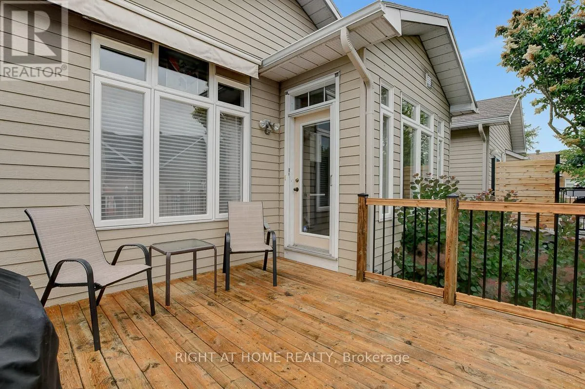Hazeldean to West Ridge to Sable Run Open House Sunday November 9th 3-4:30pm. Highly desired Adult Living in sought after Stittsville! This Quality built Holitzner end-unit bungalow is located on a beautifully landscaped premium corner lot with private double laneway, inground sprinkler system, covered porch, double garage, approx. 12' retractable awning & refinished deck. Fantastic open concept design with vaulted ceilings, stunning renovated kitchen(2021) with updated appliances, quartz counters, breakfast island, desk area & plenty of cupboard space, living room with gas fireplace, separate dining room, primary bedroom with walk-in closet & 4 piece ensuite, granite counters in all baths, hardwood in living & dining rooms, 2nd bedroom/sitting room on main floor, 2 solar tubes, main floor laundry with access to garage & plenty of storage, all window coverings, pot lighting, hot water tank is owned, cozy finished basement with tall ceilings offers french double door entry to family room with electric fireplace, built-in cabinets & murphy bed, 3rd bedroom, 3piece bath & huge storage room. Beautifully maintained, neutral decor, move in ready & More!! Incredible Adult community that is quiet, tucked away and NO fees!!! (id:27476)