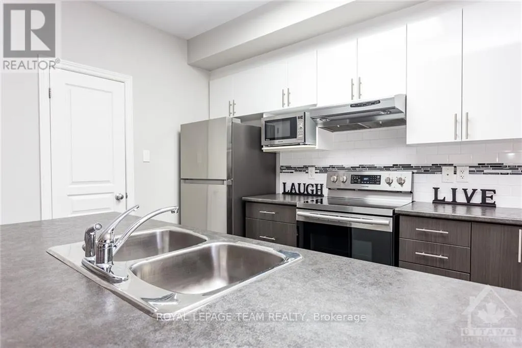 Heading East on Earl Armstrong Road, turn left onto Canyon Walk Drive, then left onto Beryl Private. Keep left on Beryl Private and the property will be on your right. Welcome to this beautiful UPPER UNIT 2 bedroom, 2 bathroom condo located in the family-friendly community of Riverside South! Walking distance to future LRT station! Step inside to a bright, inviting foyer that opens to a spacious living area with vaulted ceilings - a unique feature of this upper-level unit. Hardwood floors flow throughout the main living space, creating a warm and modern feel.The kitchen features a cozy breakfast area, walk-in pantry, premium stainless steel appliances, and direct access to a large, covered balcony - perfect for relaxing or entertaining outdoors. Both bedrooms are generously sized with great closet space. The primary suite includes a 3-piece ensuite with a glass step-in shower, while the second full bathroom offers a deep soaking tub.Enjoy convenience at your doorstep - just minutes to parks, schools, shopping, and the Earl Armstrong Bridge for quick access to Barrhaven.1 outdoor parking included (#12D) in rental price with tons of visitor parking in the complex! WATER IS INCLUDED IN RENT! (id:27476)
