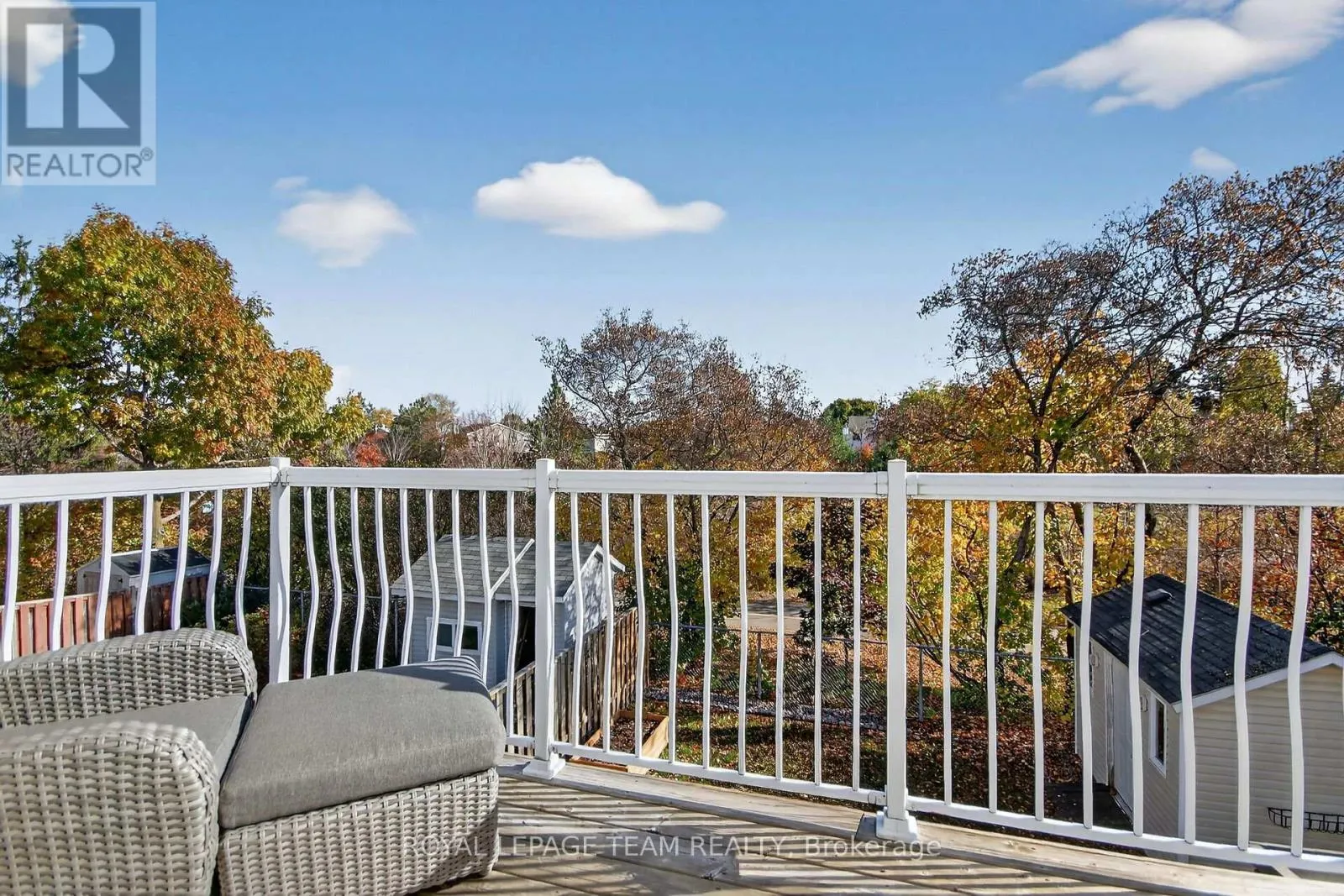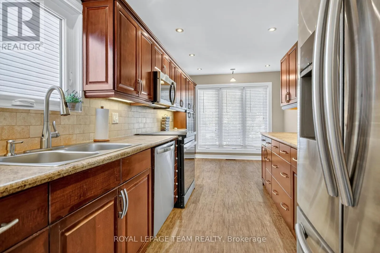 Cross Streets: Kennevale x Hennepin. ** Directions: Strandherd Dr to Kennevale Dr, Right on Hennepin to Vesta. Nestled on a tranquil cul-de-sac and backing onto scenic walking trails with no rear neighbours, this charming 3-bedroom, 3-bathroom home is a true haven for nature lovers. Step inside to discover a bright main level featuring handsome hardwood floors and a spacious, inviting great room anchored by a cozy wood-burning fireplace - the perfect spot for evening relaxation.The heart of the home is the beautifully remodelled kitchen, boasting sleek stainless steel appliances, modern flooring, and a sun-drenched dining area. New French doors lead directly to a large deck, ideal for outdoor dining while enjoying the backdrop of nature trails. Upstairs, the private primary bedroom is complete with a 4-piece ensuite with soaker tub and a unique private balcony - perfect for your morning coffee. New low maintenance flooring throughout the upper level provides a fresh, modern touch. This home offers true peace of mind with extensive, recent maintenance: a brand-new furnace (October 2025), roof (2021), upgraded insulation (2025), most windows replaced, new patio door upstairs & a 200-amp electrical panel. Situated close to shopping, dining, and all essential amenities, this wonderful pet-free, and smoke-free property perfectly blends modern upgrades with serene living. Don't miss the chance to make this great home your own! (id:27476)