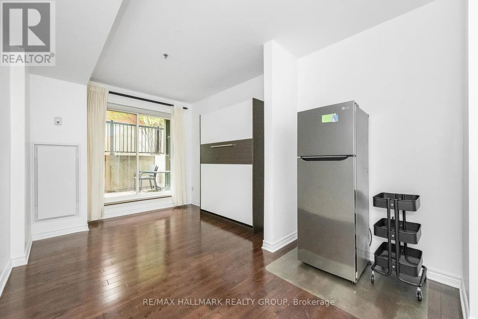 Cross Streets: Kent and Gladstone. ** Directions: 429 Kent Street is located at the corner of Kent and Gladstone. Discover urban living at its finest in this stylish bachelor unit, perfectly situated in the vibrant downtown core of Ottawa. With its open-concept design, this residence combines modern elegance with everyday functionality, making it the ideal space for any young professional or urban dweller. As you enter, you'll immediately appreciate the seamless flow of the open living space, featuring hardwood and tile flooring that adds a touch of sophistication. The well-appointed kitchen boasts sleek granite countertops and stainless-steel appliances, making it not only functional but also a delight for culinary enthusiasts. The kitchen seamlessly transitions into the living area, creating a bright and airy atmosphere that is perfect for entertaining or unwinding after a long day. The unit further enhances your living experience with a luxurious bathroom adorned with matching granite finishes. Convenience is key, and you'll appreciate the in-suite laundry facilities that make everyday living a breeze. Step outside through the patio doors to your private covered terrace an oasis for relaxation and outdoor enjoyment. This charming space is perfect for morning coffees or evening cocktails, allowing you to savor the vibrant energy of the city right from your home. Location is key, and this unit is just steps away from Bank Street, Rideau Canal, University Of Ottawa, and a diverse array of restaurants and cafes. Enjoy the rich history and culture of Ottawa, with easy access to Elgin Street and its bustling nightlife. Plus, with a high transit score and mere minutes from Highway 417, commuting throughout the city is effortless. This unit also includes the convenience of one underground parking space, a rare find in downtown living. Additionally, residents have exclusive access to a rooftop terrace equipped with lounge chairs and a gas barbecue, perfect for summer gatherings. Don't miss this opportunity to own a stylish bachelor unit in the heart of downtown Ottawa! (id:27476)
