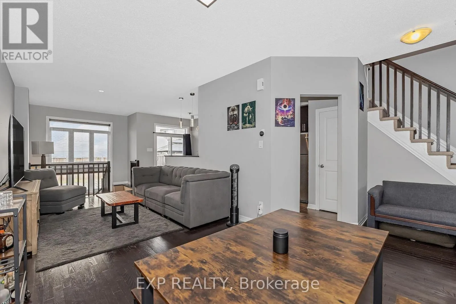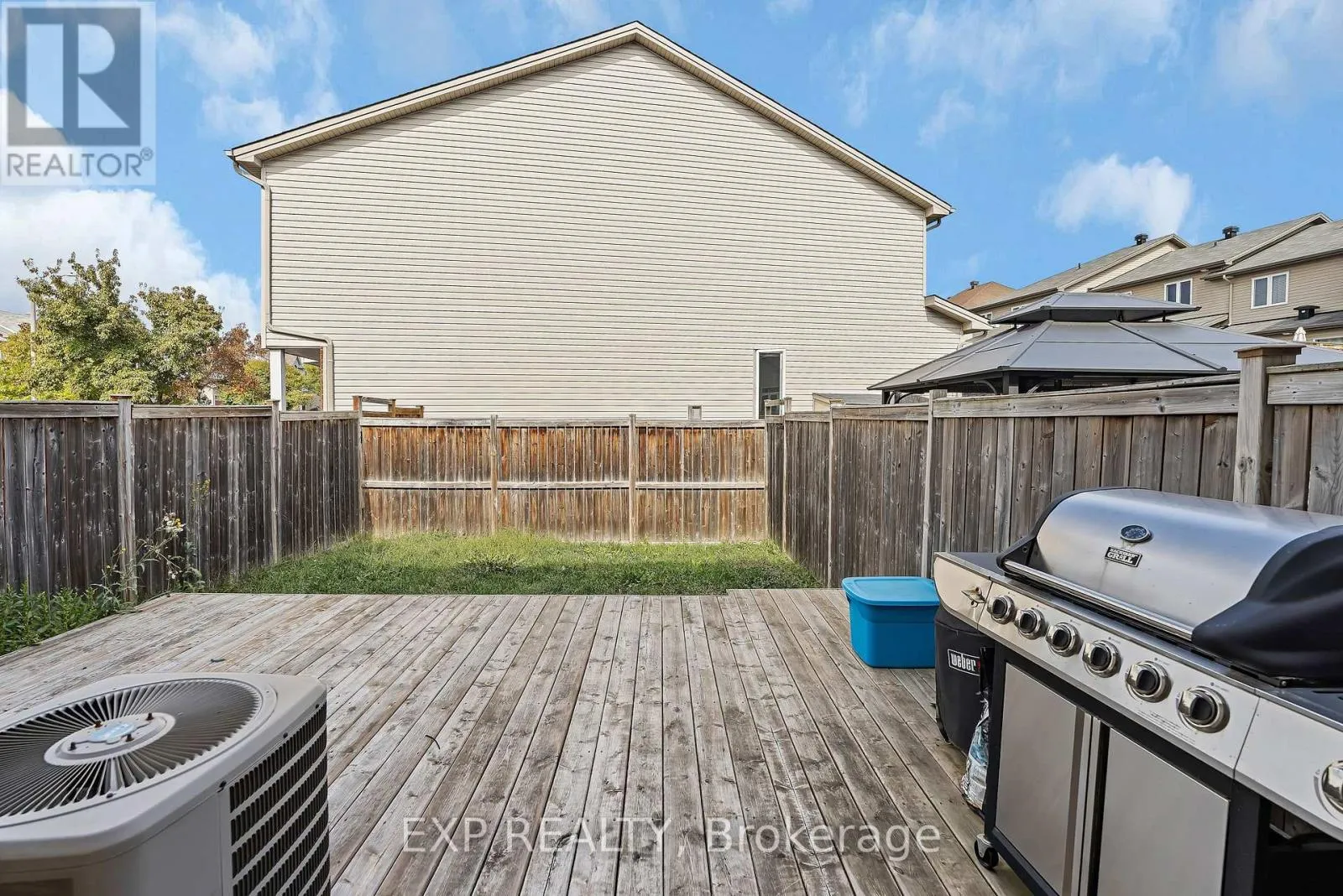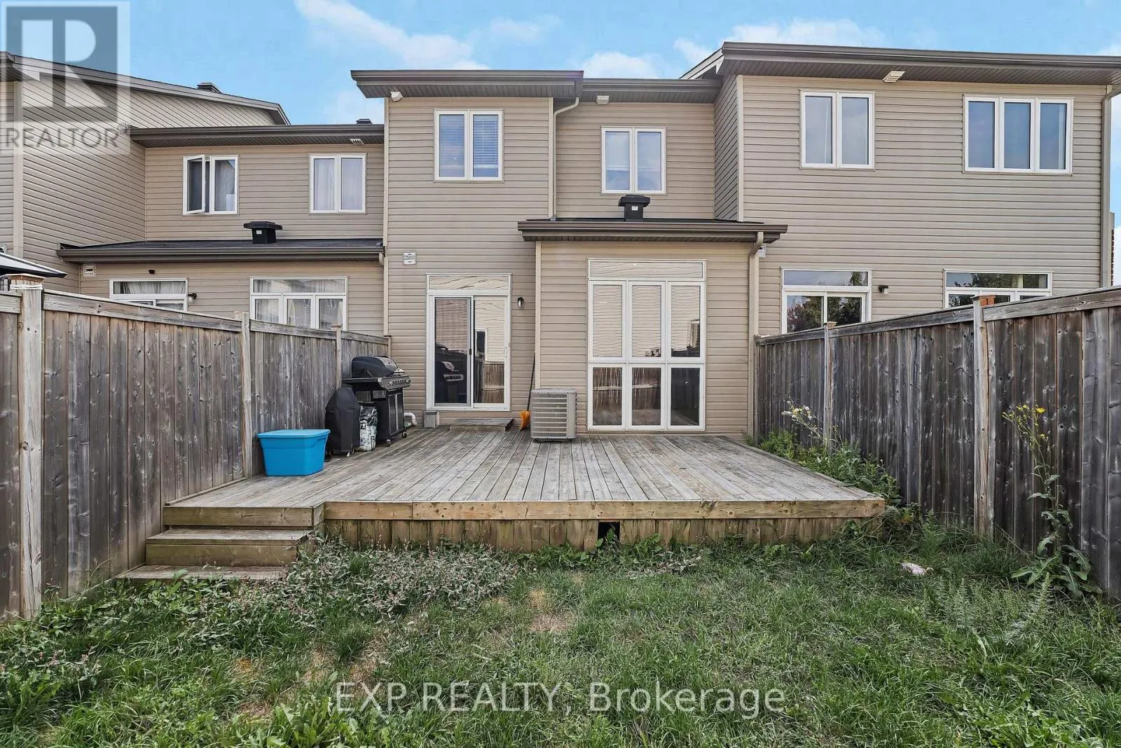 Cross Streets: Renaud and Knotridge. ** Directions: Navan Rd to Spring Valley turn right on Knotridge. Welcome to this beautifully upgraded 3-bedroom, 3-bath Claridge townhome, offering over 1,920 sq. ft. of stylish living space in the heart of the Mer Bleu Conservation Area. Backing onto scenic trails and just minutes from schools, shopping, and family-friendly amenities, this home combines nature and convenience seamlessly. Step into a bright, open-concept main floor featuring gleaming hardwood floors and a spacious living and dining area ideal for entertaining. The modern eat-in kitchen boasts upgraded cabinetry, granite countertops, stainless steel appliances, and a striking tile backsplash. Upstairs, you'll find a generous primary suite complete with a massive walk-in closet and a private 4-piece ensuite. Two additional bedrooms and a full bath offer space and flexibility for growing families or guests. Convenient second-floor laundry makes day-to-day living effortless. Unlike standard models, this home was customized by the builder to include a massive fully finished basement, perfect as a home gym, playroom, or media space. The backyard is fully fenced with a large deck, perfect for relaxing or hosting summer BBQs. Property will be vacant Dec 1st, 2025, Rental Application, Credit Check and employment status required before booking showings. (id:27476)