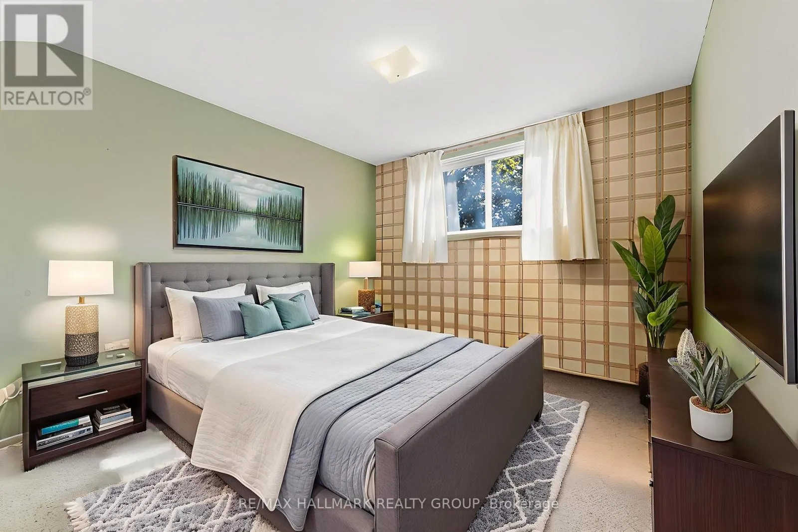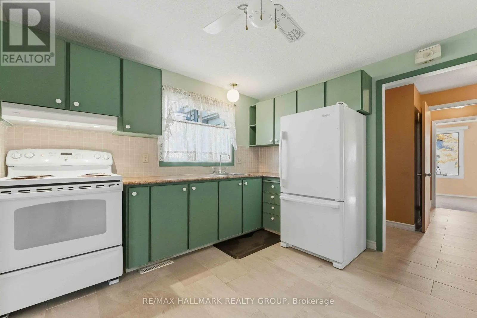 Cross Streets: Elmridge and Elmsmere. ** Directions: Turn onto Elmsmere Road from Montreal Road and Turn left onto Elmridge Drive. Bright and Welcoming 4-Bedroom Semi-Detached Bungalow in Beacon Hill South. First impressions are important. Excellent curb appeal with updated siding and a well-maintained exterior, set on a professionally landscaped lot with stone steps leading to a lovely treed garden. Inside, the sunfilled main level offers an entertainment-size living room with a cozy wood-burning fireplace, a separate dining room, and a generous eat-in kitchen. Two comfortable bedrooms and a full bathroom with shower complete this level. The open central hallway leads to the lower level, where you'll find two bright additional bedrooms overlooking the beautiful backyard gardens. This level also includes a 4-piece bathroom, great closet space, and a large unfinished area with potential for future family room, workshop, gym, or storage. The private, fenced yard is surrounded by mature greenery - perfect for quiet evenings, summer dinners outside, or kids at play. Updates include triple-pane windows, insulated siding, and renovated bathrooms (plus more). Fantastic location: steps to parks, schools, shopping, transit, and just minutes to downtown. Schedule B and 24-hour irrevocable on all offers as per Form 244. (id:27476)