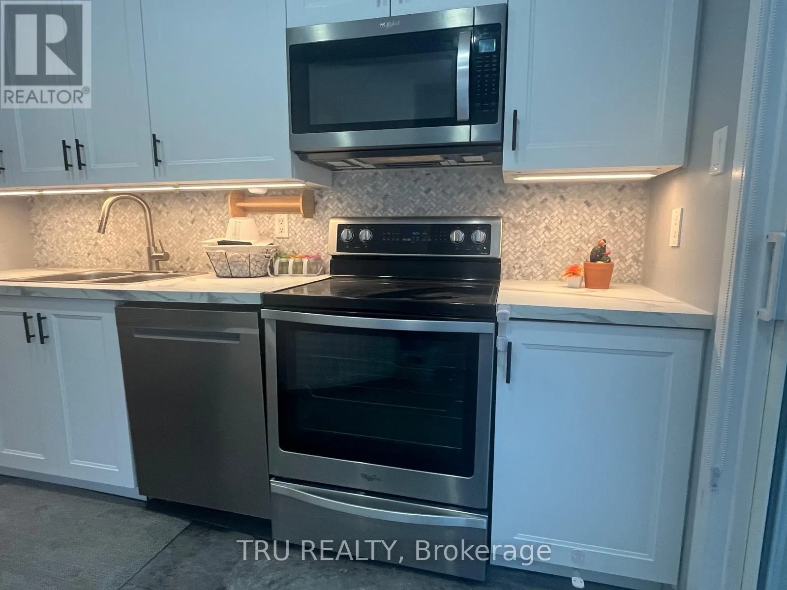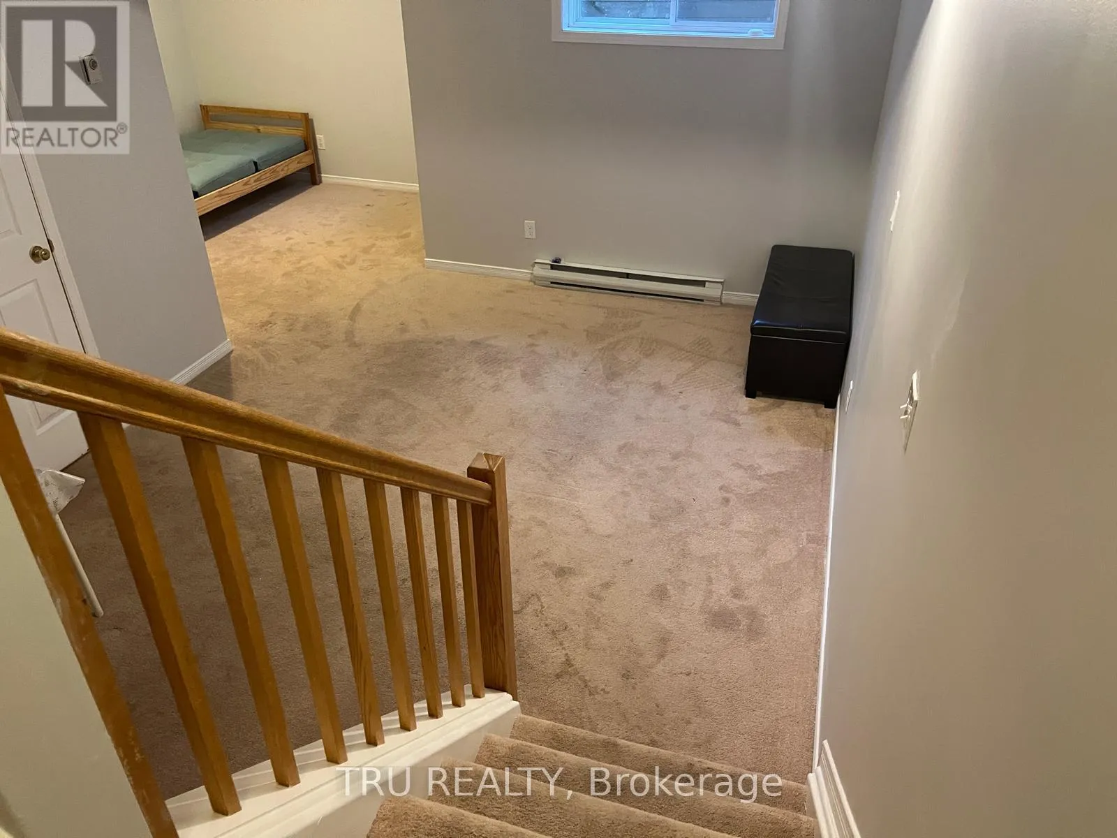 Woodroffe and Stoneway Welcome home to this beautifully renovated 3-bedroom, 2.5-bathroom freehold townhome with a finished basement, offering modern style and comfort with no condo or association fees. Freshly painted throughout. Ideally located within walking distance to Adrienne Clarkson Elementary School, Stonecrest Park, Farm Boy, and other amenities. The inviting front porch features a new front door installed in 2022. The main level includes luxury vinyl plank flooring, a bright and functional kitchen with ample counter space, pantry cabinets, and stainless steel appliances, as well as a convenient powder room. The second floor offers three spacious bedrooms, including a primary bedroom with an updated ensuite bathroom. Both full bathrooms have been tastefully renovated. The finished basement features a comfortable family room and a den with a window, ideal for a home office or hobby space. The basement also offers large windows for added natural light. The backyard includes a deck perfect for outdoor enjoyment. Additional features include a 120 ft deep lot, inside entry to the garage, and professionally shampooed and cleaned carpets. Close to parks, schools, grocery stores, restaurants, and transit. All modern stainless steel appliances. Move-in ready and easy to show. (id:27476)