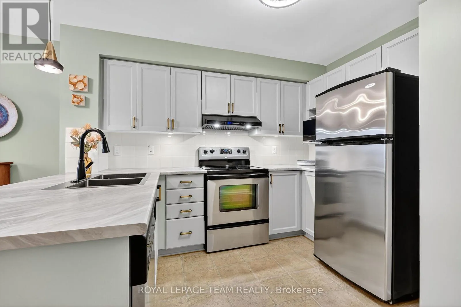 Cross Streets: Brian Coburn/Lakeridge. ** Directions: 10th Line south then turn left to either Brian Coburn or Southfield and then right to Lakeridge. Open House Sunday November 23, 2025 2pm-4pm. Welcome to this meticulously maintained 2 Bedroom & 2.5 Bath lower level end unit condo! Pride of ownership is evident from the moment you walk through the front door. Large windows & patio door provide abundant natural light throughout the Main Level. The updated Kitchen boasts tons of cabinet & counter space, SS appliances and a breakfast bar & an eating area that can also be used as a sitting area; great for conversation while the chef is working! The open concept Living Rm & Dining Rm features engineered hardwood flooring and neutral tones. Finished Lower Level has 2 spacious Bedrooms both with 4pc Ensuites and there is convenient in-suite Laundry and storage. There is a deck off of the Living Rm and BBQs are allowed on the lower terrace. Parking is included (#56). Close to shopping, transit and so much more! Move-in ready! Recent Updates - new paint throughout, engineered hardwood floors, kitchen updated, new furnace 2025, new smart thermostats 2025, owned hot water tank 2022, washer/dryer tower combo 2023, 2 new toilets and fire alarms, replaced all light switches and outlets, replace/upgraded all ceiling fixtures, mirrors and door hardware (id:27476)