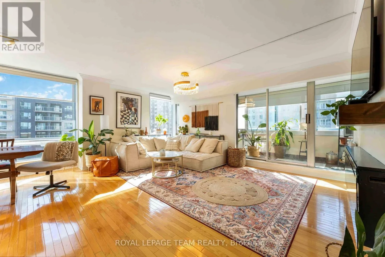 George St & Dalhousie St Welcome to The St. George, located in the heart of the ByWard Market. This bright and spacious 2-bedroom, 2-bath condo offers over 1,400 sq ft of thoughtfully designed living space. The open-concept living/dining area is perfect for entertaining, while the functional kitchen makes everyday cooking a breeze. The enclosed balcony extends your living space year-round, offering sweeping views of the downtown skyline. The primary suite features generous closet space and a private ensuite, while the second bedroom provides flexibility for guests, a home office, or a den. In-unit laundry, an exclusive-use locker, and one underground parking space add convenience. At The St. George, residents enjoy top-tier amenities including a concierge, indoor pool, sauna, gym, rooftop terrace, and guest suites, perfect for hosting family and friends. Step outside and immerse yourself in the best of Ottawa living: vibrant restaurants, boutique shopping, Parliament Hill, the Rideau Centre, and cultural venues all within walking distance. (id:27476)