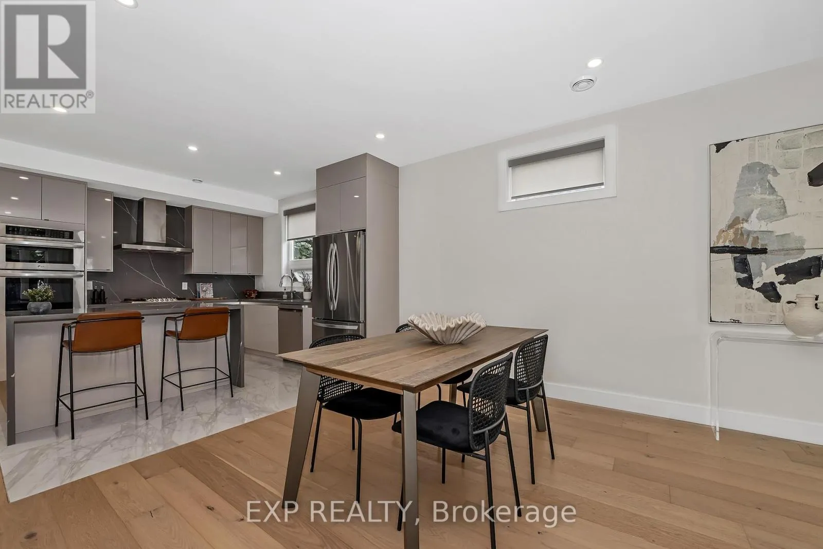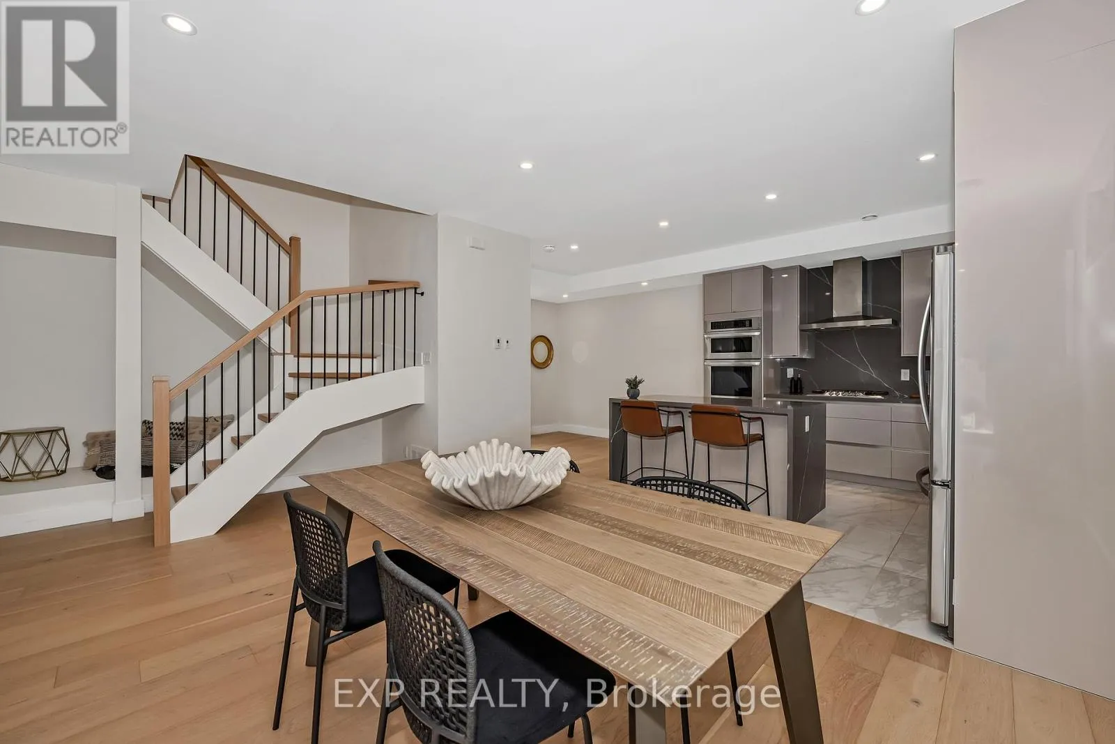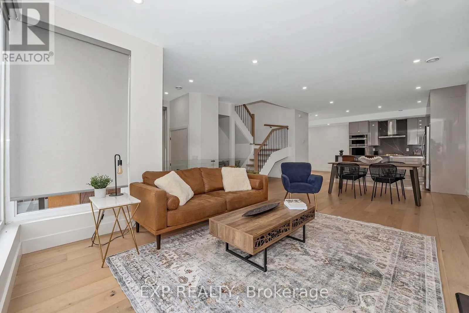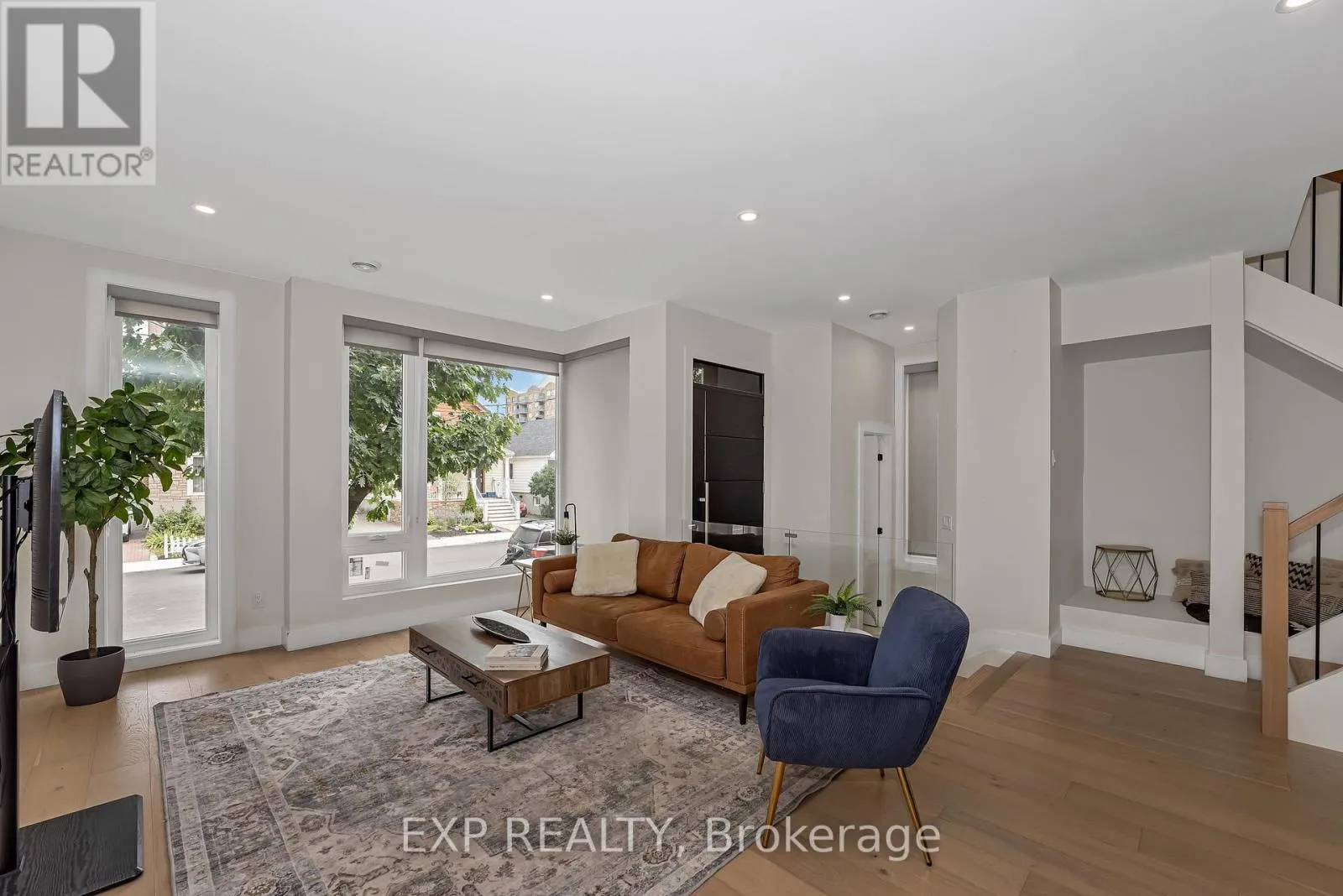 Cross Streets: From Scott Street turn south on Huron Ave N. \r\nFrom Wellington Street turn north on Huron Ave N. ** Directions: From Scott Street turn south on Huron Ave N. From Wellington Street turn north on Huron Ave N. Stunning 3+Den, 3-Bath Semi-Detached in Wellington Village! With just over 1800 sq/ft above grade, this beautifully finished Semi offers the perfect blend of elegance, functionality, and income potential. The spacious main features a bright, open-concept layout with gleaming hardwood floors, a waterfall island, a statement backsplash, and abundant cabinetry. Enjoy a spacious living room and dining room off the kitchen, ideal for both relaxing and entertaining. Upstairs, the primary suite boasts a walk-in closet and a luxurious ensuite with a soaker tub, your retreat after a long day. Conveniently located laundry, two additional bedrooms, a den/office area, and a full bath complete the second floor. Parking is shared and located at the rear, with access via Scott Street. Located in the heart of Wellington Village, this home is just steps to shops, artisanal bakeries, galleries, top restaurants, and within walking distance to Tunney's Pasture and the LRT. A rare opportunity to live in style while generating revenue in one of Ottawa's most sought-after neighbourhoods! (id:27476)