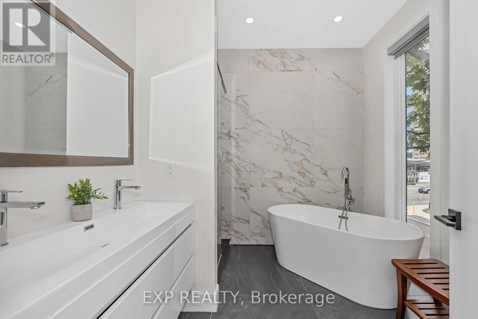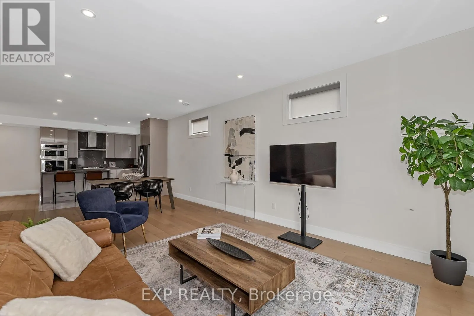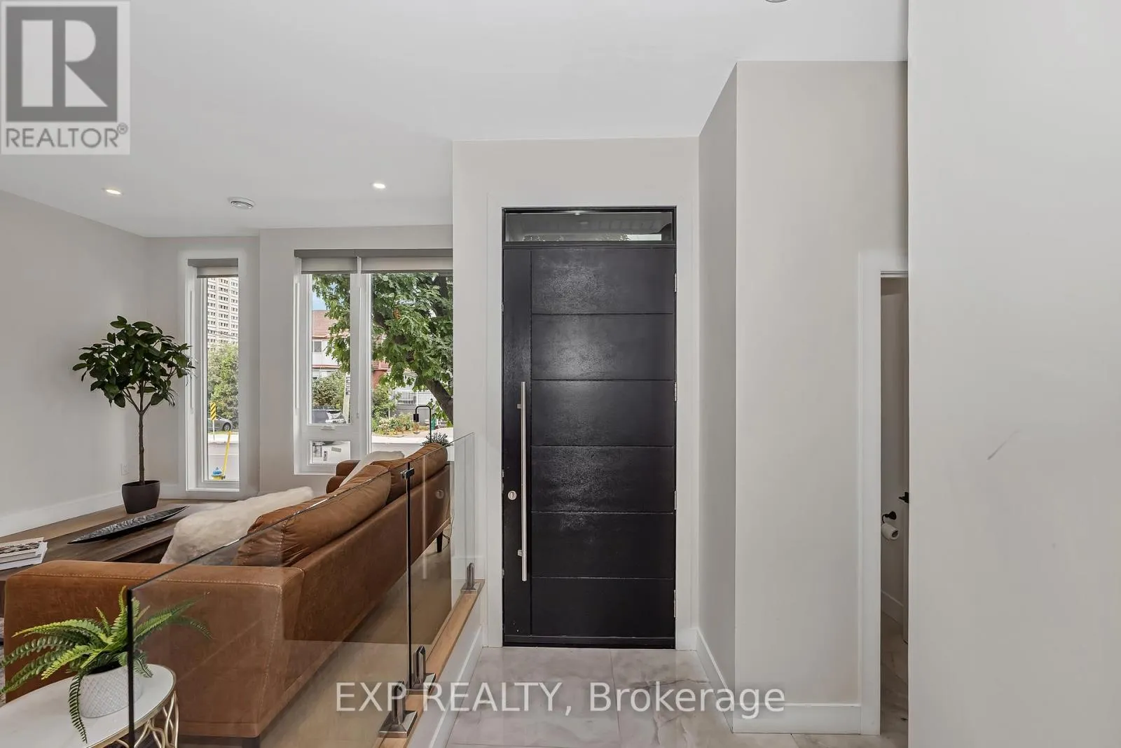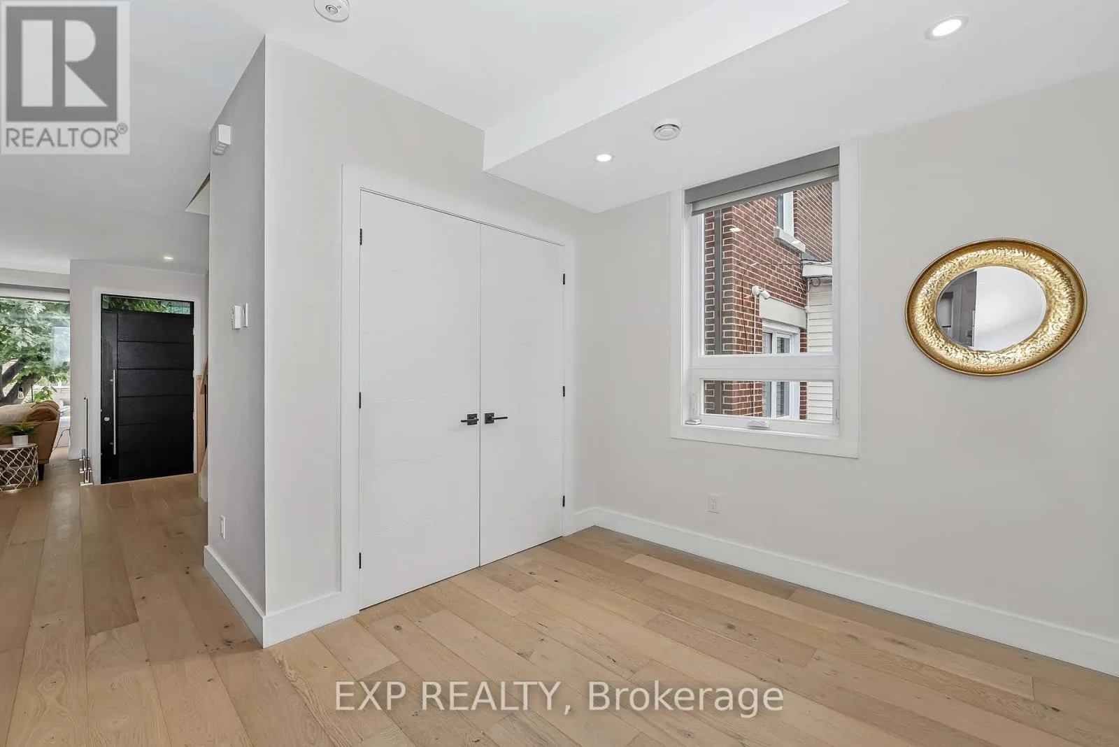 Cross Streets: From Scott Street turn south on Huron Ave N. \r\nFrom Wellington Street turn north on Huron Ave N. ** Directions: From Scott Street turn south on Huron Ave N. From Wellington Street turn north on Huron Ave N. Stunning 3+Den, 3-Bath Semi-Detached in Wellington Village! With just over 1800 sq/ft above grade, this beautifully finished Semi offers the perfect blend of elegance, functionality, and income potential. The spacious main features a bright, open-concept layout with gleaming hardwood floors, a waterfall island, a statement backsplash, and abundant cabinetry. Enjoy a spacious living room and dining room off the kitchen, ideal for both relaxing and entertaining. Upstairs, the primary suite boasts a walk-in closet and a luxurious ensuite with a soaker tub, your retreat after a long day. Conveniently located laundry, two additional bedrooms, a den/office area, and a full bath complete the second floor. Parking is shared and located at the rear, with access via Scott Street. Located in the heart of Wellington Village, this home is just steps to shops, artisanal bakeries, galleries, top restaurants, and within walking distance to Tunney's Pasture and the LRT. A rare opportunity to live in style while generating revenue in one of Ottawa's most sought-after neighbourhoods! (id:27476)