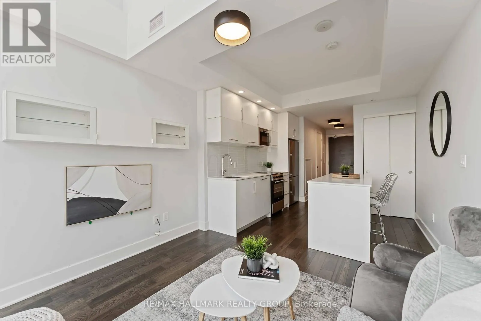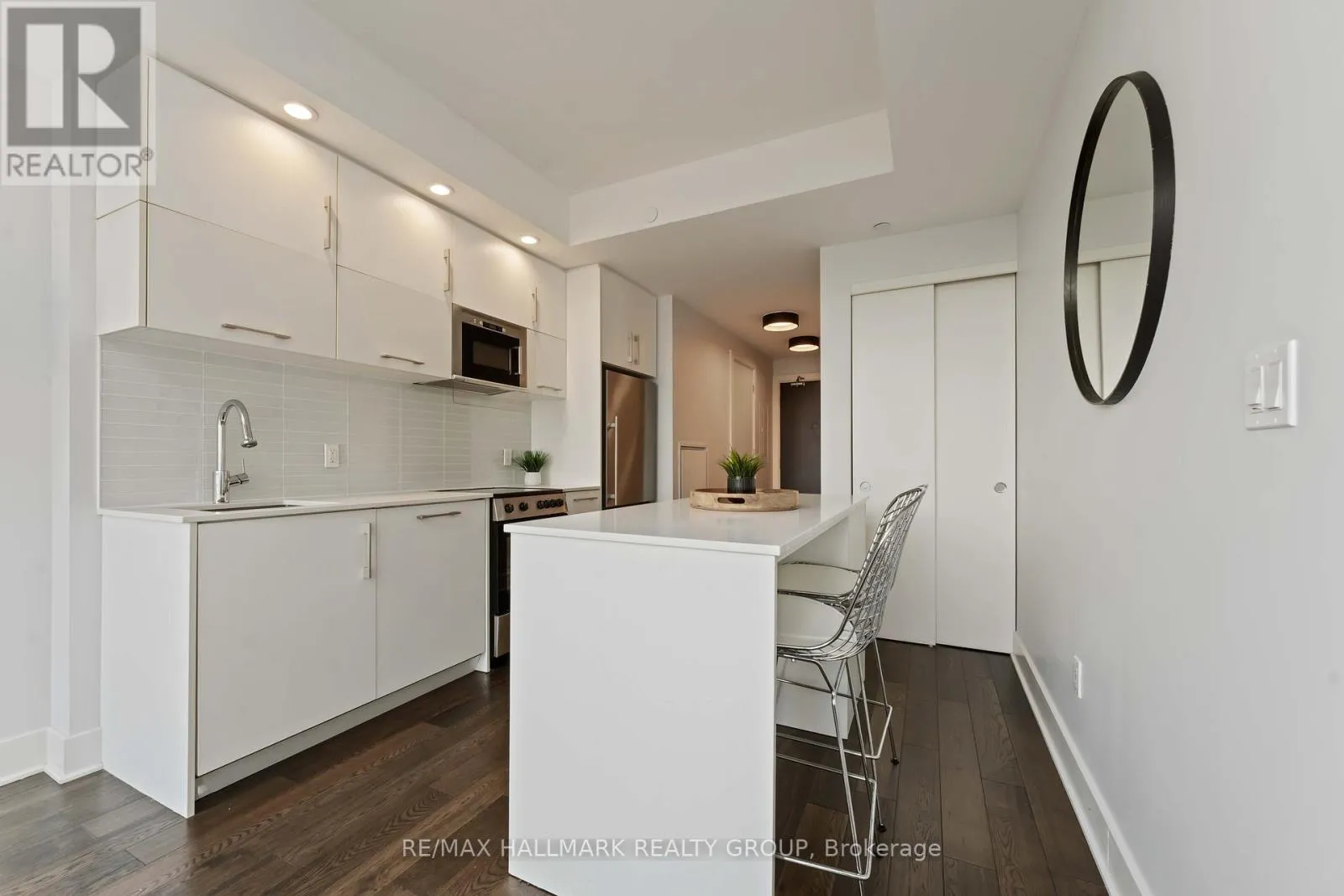 Cross Streets: Bay St and Gloucester St. ** Directions: From the 417 take the Bronson exit north, right on Cooper, left on Bay. Stylish 2-Storey Loft in The Bowery 1 Bed + 1.5 Bathrooms | Parking & Locker Included! Welcome to The L1, a rare and stunning two-storey loft-style condo in The Bowery one of Centretown Ottawas most sought-after buildings. Perched on the 12th floor, this 1-bedroom, 1.5-bath unit boasts dramatic 18-foot ceilings, massive windows, and dark hardwood floors throughout. This home features a convenient main-floor powder room, perfect for guests. The sleek kitchen offers two-tone cabinetry, white quartz countertops, stainless steel appliances, and a moveable island that doubles as a prep station and dining space for four. Upstairs, you'll find the primary suite with ensuite bath and in-unit laundry.Enjoy your morning coffee or evening wine on your private balcony elevated above the neighbouring building for enhanced views and privacy. INCLUDES PARKING AND A STORAGE UNIT, with secure underground bike storage available to all residents.Top-tier amenities on the buildings rooftop level include a fully-equipped gym, heated saltwater pool, sauna, party room (reservable), conference room, BBQs, and three patios with incredible views of downtown Ottawa.Just steps from the Lyon LRT Station, this unbeatable location puts you in the heart of the city with effortless access to transit, shops, restaurants, and more. (id:27476)